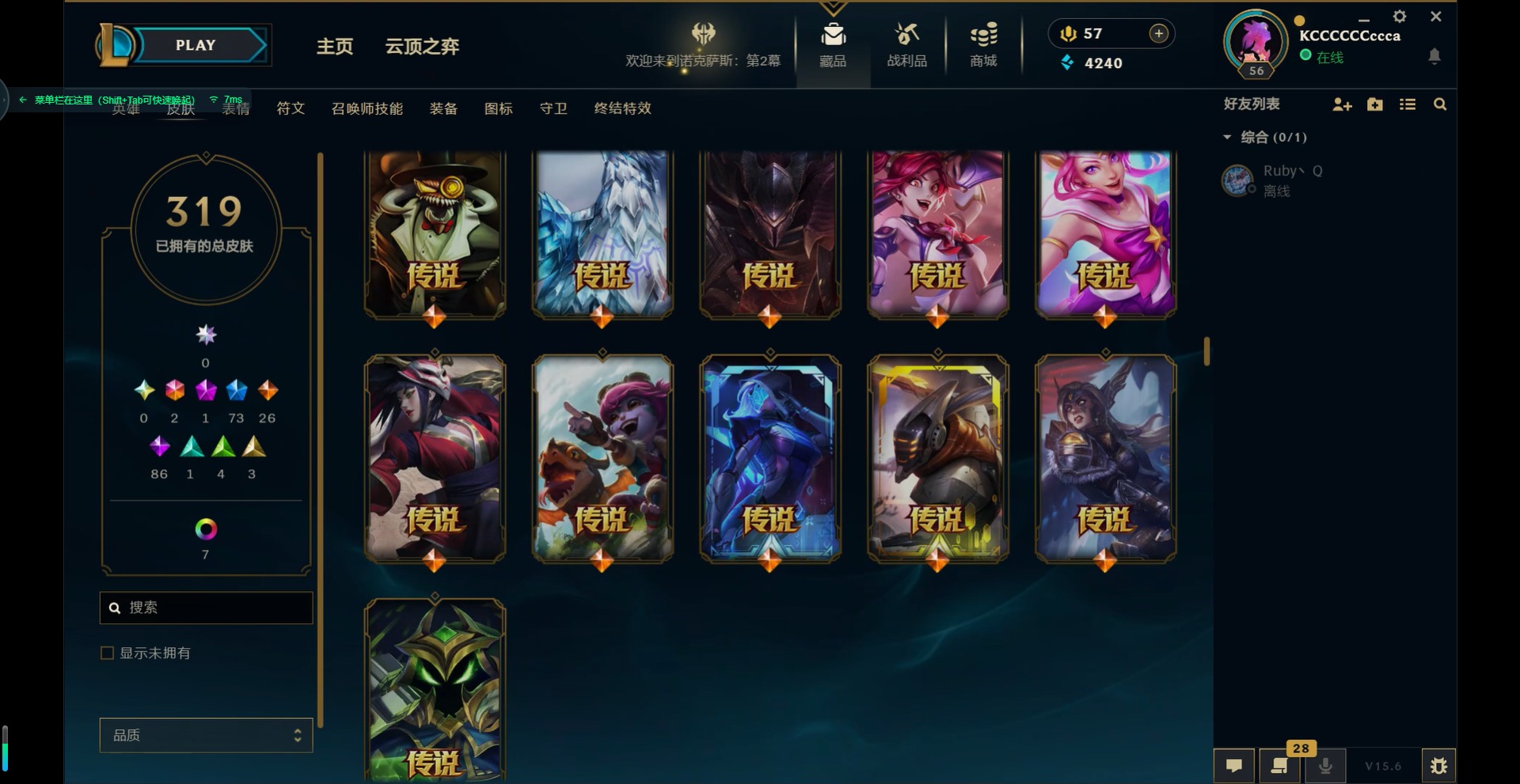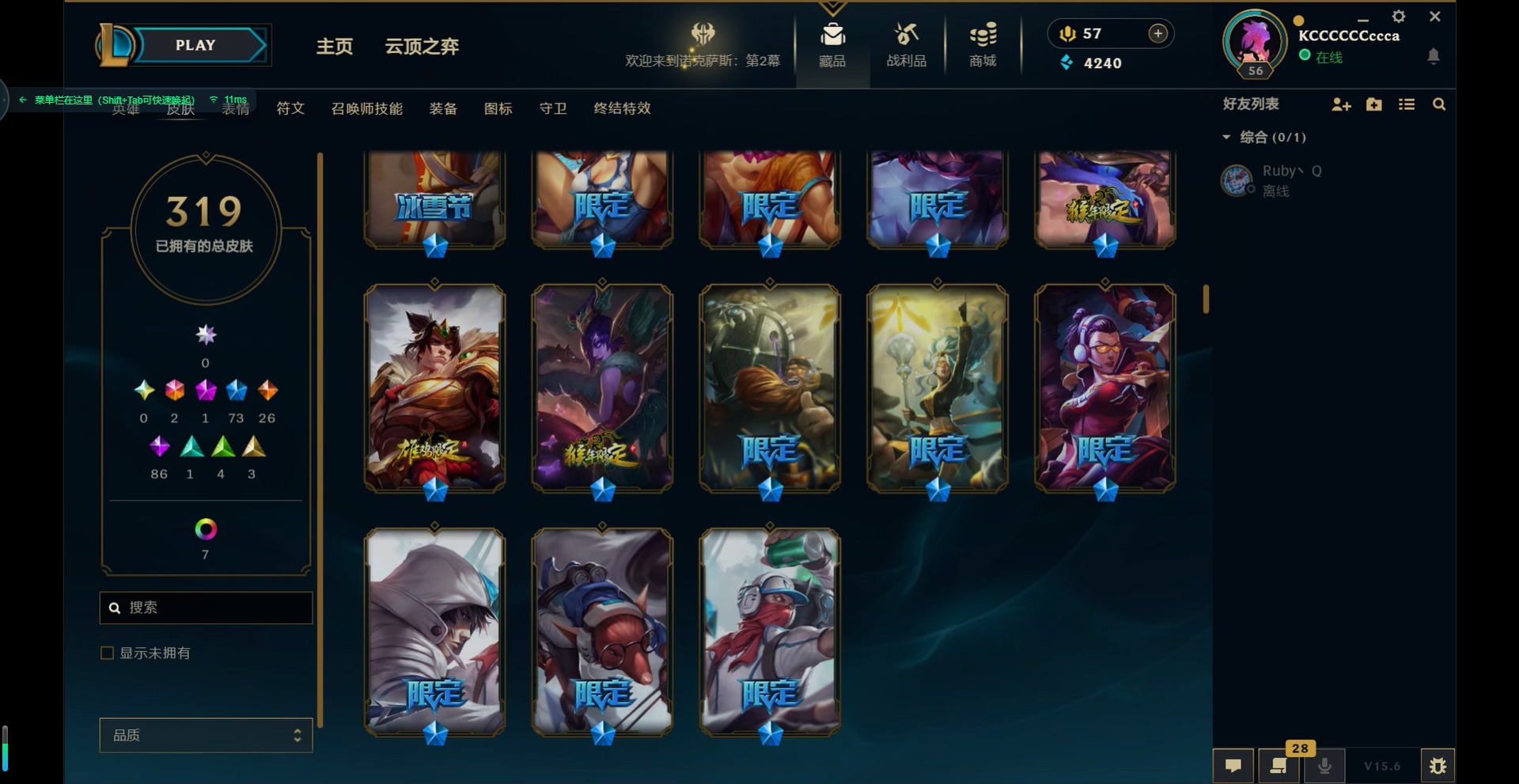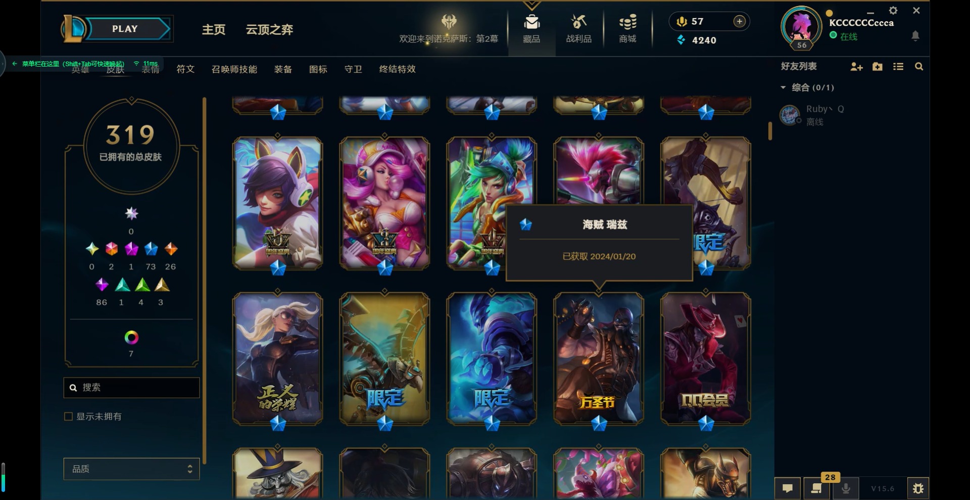 [7484553]2终极 1神话 1臻彩 73限定 26传说 86史诗 319皮肤 14炫彩 155英雄 皮肤:糖果之王 艾翁上古战魂 雷克塞虚空使者 俄洛伊冠军典狱长 锤石司马懿 仲达幽冥领主 阿兹尔锦鲤 娜美虎痴之拳 蔚炼狱魔女 蔚铁拳执事 蔚女警官 蔚任性学霸 艾克源计划:阴 劫源计划:雷 卢锡安海牛大大 塔姆五星大厨 塔姆星之守护者 金克丝丧尸杀手 金克丝神龙烈焰 金克丝腥红之月 烬西部牛仔 烬猛虎 布隆屠龙勇士 布隆苍穹之光 维克兹腥红之月 亚索源计划:风 亚索最后一只恐龙 纳尔鬼影森森 婕拉野火之藤 婕拉亚特兰蒂斯 辛德拉血羽凤凰 奎因暗黑女武神 黛安娜血石妖后 丽桑卓铁血帝皇 德莱厄斯死亡绽放 卡兹克电玩战魂 赫卡里姆血石骑士 赫卡里姆德莱德莱德莱文金牌主播 德莱文灵魂收割者 德莱文星之守护者 璐璐邪恶女巫 璐璐糖果女巫 璐璐少校 吉格斯科学狂人 吉格斯源计划:火 菲奥娜女校长 菲奥娜魄罗骑士 瑟庄妮造物主 维克托光明骑士 诺提勒斯夜魔水晶 韦鲁斯坚韧不屈 沃利贝尔怒熊 沃利贝尔警长 沃利贝尔北地风暴 沃利贝尔苔原猎手 菲兹失落大陆 菲兹胜利呛神 格雷福斯冰雪节 格雷福斯无情重炮 格雷福斯电玩女神 阿狸偶像歌手 阿狸冰霜亚龙 希瓦娜钢之逆鳞 希瓦娜枯萎之壤 泽拉斯战地法师 泽拉斯春晖神女 拉克丝大元素使 拉克丝星之守护者 拉克丝odst地狱伞兵 拉克丝暗杀星 慎腥红之月 鬼武者 慎主治医师 慎炎爆 慎极寒 慎深海怪鱼 克格莫圣诞驯鹿 克格莫帝王斑蝶 克格莫索诺拉沙虫 克格莫毛毛虫 克格莫电玩勇者 锐雯ssw 泰隆