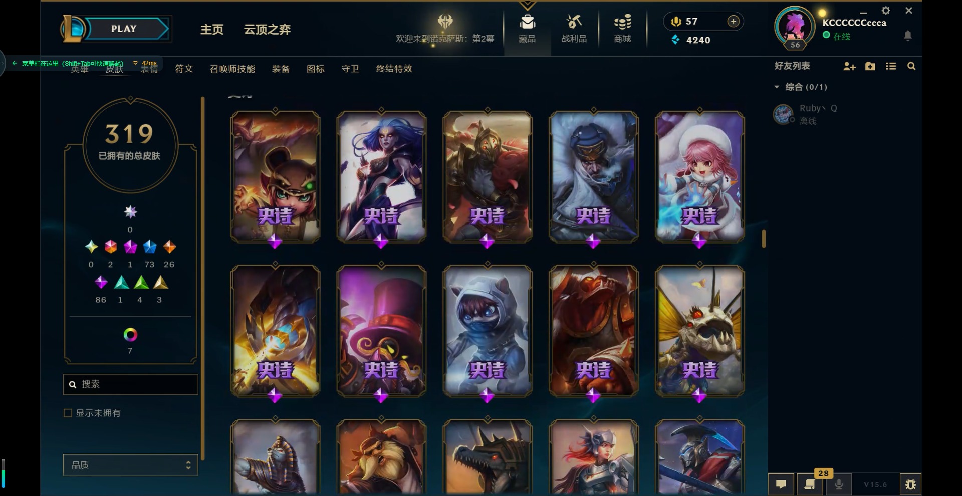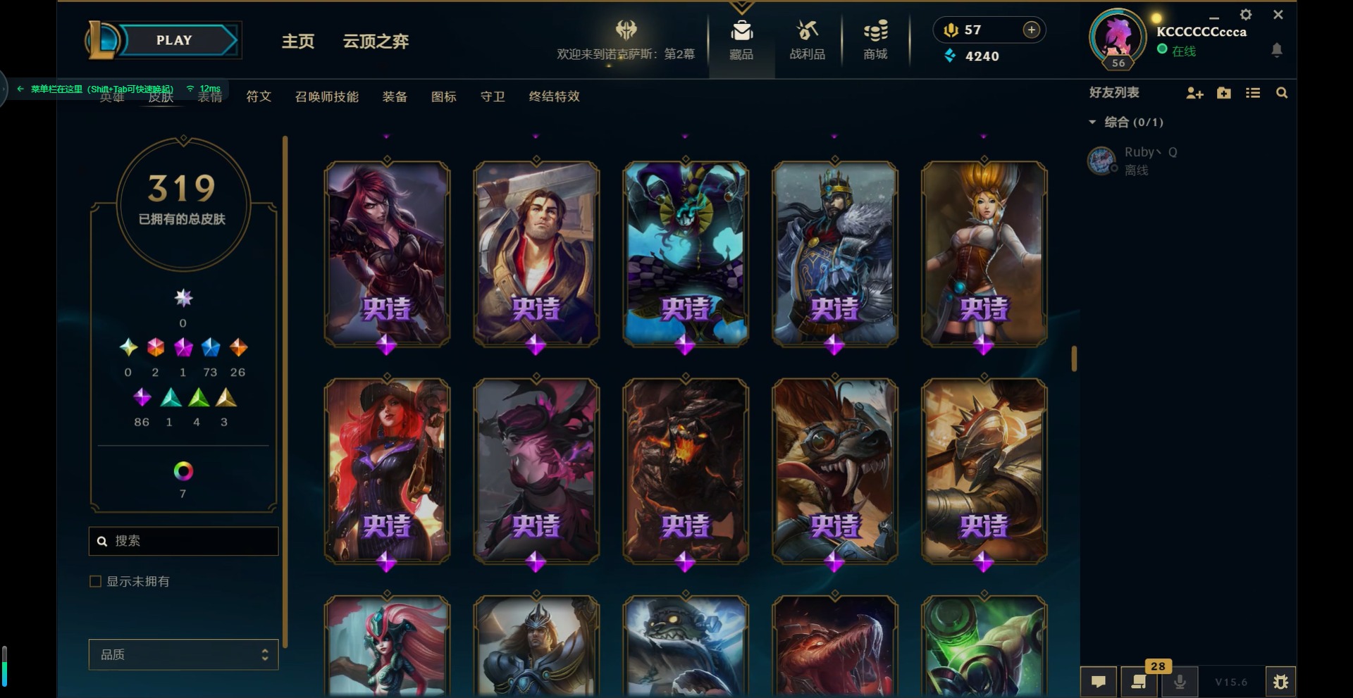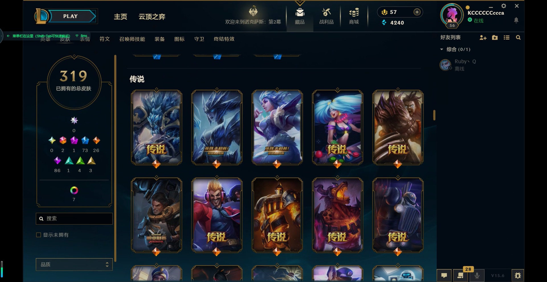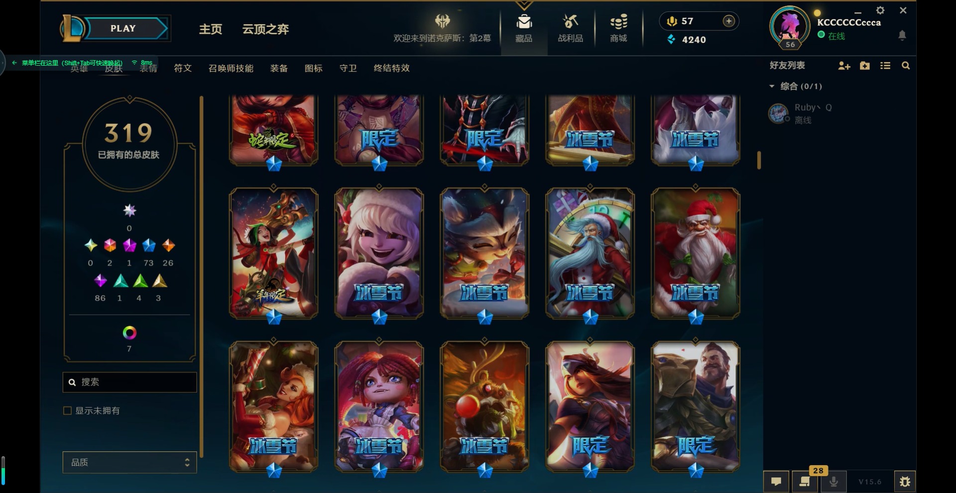 [7484553]2终极 1神话 1臻彩 73限定 26传说 86史诗 319皮肤 14炫彩 155英雄 皮肤:糖果之王 艾翁上古战魂 雷克塞虚空使者 俄洛伊冠军典狱长 锤石司马懿 仲达幽冥领主 阿兹尔锦鲤 娜美虎痴之拳 蔚炼狱魔女 蔚铁拳执事 蔚女警官 蔚任性学霸 艾克源计划:阴 劫源计划:雷 卢锡安海牛大大 塔姆五星大厨 塔姆星之守护者 金克丝丧尸杀手 金克丝神龙烈焰 金克丝腥红之月 烬西部牛仔 烬猛虎 布隆屠龙勇士 布隆苍穹之光 维克兹腥红之月 亚索源计划:风 亚索最后一只恐龙 纳尔鬼影森森 婕拉野火之藤 婕拉亚特兰蒂斯 辛德拉血羽凤凰 奎因暗黑女武神 黛安娜血石妖后 丽桑卓铁血帝皇 德莱厄斯死亡绽放 卡兹克电玩战魂 赫卡里姆血石骑士 赫卡里姆德莱德莱德莱文金牌主播 德莱文灵魂收割者 德莱文星之守护者 璐璐邪恶女巫 璐璐糖果女巫 璐璐少校 吉格斯科学狂人 吉格斯源计划:火 菲奥娜女校长 菲奥娜魄罗骑士 瑟庄妮造物主 维克托光明骑士 诺提勒斯夜魔水晶 韦鲁斯坚韧不屈 沃利贝尔怒熊 沃利贝尔警长 沃利贝尔北地风暴 沃利贝尔苔原猎手 菲兹失落大陆 菲兹胜利呛神 格雷福斯冰雪节 格雷福斯无情重炮 格雷福斯电玩女神 阿狸偶像歌手 阿狸冰霜亚龙 希瓦娜钢之逆鳞 希瓦娜枯萎之壤 泽拉斯战地法师 泽拉斯春晖神女 拉克丝大元素使 拉克丝星之守护者 拉克丝odst地狱伞兵 拉克丝暗杀星 慎腥红之月 鬼武者 慎主治医师 慎炎爆 慎极寒 慎深海怪鱼 克格莫圣诞驯鹿 克格莫帝王斑蝶 克格莫索诺拉沙虫 克格莫毛毛虫 克格莫电玩勇者 锐雯ssw 泰隆