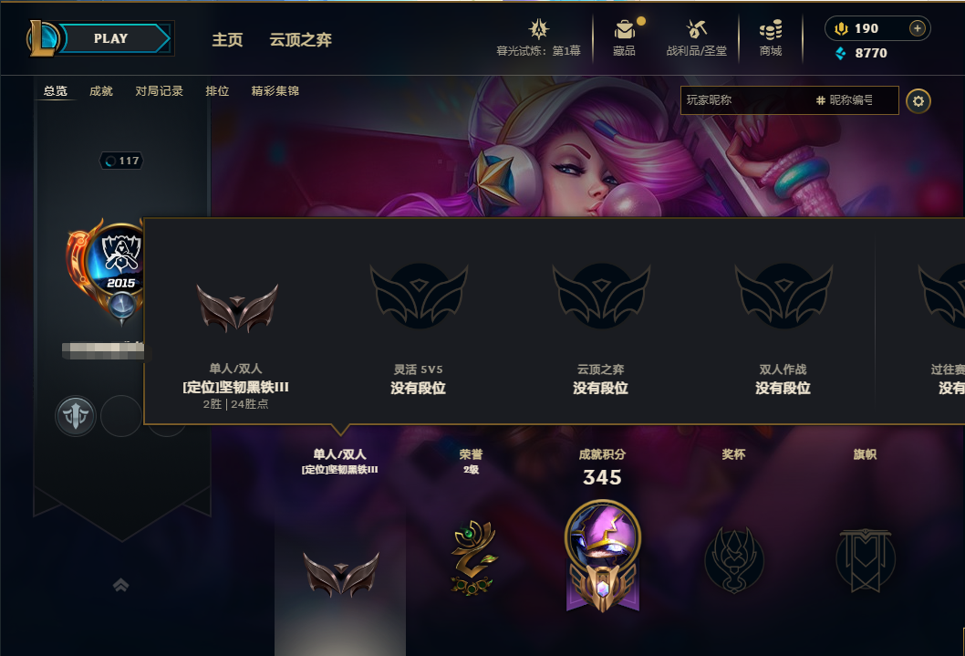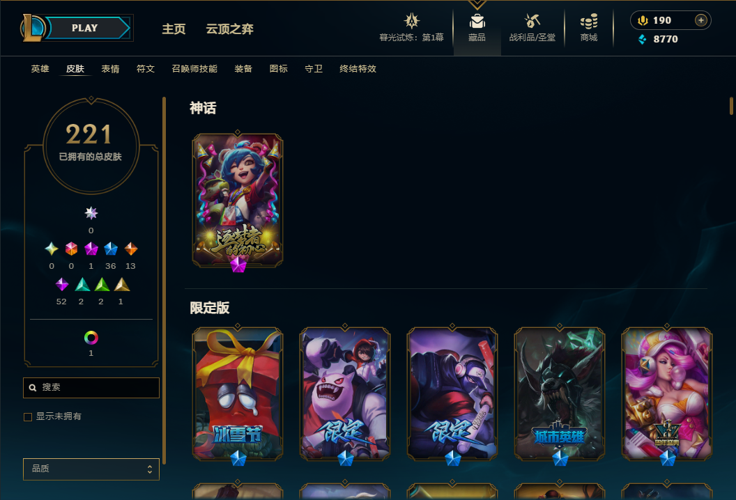 网通无畏先锋-段位:黑铁-112英雄-221皮肤-1炫彩-1神话-36限定-13传说【限定】生化领主蛮王 机械迷城加里奥 都铎王朝老鼠 诺斯费拉图 弗拉基米尔 钢铁之翼艾尼维亚 蒙多蒙多蒙多 战场boss吉格斯 女猎手希维尔 外星装甲库奇 龙年琴女 蛇年库奇 羊年金克丝 猴年美猴王孙悟空 10周年安妮 3周年女呛 “主人不要我了”阿木木 胡桃夹子小丑 平安夜女神琴女 圣诞开心鬼提莫 圣诞精灵崔丝塔