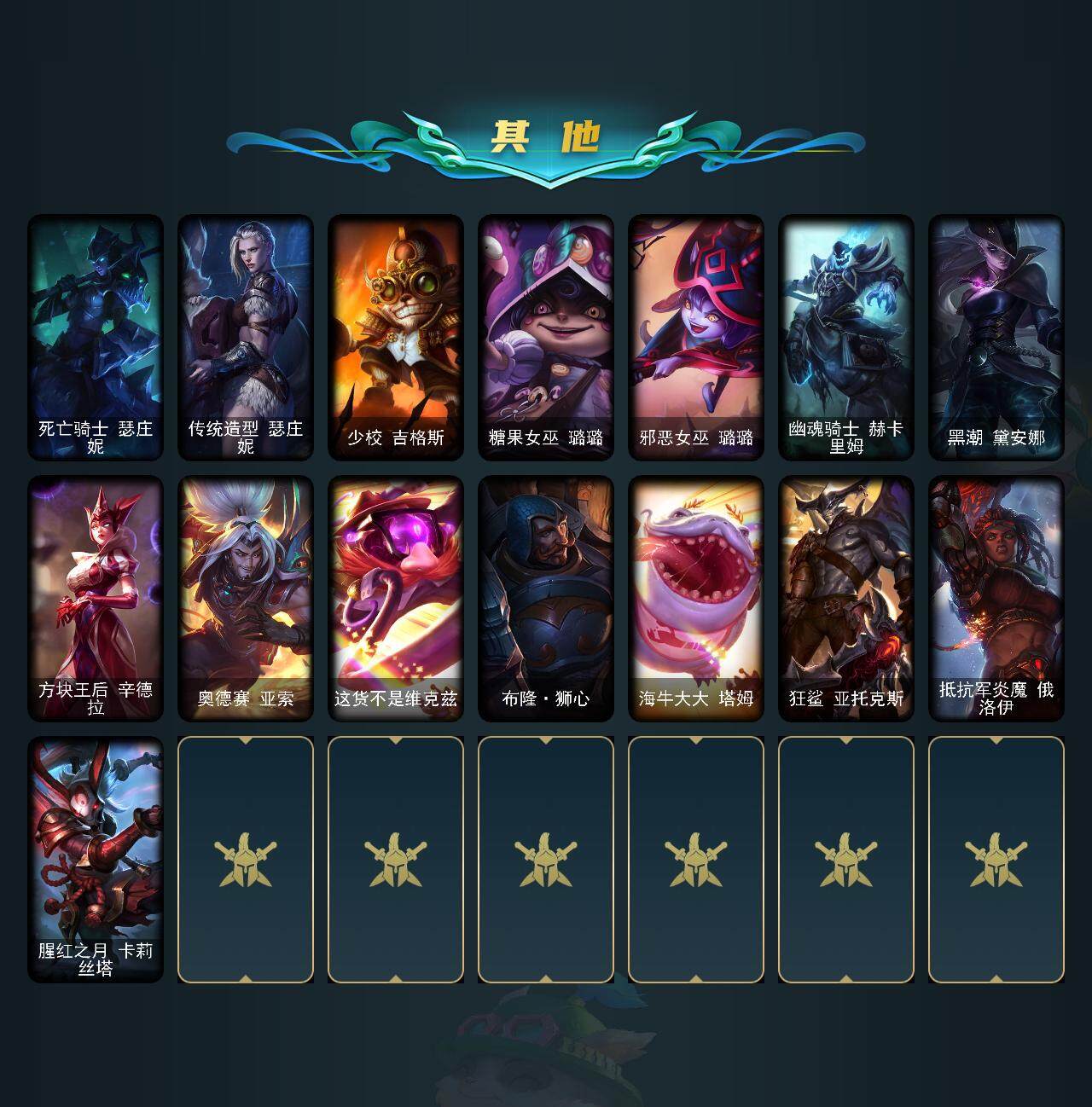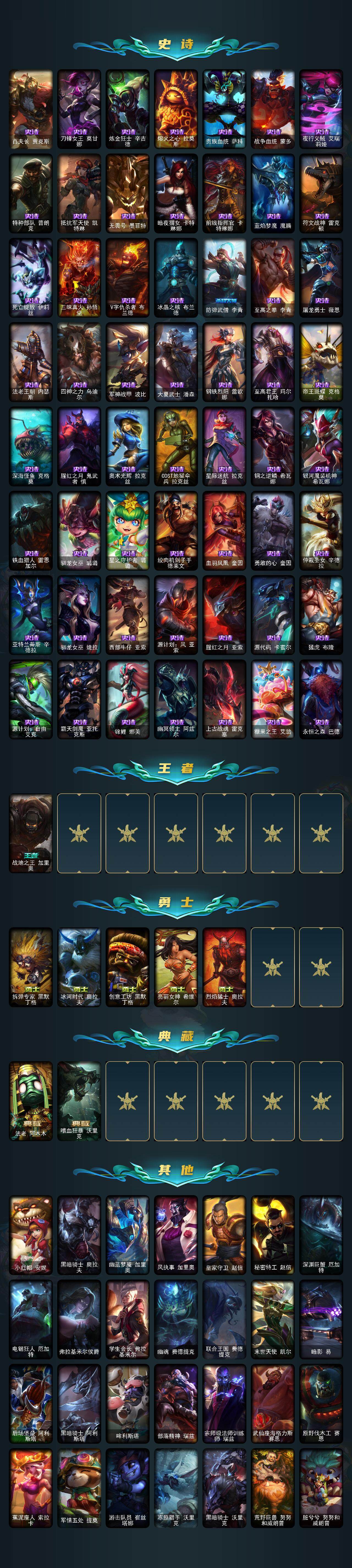 【lolyh296】151英雄/293皮肤/1终极/2神话/46限定/8炫彩/18传说/70史诗/黑铁/古琴余韵娑娜/张辽文远/虎痴之拳蔚/幸福女神乐芙兰/圣诞开心鬼提莫/圣诞精灵崔丝塔娜/圣诞糖果棒厄运小姐/圣诞狂欢基兰/胡桃夹子萨科/平安夜女神娑娜/圣诞驯鹿克格莫/魄罗骑士瑟庄妮/冰雪节辛吉德/冰雪女神辛德拉/dj娑娜/十周年纪念安妮/源代码乐芙兰/地底世界崔斯特/冠军典狱长锤石/冠军之血希瓦娜/fnatic古拉加斯/fnatic迦娜/fnatic嘉文四世/fnatic卡尔萨斯/暗杀星努努和威朗普/ssw辛吉德/ssw图奇/ssw泰隆/ssw雷恩加尔/ssw锤石/sktt1艾克/sktt1烬/sktt1娜美/sktt1扎克/胜利女神奥莉安娜/南瓜头费德提克/鬼影森森茂凯/泳池派对蕾欧娜/泳池派对佐伊/密林猎手提莫/女猎手希维尔/野兽猎人泰达米尔/波比的巧克力工坊/电玩战魂赫卡里姆/都铎王朝图奇/御星魔矢艾希/钢铁之翼艾尼维亚/防暴天使凯尔/警用试作体k9内瑟斯/铁哥们儿奥拉夫/魔幻卡牌崔斯特/战地机甲厄加特/提莫约德尔人的一大步/烈焰雄心崔丝塔娜/战地巨兽科加斯/双重冰晶艾尼维亚/律政大亨蒙多/电玩女神娑娜/陆地王者4wd布里茨/冰川巨兽墨菲特/第三类接触黑默丁格/死亡骑士盖伦/冰霜亚龙希瓦娜/符文战熊沃利贝尔/泳池派对吉格斯/灌篮高手德莱厄斯/黑夜使者亚索/科学怪熊的新娘安妮/绞肉机角斗士赵信/翼骑统领赵信/铁钩船长费德提克/重生之沙费德提克/圣光审判凯尔/战争机器赛恩/钢铁之心希维尔/圣洁化身索拉卡/火箭达人崔丝塔娜/荒野豺狼沃里克/法国皇室厄运小姐/黑帮狂花厄运小姐/紫晶射手艾希/百夫长贾克斯/刀锋女王莫甘娜/炼金狂士辛吉德/熔火之心拉莫斯/贵族血统萨科/战争血统蒙多/夜行义贼艾瑞莉娅/特种部队普朗克/抵抗军天使凯特琳/无畏号墨菲特/暗夜猫女卡特琳娜/前线指挥官卡特琳娜/蓝焰梦魔魔腾/符文战神雷克顿/死亡绽放伊莉丝/三昧真火孙悟空/v字仇杀者布兰德/冰晶之核布兰德/防弹武僧李青/至高之拳李青/屠龙勇士薇恩/法老王朝内瑟斯/四神之力乌迪尔/军神战甲波比/大夏武士潘森/钢铁烈阳蕾欧娜/至高君王玛尔扎哈/帝王斑蝶克格莫/深海怪鱼克格莫/腥红之月鬼武者慎/奥术光辉拉克丝/odst地狱伞兵拉克丝/星际迷航拉克丝/钢之逆鳞希瓦娜/银河魔装机神希瓦娜/铁血猎人雷恩加尔/驯龙女巫璐璐/星之守护者璐璐/绞肉机刽子手德莱文/血羽凤凰奎因/勇敢的心奎因/仲裁圣女辛德拉/亚特兰蒂斯辛德拉/驯龙女巫婕拉/西部牛仔亚索/源计划风亚索/腥红之月亚索/源代码卡蜜尔/猛虎布隆/源计划自由艾克/霸天剑魔亚托克斯/锦鲤娜美/幽冥领主阿兹尔/上古战魂雷克塞/糖果之王艾翁/永恒之森巴德/战地之王加里奥/拆弹专家黑默丁格/冰河时代奥拉夫/创意工坊黑默丁格/亮丽女神希维尔/烈焰猛士奥拉夫/法老阿木木/嗜血狂暴沃里克/小红帽安妮/黑暗骑士奥拉夫/幽蓝梦魇加里奥/风执事加里奥/皇家守卫赵信/秘密特工赵信/深渊巨蟹厄加特/电锯狂人厄加特/弗拉基米尔侯爵/学生会长弗拉基米尔/幽魂费德提克/联合王国费德提克/末世天使凯尔/暗影易/后场堡垒阿利斯塔/黑暗骑士阿利斯塔/哞利斯塔/部落精神瑞兹/宗师级法师训练师瑞兹/武仙座海格力斯赛恩/原野伐木工赛恩/蕉泥座人索拉卡/军情五处提莫/游击队员崔丝塔娜/冻原猎手沃里克/黑暗骑士沃里克/荒野巨兽努努和威朗普/脏兮兮努努和威朗普/西部牛仔厄运小姐/荒野女警厄运小姐/星之守护者厄运小姐/极地女神艾希/勇敢的心艾希/黑暗骑士艾希/宗师级钓鱼训练师贾克斯/嘻哈精神基兰/时间机器基兰/腥红之月基兰/机械污染辛吉德/科学狂人辛吉德/黑色天灾辛吉德/黑暗女王伊芙琳/腥红之月伊芙琳/首领图奇/北风冻原图奇/黑金诱惑图奇/横行霸道图奇/五杀摇滚主唱卡尔萨斯/梦魇科加斯/尼斯巨兽科加斯/暴龙科加斯/狂欢阿木木/情绪摇滚阿木木/王子不是我阿木木/铬金铠甲拉莫斯/联盟之喙艾尼维亚/小丑工作坊萨科/战栗之毒蒙多/健美教练蒙多/嗜血行刑蒙多/泳池派对蒙多/缪斯女神娑娜/寒冰王座卡萨丁/老兵普朗克/大力水手普朗克/雪橇速滑库奇/日冕女神卡尔玛/樱花乱舞卡尔玛/光明骑士卡尔玛/绿水晶光辉塔里克/白魔法师维迦/冰壶选手维迦/灰胡子魔法师维迦/绿野仙踪维迦/垃圾场特朗德尔/传统造型特朗德尔/巡逻警官特朗德尔/擂台皇帝布里茨/暮色呛骑布里茨/银白呛骑布里茨/珊瑚礁墨菲特/赏金猎人卡特琳娜/幻影梦魔魔腾/劫掠梦魇魔腾/恶咒亡魂魔腾/星河战队雷克顿/荒野之咬雷克顿/血石战神雷克顿/吕布奉先/哥特女仆奥莉安娜/恶灵布偶奥莉安娜/热带丛林兰博/独眼海盗兰博/荒漠之咬卡西奥佩娅/蛇发女妖卡西奥佩娅/上古魔蛇卡西奥佩娅/沙之守护斯卡纳/武力全开乌迪尔/诺克萨斯波比/乡村农夫古拉加斯/品酒大师古拉加斯/美酒节特使古拉加斯/狂热球迷古拉加斯/斯巴达之魂潘森/冒险精神伊泽瑞尔/龙骑士莫德凯撒/地狱送葬约里克/五杀摇滚贝斯手约里克/蜂刺阿卡丽/足球宝贝阿卡丽/红色彗星凯南/空手道凯南/医学博士凯南/战神阿瑞斯盖伦/神圣守卫蕾欧娜/暗影王子玛尔扎哈/魔灵玛尔扎哈/索诺拉沙虫克格莫/炎爆慎/主治医师慎/未来战士慎/战地法师泽拉斯/风纪委员阿狸/杀出重围格雷福斯/兔宝宝菲兹/警长沃利贝尔/坚韧不屈沃利贝尔/觅心射手韦鲁斯/韦鲁斯迅箭/失落大陆诺提勒斯/光明骑士诺提勒斯/初号机维克托/野兽女王瑟