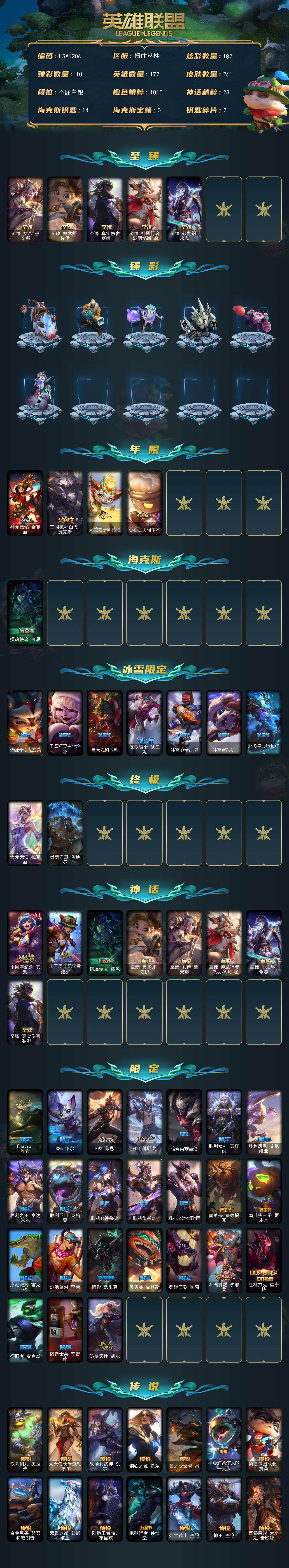 【lsa1206】172英雄/261皮肤/2终极/8神话/35限定/10臻彩/182炫彩/18传说/46史诗/白银账号等级:561/至臻女帝黛安娜/至臻奥术师佐伊/至臻真实伤害赛娜/至臻神凰行者烈羽焰凰霞/至臻心之钢永恩/无畏骑士瑟庄妮赤子初心/冰雪节格雷福斯炫金/战斗学院卡特琳娜盛典礼服/泳池派对奥莉安娜优雅珠光鲸/霸天巨兽雪崩墨菲特/可爱可爱粉红红布里茨/战斗学院盖伦不死鸟/魔女阿卡丽虚荣/净雪之月莫甘娜冬虹/幽梦玫瑰伊莉丝浪漫花蕾/神龙烈焰金克丝/王国机神白虎贾克斯/天龙之子斯莫德/点心宝贝阿木木/摄魂使者薇恩/圣诞开心鬼提莫/圣诞精灵崔丝塔娜/喜庆之树茂凯/魄罗骑士瑟庄妮/冰雪节辛吉德/冰雪兽纳尔/北极星典狱长锤石/大元素使拉克丝/灵魂守卫乌迪尔/十周年纪念安妮/十五周年纪念希维尔/fnatic库奇/ssg纳尔/f薇恩/edg佛耶戈/暗裔英雄盖伦/胜利女神瑟庄妮/胜利凤凰艾尼维亚/胜利之王泰达米尔/胜利巨口克格莫/胜利女神娑娜/胜利剑圣易/胜利之运崔斯特/南瓜头费德提克/南瓜头王子阿木木/泳池派对雷克顿/泳池派对李青/暗影沃里克/奥德赛吉格斯/都铎王朝图奇/斗魂觉醒佛耶戈/红桃杰克崔斯特/征服者贾克斯/防暴士兵辛吉德/防暴天使凯尔/铁哥们儿奥拉夫/大天使长米迦勒凯尔/战场女武神凯尔/钢铁之翼凯尔/墨之影武者易/提莫约德尔人的一大步/约德尔国队长提莫/合金巨兽努努和威朗普/双重冰晶艾尼维亚/陆地王者4wd布里茨/地狱行者孙悟空/死亡骑士盖伦/神王盖伦/西部魔影大小姐蕾欧娜/灵魂莲华阿狸/苍穹之光韦鲁斯/宇航员诺提勒斯/源计划毁灭派克/摄魂男爵弗拉基米尔/铁血剑豪易/战场公主希维尔/圣洁化身索拉卡/源代码索拉卡/兔宝宝提莫/法国皇室厄运小姐/国王泰达米尔/卡尔萨斯祸害之光/小小骑士阿木木/贵族血统萨科/掠星魔刃卡萨丁/寒冰女皇迦娜/穿着正装的恶魔维迦/黑曜石守护者墨菲特/海贼魅影卡特琳娜/源计划雄心卡特琳娜/死亡绽放伊莉丝/三昧真火孙悟空/冰晶之核布兰德/铁血猎手奈德丽/血色之锤波比/飞车暴走族古拉加斯/钢铁意志潘森/大夏武士潘森/死亡领主莫德凯撒/源计划山蕾欧娜/深海怪鱼克格莫/奥术光辉拉克丝/odst地狱伞兵拉克丝/星际迷航拉克丝/沙之守护泽拉斯/铁血猎人雷恩加尔/死亡绽放卡兹克/生化骑士德莱厄斯/暗黑女武神黛安娜/腥红之月黛安娜/勇敢的心奎因/亚特兰蒂斯辛德拉/腥红之月亚索/西部牛仔烬/黯焰双魂千珏/五星大厨塔姆/职业杀手卢锡安/霓虹杀拳蔚/虚空使者俄洛伊/星空之门内瑟斯/霹雳游侠弗拉基米尔/死亡骑士内瑟斯/战地之王加里奥/拆弹专家黑默丁格/创意工坊黑默丁格/亮丽女神希维尔/小红帽安妮/银河魔装机神安妮/地狱火加里奥/探戈灵魂崔斯特/地下都市梦魇崔斯特/皇家守卫赵信/深渊巨蟹厄加特/西部魔影厄加特/魔域梦魇厄加特/社会名流乐芙兰/弗拉基米尔伯爵/学生会长弗拉基米尔/黑潮弗拉基米尔/绝息圣堂弗拉基米尔/幽魂费德提克/联合王国费德提克/星之吞噬者费德提克/斗牛士阿利斯塔/哞利斯塔/宗师级法师训练师瑞兹/沙之守护瑞兹/原野伐木工赛恩/光明骑士希维尔/腥红之月希维尔/森林女神索拉卡/蕉泥座人索拉卡/欧米伽小队魔鬼伞兵/披着海牛的狼沃里克/海牛狼人沃里克/荒野巨兽努努和威朗普/西部牛仔厄运小姐/荒野女警厄运小姐/极地女神艾希/勇敢的心艾希/黑暗骑士艾希/勇敢的心泰达米尔/关羽云长/嘻哈精神基兰/遗迹守护者基兰/时间机器基兰/糖果大战基兰/假面女皇伊芙琳/探戈灵魂伊芙琳/惊天魔盗伊芙琳/kdaallout伊芙琳/首领图奇/黑金诱惑图奇/横行霸道图奇/幽灵幻影卡尔萨斯/狂欢阿木木/重甲猎鹰艾尼维亚/恐怖之源萨科/健美教练蒙多/暴风女神迦娜/柯基库奇/日冕女神卡尔玛/樱花乱舞卡尔玛/白魔法师维迦/灰胡子魔法师维迦/垃圾场特朗德尔/净雪之月凯特琳/戴一个表布里茨/暮色呛骑布里茨/古神墨菲特/闭月之颜貂蝉/劫掠梦魇魔腾/创世之神茂凯/荒野之咬雷克顿/血石战神雷克顿/黑色玫瑰假面舞会伊莉丝/哥特女仆奥莉安娜/末日余生布兰德/猎天使魔女薇恩/热带丛林兰博/废土男爵兰博/荒漠之咬卡西奥佩娅/沙暴巨蝎斯卡纳/远土之灵斯卡纳/单身贵族内瑟斯/武力全开乌迪尔/乡村农夫古拉加斯/狂热球迷古拉加斯/斯巴达之魂潘森/冒险精神伊泽瑞尔/失落的世界伊泽瑞尔/五杀摇滚吉他手莫德凯撒/梅花国王莫德凯撒/五杀摇滚iii遗失的章节莫德凯撒/地狱送葬约里克/喵里克/源计划暗影阿卡丽/kdaallout阿卡丽/银色闪电凯南/战神阿瑞斯盖伦/黄金骑士盖伦/烧烤女神蕾欧娜/暗影王子玛尔扎哈/小蜜蜂玛尔扎哈/荣誉使者玛尔扎哈/玉剑传说武剑仙/毛毛虫克格莫/索诺拉沙虫克格莫/荣誉使者慎/战斗学院拉克丝/欲望之主泽拉斯/怒之火炮格雷福斯/灵能特工维克托/未来战士菲奥娜/糖果女巫璐璐/幽魂骑士赫卡里姆/西部魔影赫卡里姆/西部魔影德莱厄斯/灵魂莲华德莱厄斯/方块王后辛德拉/黑夜使者凯隐/鬼影森森婕拉/kdaallout卡莎/狂狮纳尔/银河魔装机神纳尔/至高天扎克/战场boss亚索/真实伤害亚索/灵魂莲华亚索/这货不是维克兹/荣誉使者阿克尚/灵魂莲华千珏/奥德赛金克丝/双城之战金克丝/山海绘卷塔姆/源计划魅灵赛娜/灵之菊奇亚娜/灵能特工蔚/鲛妮座人娜美/西部魔影锤石/春晖大帝锤石/灌篮高手艾翁/绝息圣堂洛/绝息圣堂霞/嘟嘟奥恩/弗雷尔卓德塞拉斯/星之守护者