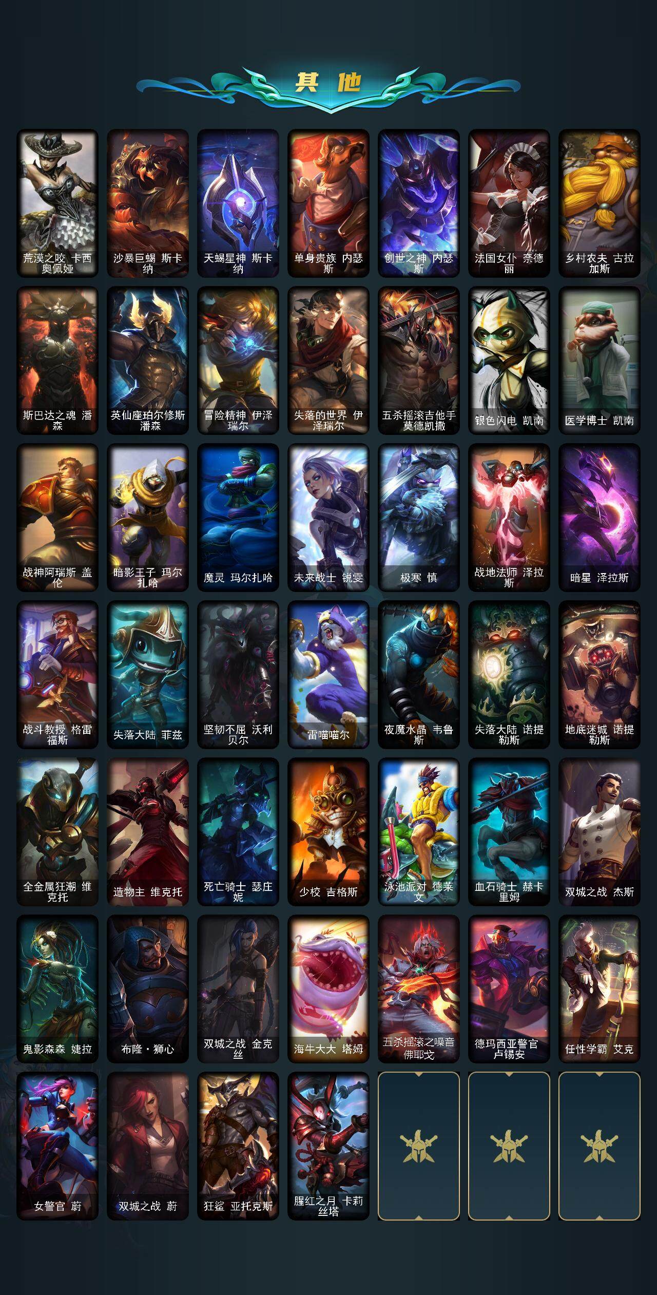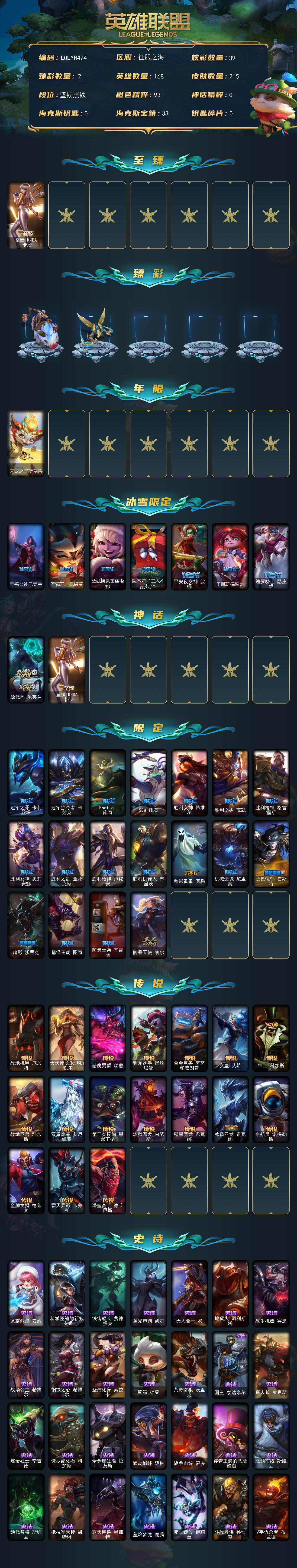 【lolyh474】168英雄/215皮肤/2神话/26限定/2臻彩/39炫彩/17传说/62史诗/未定级/至臻 k/da 卡莎/无畏骑士瑟庄妮赤子初心/冠军掠夺者卡兹克凯旋圣装/天龙之子斯莫德/幸福女神乐芙兰/圣诞开心鬼提莫/圣诞精灵崔丝塔娜/“主人不要我了”阿木木/平安夜女神琴女/圣诞玩偶波比/魄罗骑士瑟庄妮/源代码乐芙兰/冠军之矛卡莉丝塔/冠军掠夺者卡兹克/s1fnc库奇/s4ssw锤石