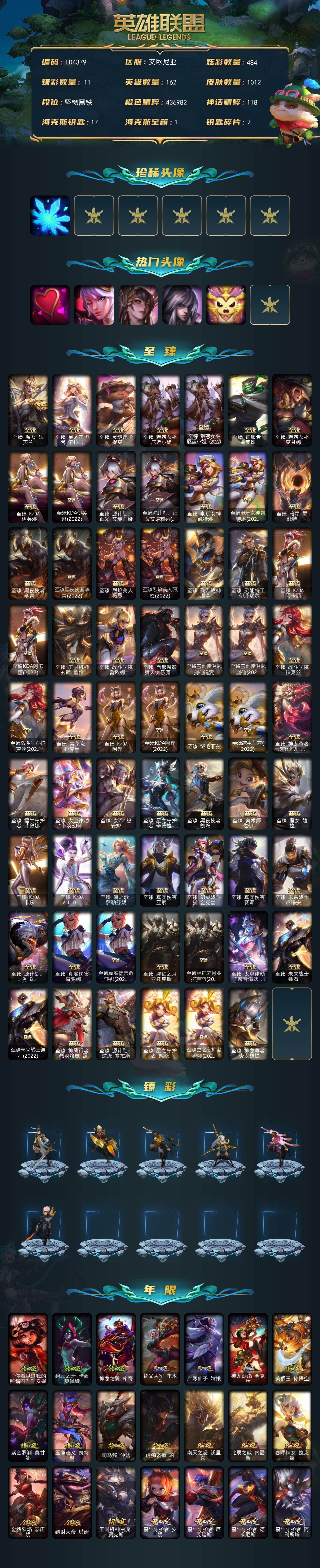 【ld4379】162英雄/1012皮肤/8终极/84神话/192限定/11臻彩/484炫彩/88传说/211史诗/未定级/雪花头像/爱意绵绵头像/觅心之翼奎因头像/玉剑传说舞剑仙头像/玉剑传说无影头像/星守索拉卡头像/至臻魔女乐芙兰/至臻星之守护者索拉卡/至臻灵魂莲华提莫/至臻魅惑女巫厄运小姐/至臻魅惑女巫厄运小姐2022/至臻征服者贾克斯/至臻魅惑女巫莫甘娜/至臻kda伊芙琳/至臻kda伊芙琳2022/至臻源计划正义艾瑞莉娅/至臻源计划:正义艾瑞莉娅2022/至臻电玩女神凯特琳/至臻电玩女神凯特琳2022/至臻暗星墨菲特/至臻黑夜使者李青/至臻黑夜使者李青2022/至臻烈焰美人薇恩/至臻烈焰美人薇恩2022/至臻飞升战神潘森/至臻灵能特工伊泽瑞尔/至臻kda阿卡丽/至臻kda阿卡丽2022/至臻王国机神玄武盖伦/至臻战斗学院蕾欧娜/至臻西部魔影猎天使恶魔泰隆/至臻玉剑传说武剑仙锐雯/至臻玉剑传说武剑仙2022/至臻战斗学院拉克丝/至臻战斗学院拉克丝2022/至臻青花瓷拉克丝/至臻kda阿狸/至臻kda阿狸2022/至臻绒毛菲兹/至臻绒毛菲兹2022/至臻神龙尊者均衡之龙沃利贝尔/至臻福牛守护者菲奥娜/至臻太空律动节奏幻师璐璐/至臻女帝黛安娜/至臻星之守护者辛德拉/至臻黑夜使者凯隐/至臻奥术师佐伊/至臻魔女婕拉/至臻kda卡莎/至臻kdaallout卡莎/至臻海之歌萨勒芬妮/至臻真实伤害亚索/至臻幻灵战斗猫金克丝/至臻真实伤害赛娜/至臻未来战士卢锡安/至臻源计划阴劫/至臻真实伤害奇亚娜/至臻真实伤害奇亚娜2022/至臻腥红之月亚托克斯/至臻腥红之月亚托克斯2022/至臻太空律动魔音海妖娜美/至臻未来战士锤石/至臻未来战士锤石2022/至臻神凰行者烈羽焰凰霞/至臻源计划逆流塞拉斯/至臻星之守护者妮蔻/至臻星之守护者妮蔻2022/至臻神龙尊者炎龙瑟提/玉剑传说无极白虎/征服者韦鲁斯炫金/玉剑传说无影莫问/玉剑传说舞剑仙轩辕/玉剑传说无影竞星/源计划火菲奥娜惩戒/你看见过我的熊猫吗安妮/碧玉之牙卡西奥佩娅/神龙之翼库奇/替父从军花木兰/广寒仙子嫦娥/神龙烈焰金克丝/美猴王孙悟空/紫金罗刹莫甘娜/玉净夜叉凯特琳/司马懿仲达/虎痴之拳蔚/南天之怒沃里克/北辰之威内瑟斯/春晖神女拉克丝/金猪烈焰瑟庄妮/纳财大帝塔姆/王国机神白虎贾克斯/福牛守护者安妮/福牛守护者厄斐琉斯/福牛守护者德莱厄斯/福牛守护者阿利斯塔/福牛守护者嘉文四世/海克斯科技安妮/海克斯科技阿利斯塔/新创战纪希维尔/海克斯科技阿木木/海克斯科技拉莫斯/海克斯科技卡萨丁/海克斯科技斯维因/海克斯科技雷克顿/海克斯科技嘉文四世/摄魂使者薇恩/海克斯科技波比/海克斯科技玛尔扎哈/海克斯科技克格莫/海克斯科技吉格斯/零之呛骑赫卡里姆/甜心宝贝娑娜/甜心之羽霞/甜心之翎洛/觅心之翼奎因/觅心猫猫悠米/觅心女王艾希/觅心魔灵奥莉安娜/幽梦玫瑰辛德拉/水晶玫瑰迦娜/幸福女神乐芙兰/冰雪风暴希维尔/圣诞开心鬼提莫/圣诞精灵崔丝塔娜/圣诞狂欢努努和威朗普/圣诞糖果棒厄运小姐/圣诞狂欢基兰/狂心冰王图奇/阿木木“主人不要我了”/胡桃夹子萨科/冰封王子蒙多/平安夜女神娑娜/英勇玩具兵普朗克/冬季仙境卡尔玛/邪恶圣诞老人维迦/夺命美人卡特琳娜/喜庆之树茂凯/雪默丁格/雪装奈德丽/圣诞玩偶波比/冰雪驯鹿波比/圣诞老人古拉加斯/圣诞驯鹿克格莫/魄罗骑士瑟庄妮/雪球也能爆炸吉格斯/圣诞老人布隆/冰雪节辛吉德/冰雪节玛尔扎哈/冰雪女神辛德拉/大元素使拉克丝/dj娑娜/kdaallout萨勒芬妮独立音乐人/灵魂守卫乌迪尔/未来战士伊泽瑞尔/武装战姬厄运小姐/十周年纪念安妮/源代码乐芙兰/新卧虎藏龙贾克斯/暗星科加斯/神凰行者瑞羽圣凰艾尼维亚/黎明使者卡尔玛/永恒之森奥恩/至臻真实伤害奇亚娜2022/至臻电玩女神凯特琳2022/至臻黑夜使者李青2022/至臻kda阿卡丽2022/至臻kda阿狸2022/至臻kda伊芙琳2022/至臻烈焰美人薇恩2022/至臻魅惑女巫厄运小姐2022/至臻绒毛菲兹2022/至臻未来战士锤石2022/至臻腥红之月亚托克斯2022/至臻星之守护者妮蔻2022/至臻源计划正义艾瑞莉娅2022/至臻玉剑传说武剑仙/至臻玉剑传说武剑仙2022/至臻战斗学院拉克丝2022/卧虎藏龙贾克斯/诺斯费拉图弗拉基米尔/养蜂人辛吉德/创星之灵璐璐/送披萨的小姐姐希维尔/地底世界崔斯特/冠军之刃锐雯/冠军典狱长锤石/冠军之血希瓦娜/冠军之刃锐雯2016/冠军之隐劫/冠军之箭艾希/冠军掠夺者卡兹克/冠军之志瑞兹/fnatic古拉加斯/fnatic迦娜/fnatic嘉文四世/fnatic卡尔萨斯/fnatic库奇/暗杀星奥莉安娜/暗杀星蒙多/暗杀星努努和威朗普/暗杀星慎/sktt1贾克斯/sktt1劫/sktt1婕拉/sktt1李青/sktt1薇恩/ssw辛吉德/ssw图奇/ssw泰隆/ssw雷恩加尔/ssw锤石/sktt1阿利斯塔/sktt1阿兹尔/sktt1卡莉丝塔/sktt1雷克顿/sktt1瑞兹/sktt1伊莉丝/sktt1艾克/sktt1奥拉夫/sktt1烬/sktt1娜美/sktt1辛德拉/sktt1扎克/ssg洛/ssg霞/ig菲奥娜/ig艾瑞莉娅/ig卡蜜尔/ig卡莎/ig乐芙兰/ig洛/f普朗克/f墨菲特/f李青/f薇恩/f锤石/安妮梦游仙境/勇敢的心德莱厄斯/电玩女神厄运小姐/电玩勇者锐雯/电玩女神阿狸/星之守护者伊泽瑞尔/玉剑传说舞剑仙/玉剑传说无影/星之守护者佐伊/灵能特工易/胜利女神希维尔/胜利之树茂凯/胜利呛神格雷福斯/胜利女神奥莉安娜/胜利之剑亚托克斯/胜利呛神卢锡安/胜利机器人布里茨/胜利女神瑟庄妮/海贼瑞兹/南瓜头费德提克/灵魂收割者索拉卡/伯爵卡萨丁/鬼影重重魔腾/鬼影森森茂凯/死亡誓约