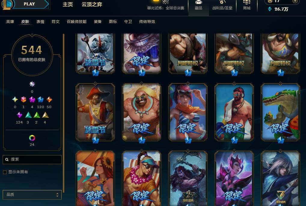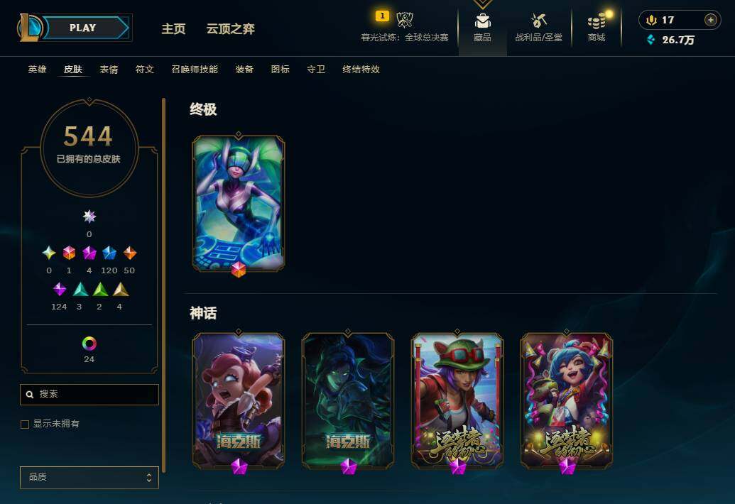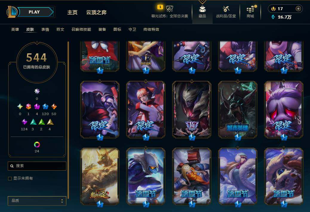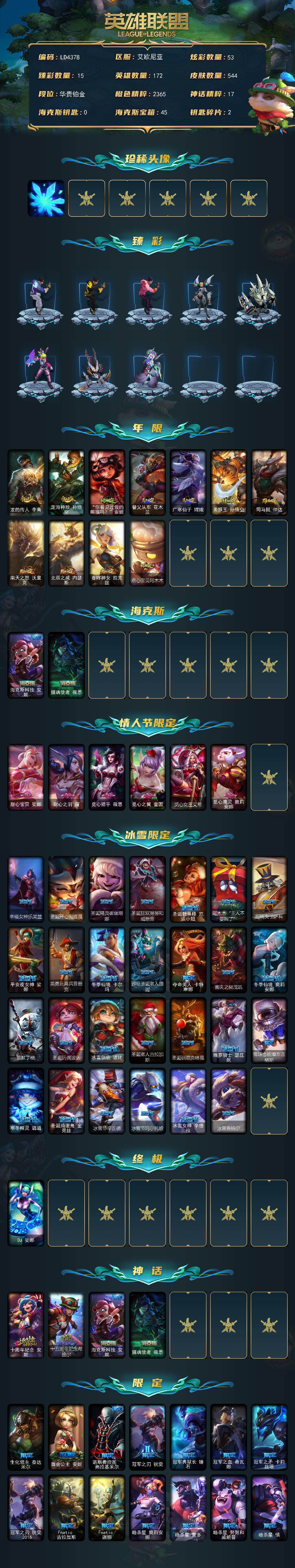 【ld4378】172英雄/544皮肤/1终极/4神话/120限定/15臻彩/53炫彩/50传说/124史诗/铂金/雪花头像/跃龙在渊/飞龙在天/乘龙御天/天龙之子 卡莎 飞龙乘云/墨之影武者 亚索 金墨耀影/星之守护者 娑娜 未来之光/弹幕天使卡莎炽天使公正/霸天巨兽雪崩墨菲特/幻灵战斗兔锐雯梦幻强袭/霸天异形卡兹克刹那银光/灵魂莲华亚索霜见之时/星之守护者阿卡丽热情之光/魔女 阿卡丽 虚荣