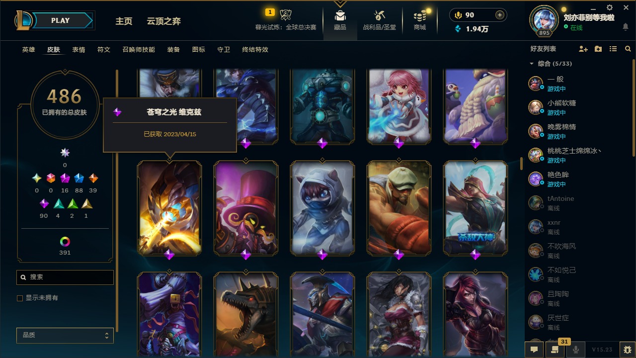 [14237624]16神话 88限定 39传说 90史诗 486皮肤 428炫彩 172英雄 可二次 可修改实名 【至臻】:至臻 天龙之子 伊泽瑞尔至臻 drx 亚托克斯至臻 双城之战2 指挥官 凯特琳至臻 k/da 卡莎至臻 玉剑传说 武剑仙至臻 西部魔影 泰隆至臻 海珀利安小队
