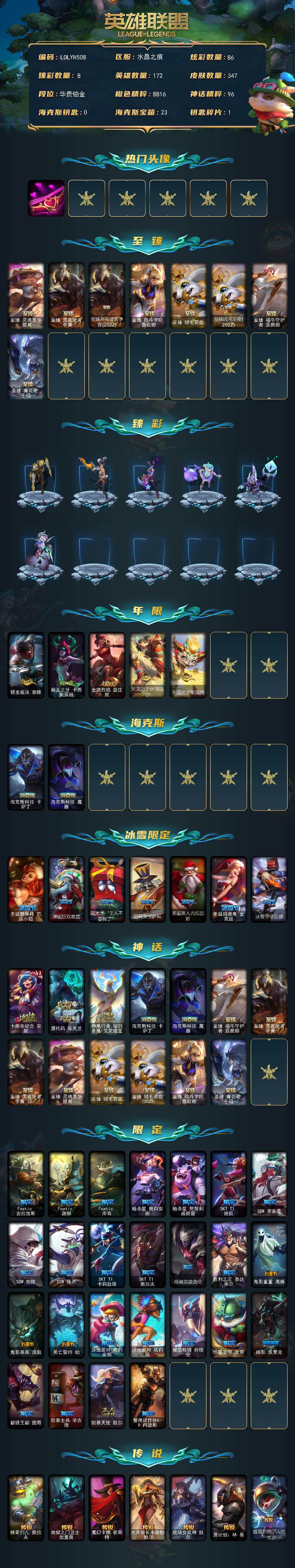 【lolyh508】172英雄/347皮肤/13神话/37限定/8臻彩/86炫彩/33传说/90史诗/铂金/爱情之歌头像/至臻灵魂莲华提莫/至臻黑夜使者李青/至臻黑夜使者李青2022/至臻战斗学院蕾欧娜/至臻绒毛菲兹/至臻绒毛菲兹2022/至臻福牛守护者菲奥娜/至臻青花瓷千珏/天龙之子卡莎飞龙乘云/冠军之隐劫凯旋圣装/雾雨之刃锐雯/星之守护者金克丝黑洞/泳池派对奥莉安娜优雅珠光鲸/最终boss维迦里大魔王/魔女阿卡丽虚荣/净雪之月莫甘娜冬虹/银龙裁决泰隆/碧玉之牙卡西奥佩娅/金猪烈焰瑟庄妮/天龙之子伊泽瑞尔/天龙之子斯莫德/海克斯科技卡萨丁/海克斯科技魔腾/圣诞糖果棒厄运小姐/圣诞狂欢基兰/阿木木“主人不要我了”/胡桃夹子萨科/圣诞老人古拉加斯/圣诞捣蛋鬼金克丝/冰雪节辛吉德/十周年纪念安妮/源代码乐芙兰/神凰行者瑞羽圣凰艾尼维亚/至臻黑夜使者李青2022/至臻绒毛菲兹2022/fnatic古拉加斯/fnatic迦娜/fnatic库奇/暗杀星奥莉安娜/暗杀星努努和威朗普/sktt1婕拉/ssw辛吉德/ssw泰隆/ssw锤石/sktt1卡莉丝塔/sktt1奥拉夫/暗裔英雄盖伦/胜利之王泰达米尔/鬼影重重魔腾/鬼影森森茂凯/死亡誓约劫/泳池派对奥莉安娜/泳池派对塔莉垭/破空呛骑孙悟空/外星装甲库奇/暗影沃里克/都铎王朝图奇/防暴士兵辛吉德/防暴天使凯尔/警用试作体k9内瑟斯/铁哥们儿奥拉夫/地狱之门卫士加里奥/魔幻卡牌崔斯特/大天使长米迦勒凯尔/战场女武神凯尔/源计划林易/提莫约德尔人的一大步/欧米伽小队幽灵特工/烈焰雄心崔丝塔娜/合金巨兽努努和威朗普/女皇艾希/西部天使艾希/绅士科加斯/黯晶凤凰艾尼维亚/电玩女神娑娜/冰霜之刃艾瑞莉娅/红色男爵库奇/最终boss维迦/神拳李青/源计划净化薇恩/驯龙学者黑默丁格/炼狱魔犬内瑟斯/战斗学院伊泽瑞尔/死亡骑士盖伦/钢铁军团盖伦/黎明使者锐雯/黯黑魔龙希瓦娜/偶像歌手阿狸/宇航员诺提勒斯/奥德赛凯隐/黑夜使者亚索/神龙尊者昼日真龙亚索/星之守护者金克丝/冰霜烈焰安妮/安伯斯与提妮/科学怪熊的新娘安妮/皇家火呛手崔斯特/特战先锋赵信/屠龙勇士赵信/铁钩船长费德提克/圣光审判凯尔/战场公主希维尔/月光女神阿忒弥斯索拉卡/圣洁化身索拉卡/狼外婆沃里克/荒野豺狼沃里克/少林武僧贾克斯/刀锋女王莫甘娜/黑色荆棘莫甘娜/炼金狂士辛吉德/死神卡尔萨斯/熔火之心拉莫斯/飞越疯人院萨科/武动巅峰萨科/战争血统蒙多/掠星魔刃卡萨丁/夜刃艾瑞莉娅/海克斯科技迦娜/血石诅咒塔里克/穿着正装的恶魔维迦/北领前线斯维因/抵抗军天使凯特琳/霸天巨兽墨菲特/沙漠风暴卡特琳娜/蓝焰梦魔魔腾/符文战神雷克顿/龙骑统帅嘉文四世/凯旋英雄嘉文四世/死亡绽放伊莉丝/灵骨工匠奥莉安娜/防弹武僧李青/地下拳王李青/苍穹之光薇恩/深海妖姬卡西奥佩娅/艳后奈德丽/四神之力乌迪尔/大夏武士潘森/钢铁烈阳蕾欧娜/源计划山蕾欧娜/刺客信条锐雯/血色精锐锐雯/帝王斑蝶克格莫/深海怪鱼克格莫/侏罗纪化石克格莫/腥红之月鬼武者慎/战国大名慎/odst地狱伞兵拉克丝/星际迷航拉克丝/钢之逆鳞希瓦娜/骸骨之爪希瓦娜/银河魔装机神希瓦娜/虚空海灵菲兹/银河魔装机神菲兹/源计划火菲奥娜/奥术大师吉格斯/永恒之森赫卡里姆/沙之守护卡兹克/死亡绽放卡兹克/生化骑士德莱厄斯/源代码丽桑卓/血羽凤凰奎因/仲裁圣女辛德拉/亚特兰蒂斯辛德拉/野火之藤婕拉/驯龙女巫婕拉/最后一只恐龙纳尔/萌侦探喵尔摩斯/西部牛仔亚索/源计划风亚索/战地机甲维克兹/弗雷尔卓德塔莉垭/源代码卡蜜尔/屠龙勇士布隆/五星大厨塔姆/冲击之刃劫/霓虹杀拳蔚/锦鲤娜美/河水之灵娜美/腥红之月锤石/上古战魂雷克塞/糖果之王艾翁/冰雪游神巴德/暮星之羽霞/五杀摇滚鼓手奥拉夫/战地之王加里奥/拆弹专家黑默丁格/冰河时代奥拉夫/创意工坊黑默丁格/亮丽女神希维尔/深潜蛙人古拉加斯/小红帽安妮/银河魔装机神安妮/黑暗骑士奥拉夫/探戈灵魂崔斯特/逆转裁判崔斯特/未来战士崔斯特/秘密特工赵信/电锯狂人厄加特/西部魔影厄加特/弗拉基米尔伯爵/学生会长弗拉基米尔/联合王国费德提克/五杀摇滚女声主唱凯尔/暗影易/星战易/玉剑传说无极/金牛座阿利斯塔/荒野镖客阿利斯塔/后场堡垒阿利斯塔/哞利斯塔/美国大叔瑞兹/瑞兹白须/武仙座海格力斯赛恩/原野伐木工赛恩/森林女神索拉卡/蕉泥座人索拉卡/游击队员崔丝塔娜/约德尔海贼团崔丝塔娜/黑暗骑士沃里克/荒野巨兽努努和威朗普/脏兮兮努努和威朗普/西部牛仔厄运小姐/勇敢的心艾希/梦魇泰达米尔/光明骑士贾克斯/地狱厨房莫甘娜/嘻哈精神基兰/遗迹守护者基兰/探戈灵魂伊芙琳/首领图奇/黑金诱惑图奇/横行霸道图奇/幽灵幻影卡尔萨斯/自由女神卡尔萨斯/尼斯巨兽科加斯/狂欢阿木木/王子不是我阿木木/铬金铠甲拉莫斯/忍龟拉莫斯/沙之守护拉莫斯/联盟之喙艾尼维亚/重甲猎鹰艾尼维亚/恐怖之源萨科/缪斯女神娑娜/深海一号卡萨丁/莲花之令艾瑞莉娅/玉剑传说风仙子/幽灵船长普朗克/急速前进库奇/海牛骑手库奇/电玩上校库奇/柯基库奇/光明骑士卡尔玛/绿水晶光辉塔里克/紫水晶意志塔里克/我怒角维迦/里尔击球手特朗德尔/传统造型特朗德尔/创世之神特朗德尔/铁锈斑斑布里茨/戴一个表布里茨/战场boss布里茨/暮色呛骑布里茨/红牌退场卡特琳娜/劫掠梦魇魔腾/恶咒亡魂魔腾/烈焰古树茂凯/鳄霸雷克顿/吕布奉先/银河魔装机