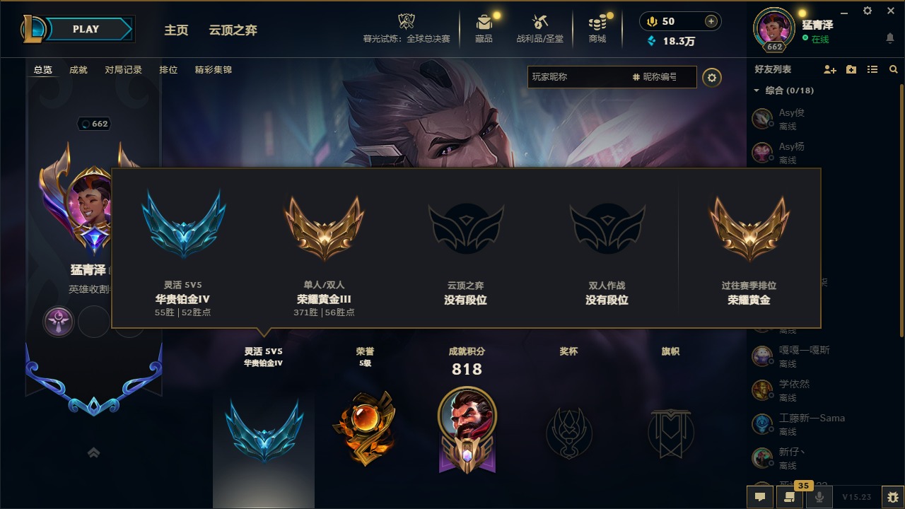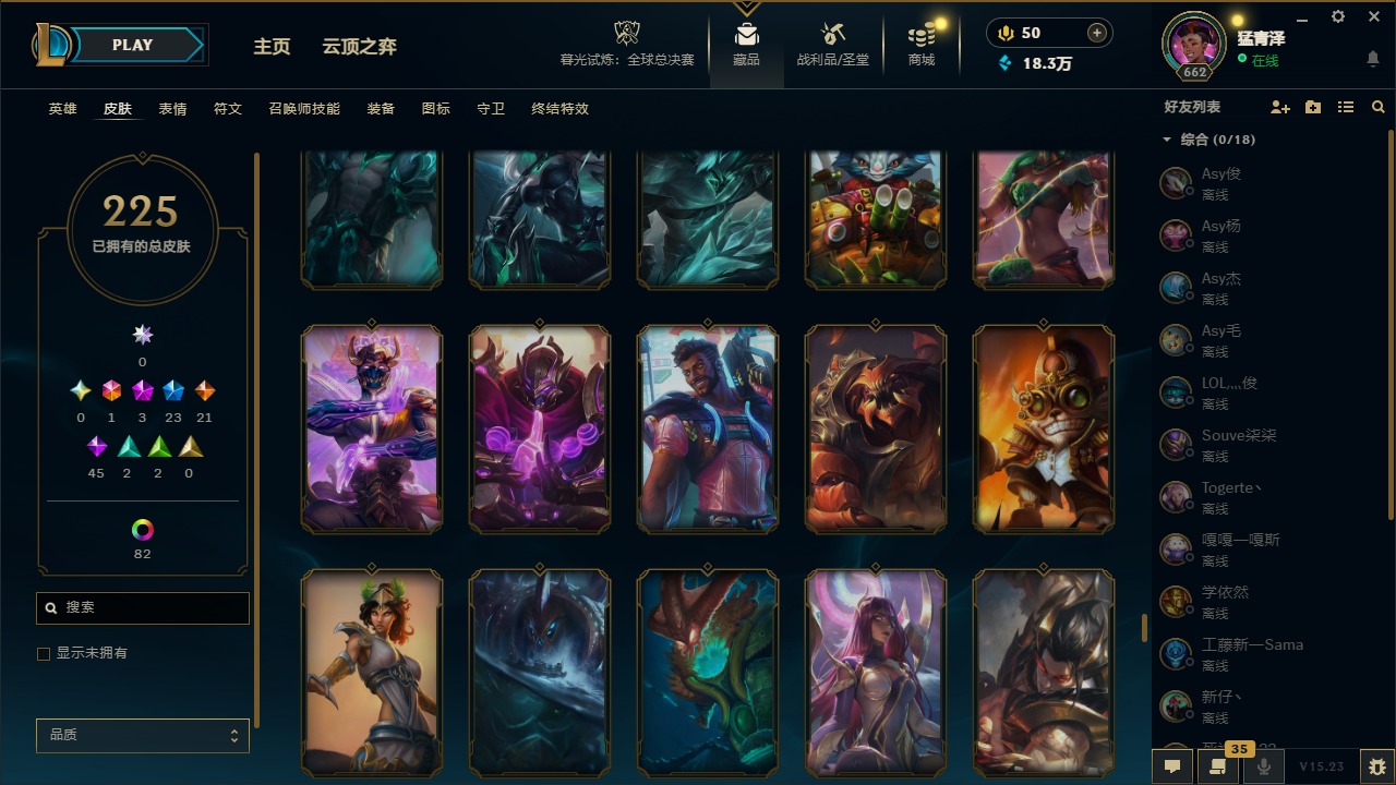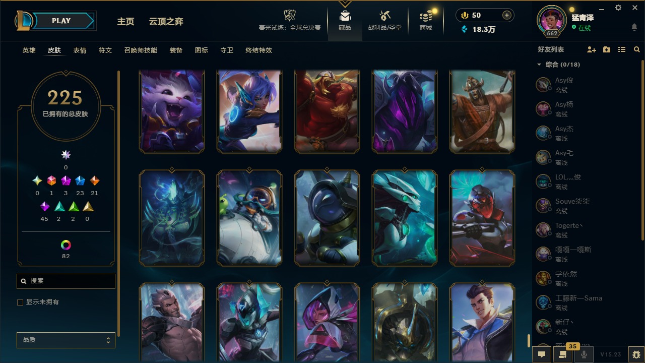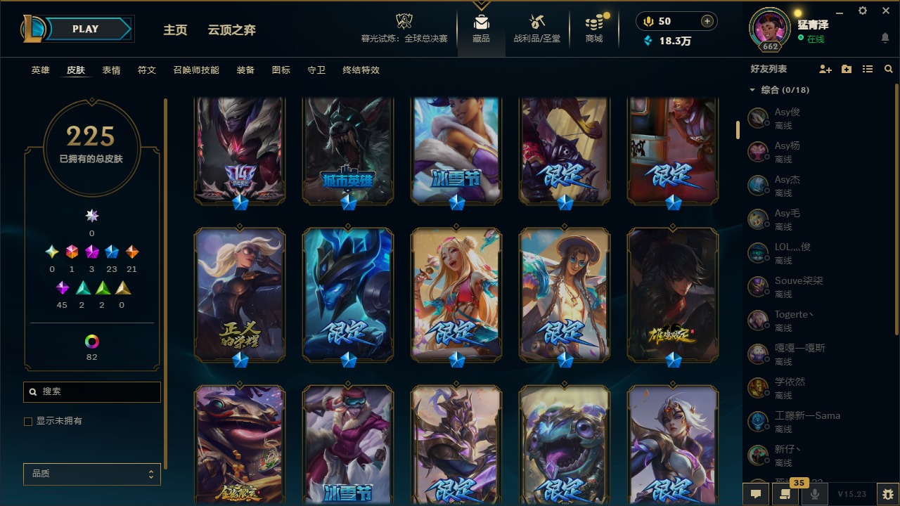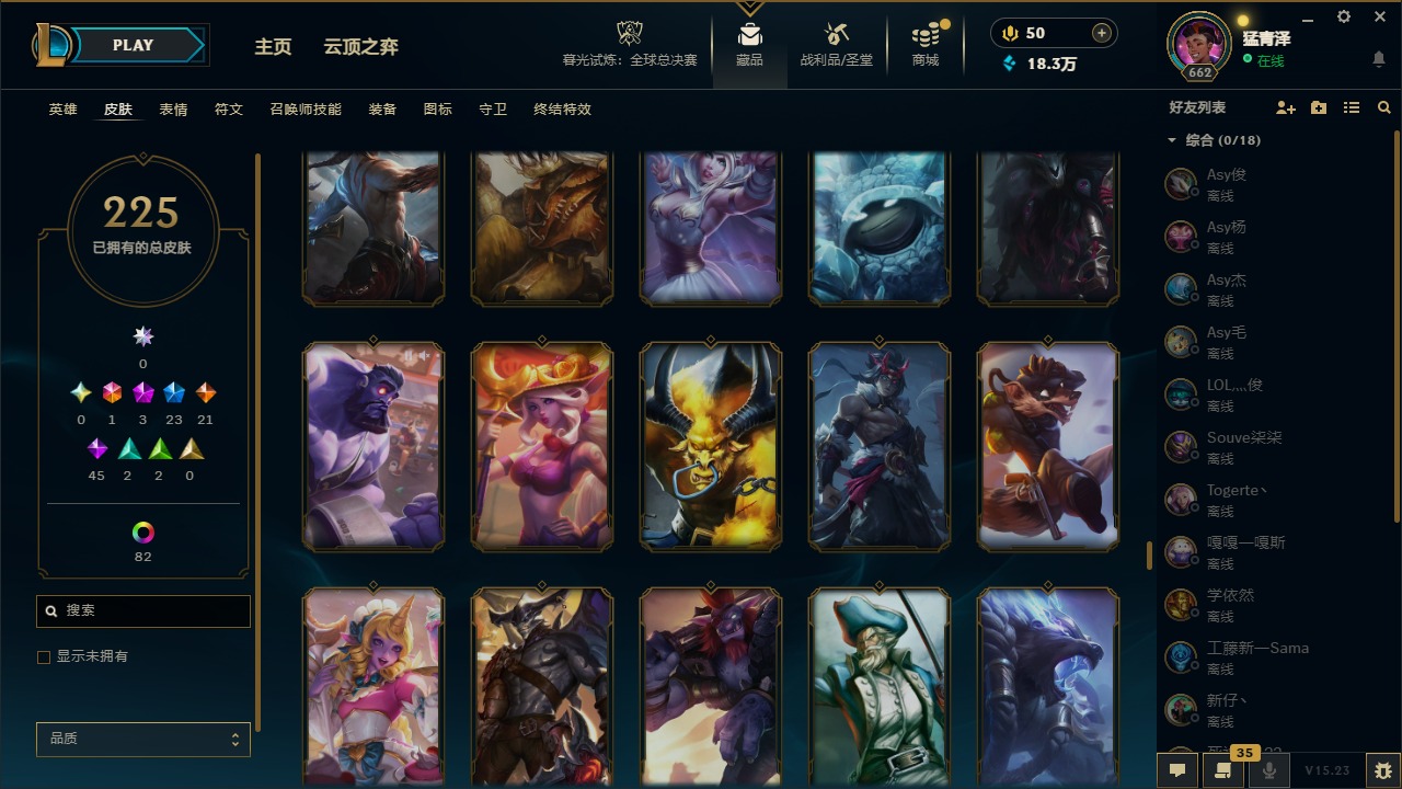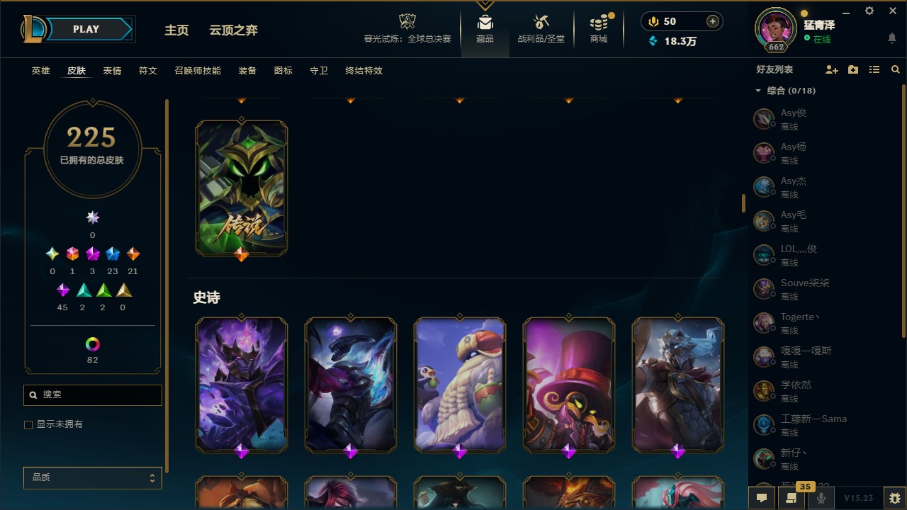 1终极 3神话 23限定 21传说 45史诗 225皮肤 92炫彩 149英雄 可二次 可修改实名 【赛季限定皮】:胜利女神-菲奥娜胜利之运 崔斯特胜利剑圣 易胜利女神 娑娜胜利巨口 克格莫胜利之王 泰达米尔 【冠军限定系列】:s3 skt t1 劫s8 ig 艾瑞莉娅 【冰雪节限定】