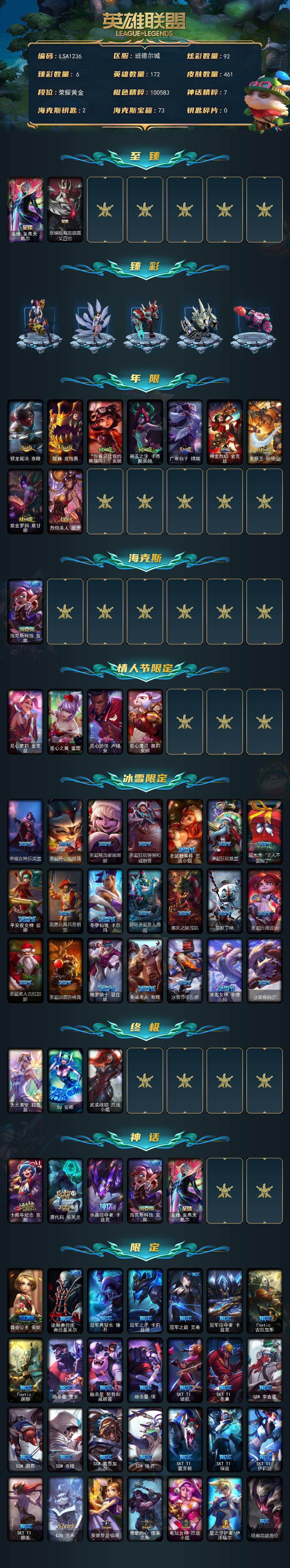 【lsa1236】172英雄/461皮肤/3终极/6神话/97限定/6臻彩/92炫彩/44传说/111史诗/黄金账号等级:480/至臻至高天凯尔/至臻暗裔英雄嘉文四世/神龙烈焰金克丝珍珠龙息/偶像歌手阿狸极地雪莲/霸天战士雷恩加尔星啸天火/星之守护者奥莉安娜未来之光/霸天巨兽雪崩墨菲特/可爱可爱粉红红布里茨/银龙裁决泰隆/醒狮克格莫/你看见过我的熊猫吗安妮/碧玉之牙卡西奥佩娅/广寒仙子嫦娥/神龙烈焰金克丝/美猴王孙悟空/紫金罗刹莫甘娜/烈焰美人薇恩/海克斯科技安妮/觅心萝莉金克丝/觅心之翼奎因/觅心游侠卢锡安/觅心魔灵奥莉安娜/幸福女神乐芙兰/圣诞开心鬼提莫/圣诞精灵崔丝塔娜/圣诞狂欢努努和威朗普/圣诞糖果棒厄运小姐/圣诞狂欢基兰/阿木木“主人不要我了”/平安夜女神娑娜/英勇玩具兵普朗克/冬季仙境卡尔玛/邪恶圣诞老人维迦/喜庆之树茂凯/雪默丁格/圣诞玩偶波比/圣诞老人古拉加斯/圣诞驯鹿克格莫/魄罗骑士瑟庄妮/圣诞老人布隆/冰雪节辛吉德/冰雪女神辛德拉/冰雪兽纳尔/大元素使拉克丝/dj娑娜/武装战姬厄运小姐/十周年纪念安妮/源代码乐芙兰/水晶掠夺者卡兹克/舞会公主安妮/诺斯费拉图弗拉基米尔/冠军典狱长锤石/冠军之矛卡莉丝塔/冠军之箭艾希/冠军掠夺者卡兹克/fnatic古拉加斯/fnatic迦娜/暗杀星蒙多/暗杀星努努和威朗普/暗杀星慎/sktt1婕拉/sktt1李青/ssw辛吉德/ssw图奇/ssw泰隆/ssw雷恩加尔/ssw锤石/sktt1雷克顿/sktt1瑞兹/sktt1伊莉丝/sktt1娜美/edg悠米/安妮梦游仙境/勇敢的心德莱厄斯/电玩女神厄运小姐/星之守护者伊泽瑞尔/暗裔英雄盖伦/胜利之剑亚托克斯/海贼瑞兹/南瓜头费德提克/灵魂收割者索拉卡/大魔王提莫/鬼影重重魔腾/鬼影森森茂凯/无头骑士赫卡里姆/魅惑女巫崔丝塔娜/魅惑女巫厄运小姐/魅惑女巫莫甘娜/魅惑女巫奈德丽/魅惑女巫菲奥娜/糖果使徒费德提克/泳池派对厄运小姐/泳池派对格雷福斯/泳池派对蕾欧娜/机械迷城加里奥/蓝色忧郁崔斯特/蒙多蒙多/密林猎手提莫/女猎手希维尔/外星装甲库奇/暗影沃里克/波比的巧克力工坊/创战纪希维尔/都铎王朝图奇/钢铁之翼艾尼维亚/红桃杰克崔斯特/防暴机器人布里茨/防暴士兵辛吉德/防暴天使凯尔/惊悚派对阿木木/警用试作体k9内瑟斯/克格汪/铁哥们儿奥拉夫/魔幻卡牌崔斯特/邪鸦魅影乐芙兰/大天使长米迦勒凯尔/恶魔男爵瑞兹/约德尔国队长提莫/欧米伽小队幽灵特工/烈焰雄心崔丝塔娜/驯龙炮手崔丝塔娜/女皇艾希/源计划联合艾希/西部天使艾希/鬼魂新娘莫甘娜/绅士科加斯/战地巨兽科加斯/黯晶凤凰艾尼维亚/电玩女神娑娜/冰霜之刃艾瑞莉娅/女主播迦娜/红色男爵库奇/最终boss维迦/未来战士凯特琳/苹果机器人布里茨/地狱行者孙悟空/丧尸布兰德/源计划净化薇恩/第三类接触黑默丁格/炼狱魔犬内瑟斯/屠龙勇士潘森/腥红之月鬼武姬阿卡丽/死亡骑士盖伦/黎明使者锐雯/星之守护者拉克丝/黯黑魔龙希瓦娜/冰霜亚龙希瓦娜/焰尾妖狐阿狸/偶像歌手阿狸/星之守护者阿狸/符文战熊沃利贝尔/苍穹之光韦鲁斯/泳池派对吉格斯/霸天异形卡兹克/心之钢凯隐/西部魔影卢锡安/冰霜烈焰安妮/安伯斯与提妮/科学怪熊的新娘安妮/绞肉机角斗士赵信/铁钩船长费德提克/重生之沙费德提克/地狱火阿利斯塔/战场公主希维尔/月光女神阿忒弥斯索拉卡/圣洁化身索拉卡/兔宝宝提莫/熊猫提莫/狼外婆沃里克/火牙狼人沃里克/荒野豺狼沃里克/法国皇室厄运小姐/紫晶射手艾希/国王泰达米尔/百夫长贾克斯/少林武僧贾克斯/刀锋女王莫甘娜/黑色荆棘莫甘娜/炼金狂士辛吉德/死神卡尔萨斯/小小骑士阿木木/殇之机器人阿木木/熔火之心拉莫斯/贵族血统萨科/飞越疯人院萨科/武动巅峰萨科/战争血统蒙多/夜刃艾瑞莉娅/海克斯科技迦娜/寒冰女皇迦娜/血石诅咒塔里克/穿着正装的恶魔维迦/北领前线斯维因/抵抗军天使凯特琳/黑曜石守护者墨菲特/霸天巨兽墨菲特/暗夜猫女卡特琳娜/前线指挥官卡特琳娜/蓝焰梦魔魔腾/死亡绽放伊莉丝/腥红之月伊莉丝/暗星奥莉安娜/三昧真火孙悟空/v字仇杀者布兰德/灵魂烈焰布兰德/地下拳王李青/屠龙勇士薇恩/苍穹之光薇恩/深海妖姬卡西奥佩娅/战地机甲斯卡纳/生化博士黑默丁格/法老王朝内瑟斯/艳后奈德丽/铁血猎手奈德丽/四神之力乌迪尔/血色之锤波比/飞车暴走族古拉加斯/大夏武士潘森/实习护士阿卡丽/铁血女忍阿卡丽/刺客信条凯南/腥红之月凯南/铁甲雄心盖伦/钢铁烈阳蕾欧娜/源计划山蕾欧娜/至高君王玛尔扎哈/血色精锐锐雯/帝王斑蝶克格莫/侏罗纪化石克格莫/腥红之月鬼武者慎/战国大名慎/星际迷航拉克丝/沙之守护泽拉斯/钢之逆鳞希瓦娜/海牛猎手菲兹/银河魔装机神菲兹/暗黑武士雷恩加尔/白色死神韦鲁斯/暗星韦鲁斯/皇家守卫菲奥娜/天启骑士杰斯/刀锋女王丽桑卓/暗黑女武神黛安娜/血羽凤凰奎因/仲裁圣女辛德拉/灰烬领主奥瑞利安索尔/野火之藤婕拉/驯龙女巫婕拉/最后一只恐龙纳尔/萌侦探喵尔摩斯/邪恶魔人扎克/战地机甲维克兹/屠龙勇士布隆/猛虎布隆/西部牛仔烬/黯焰双魂千珏/黑帮狂花金克丝/五星大厨塔姆/时之砂艾克/炼狱魔女蔚/锦鲤娜美/河水之灵娜美/星际之门阿兹尔/幽冥领主阿兹尔/虚空使者俄洛伊/永恒之森巴德/冰雪游神巴德/五杀摇滚鼓手奥拉夫/星空之门内瑟斯/拆弹专家黑默丁格/冰河时代奥拉夫/创意工坊黑默丁格/亮丽女神希维尔/法老阿木木/小红