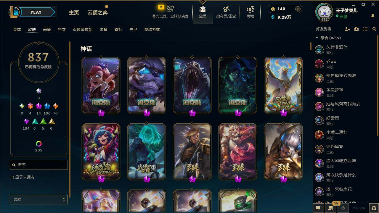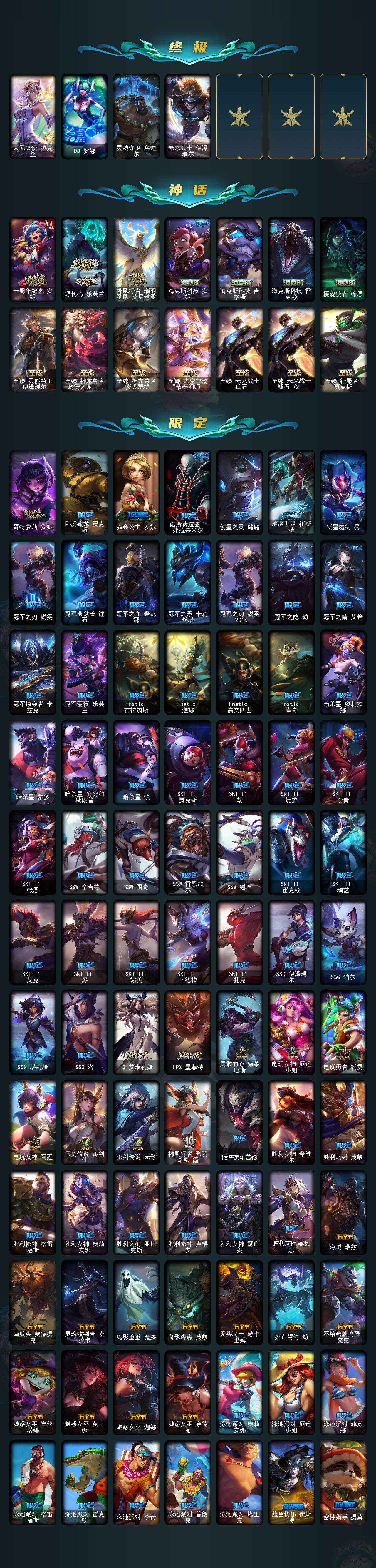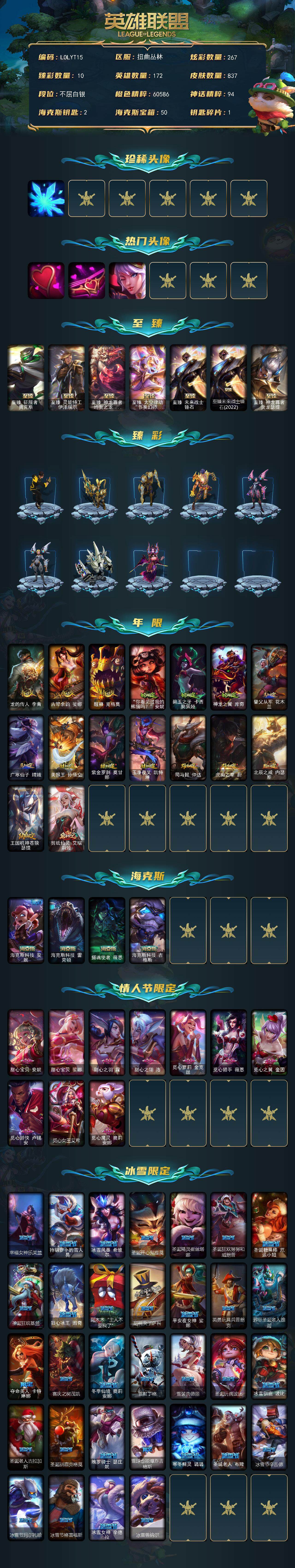 【lolyt15】172英雄/837皮肤/4终极/14神话/166限定/10臻彩/267炫彩/76传说/194史诗/白银账号等级:472/雪花头像/爱意绵绵头像/爱情之歌头像/觅心之翼奎因头像/至臻征服者贾克斯/至臻灵能特工伊泽瑞尔/至臻神龙尊者均衡之龙 沃利贝尔/至臻 太空律动 “节奏幻师” 璐璐/至臻未来战士锤石/至臻 未来战士 锤石 2022/至臻 神龙尊者 炎龙瑟提/飞龙在天/吕布