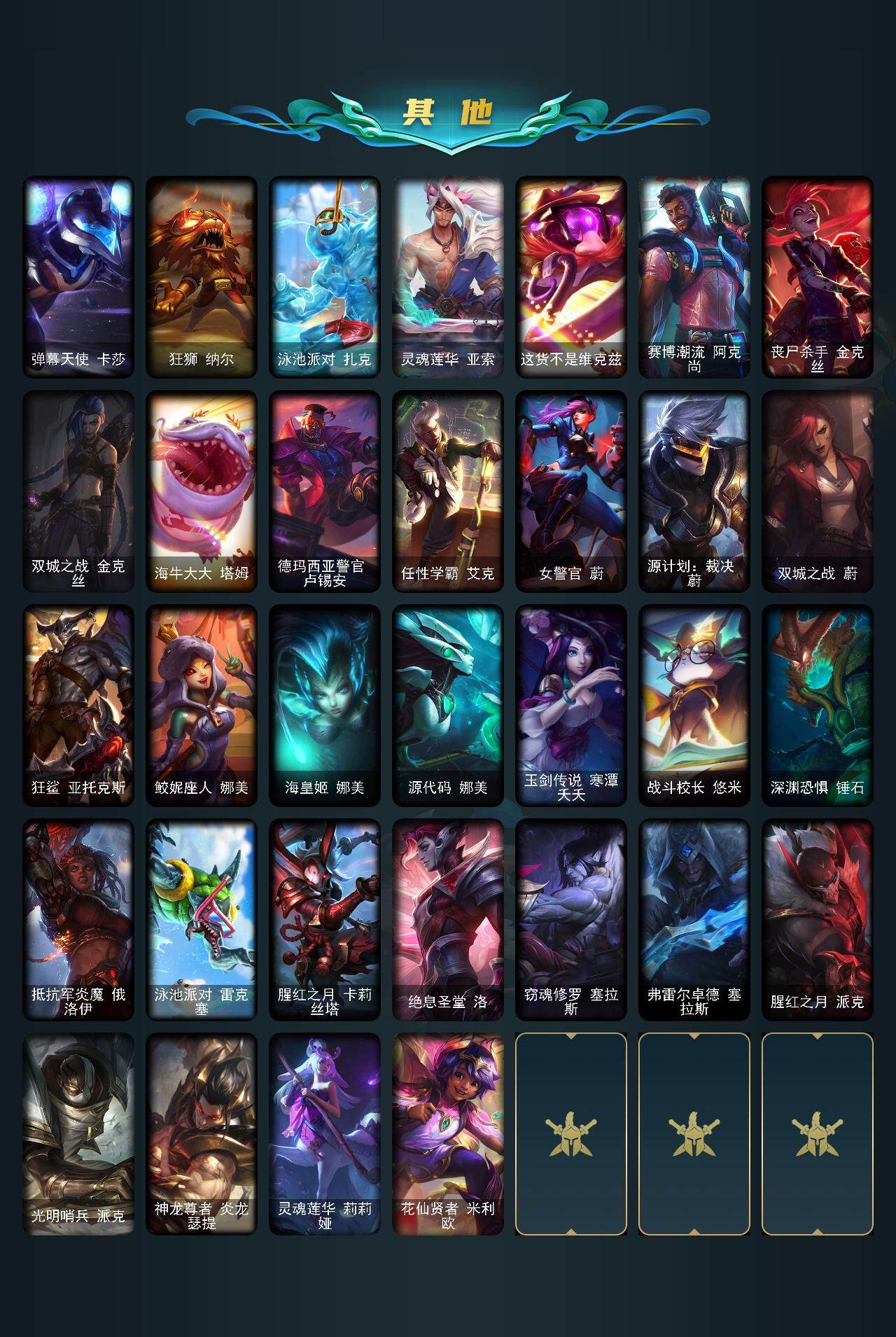 【lolyh527】168英雄/590皮肤/2终极/19神话/97限定/14臻彩/181炫彩/53传说/149史诗/青铜账号等级:303/至臻魅惑女巫厄运小姐/至臻kda伊芙琳/至臻海珀利安小队x09星环灵风迦娜/至臻黑夜使者李青/至臻灵能特工伊泽瑞尔/至臻王国机神玄武盖伦/至臻星之守护者辛德拉/至臻kda卡莎/至臻kdaallout卡莎/至臻真实伤害赛娜/至臻腥红之月亚托克斯/神龙烈焰金克丝珍珠龙息/天龙之子卡莎飞龙乘云/无畏骑士瑟庄妮赤子初心/吕布奉先炫金战神/替父从军花木兰炫金龙刃/墨之影武者亚索金墨耀影/冠军之志瑞兹凯旋圣装/弹幕天使卡莎炽天使勇敢/霸天异形卡兹克刹那银光/灵魂莲华锐雯流火/魔女阿卡丽虚荣/净雪之月莫甘娜冬虹/霸天异形卡兹克黄金异端/心之钢伊泽瑞尔天纵才华/碧玉之牙卡西奥佩娅/替父从军花木兰/广寒仙子嫦娥/神龙烈焰金克丝/烈焰仙子黛安娜/天龙之子斯莫德/海克斯科技卡萨丁/海克斯科技斯维因/海克斯科技雷克顿/海克斯科技玛尔扎哈/觅心女王艾希/幽梦玫瑰辛德拉/幸福女神乐芙兰/圣诞开心鬼提莫/圣诞精灵崔丝塔娜/圣诞狂欢努努和威朗普/圣诞糖果棒厄运小姐/圣诞狂欢基兰/阿木木“主人不要我了”/胡桃夹子萨科/平安夜女神娑娜/英勇玩具兵普朗克/冬季仙境卡尔玛/邪恶圣诞老人维迦/夺命美人卡特琳娜/喜庆之树茂凯/雪默丁格/圣诞玩偶波比/圣诞老人古拉加斯/圣诞驯鹿克格莫/魄罗骑士瑟庄妮/圣诞老人德莱文/圣诞老人布隆/冰雪节辛吉德/冰雪兽纳尔/dj娑娜/灵魂守卫乌迪尔/十周年纪念安妮/源代码乐芙兰/十五周年纪念希维尔/神凰行者瑞羽圣凰艾尼维亚/舞会公主安妮/诺斯费拉图弗拉基米尔/地底世界崔斯特/冠军之矛卡莉丝塔/冠军之志瑞兹/fnatic古拉加斯/fnatic迦娜/fnatic卡尔萨斯/fnatic库奇/暗杀星蒙多/暗杀星慎/sktt1贾克斯/sktt1劫/sktt1婕拉/sktt1薇恩/ssw辛吉德/ssw雷恩加尔/ssw锤石/sktt1阿利斯塔/sktt1卡莉丝塔/sktt1伊莉丝/sktt1奥拉夫/ig菲奥娜/f普朗克/安妮梦游仙境/勇敢的心德莱厄斯/黎明使者薇恩/暗裔英雄盖伦/胜利女神希维尔/胜利之树茂凯/胜利呛神格雷福斯/胜利女神奥莉安娜/胜利之剑亚托克斯/胜利呛神卢锡安/胜利凤凰艾尼维亚/胜利之王泰达米尔/胜利巨口克格莫/胜利女神娑娜/海贼瑞兹/灵魂收割者索拉卡/鬼影重重魔腾/鬼影森森茂凯/无头骑士赫卡里姆/克烈古拉伯爵/不给糖就捣蛋艾克/魅惑女巫崔丝塔娜/魅惑女巫莫甘娜/魅惑女巫迦娜/糖果使徒费德提克/泳池派对奥莉安娜/泳池派对格雷福斯/泳池派对雷克顿/机械迷城加里奥/蓝色忧郁崔斯特/蒙多蒙多/女猎手希维尔/暗影沃里克/野兽猎人德莱文/野兽猎人泰达米尔/波比的巧克力工坊/都铎王朝图奇/钢铁之翼艾尼维亚/征服者卡尔玛/防暴士兵辛吉德/防暴天使凯尔/警用试作体k9内瑟斯/铁哥们儿奥拉夫/地狱之门卫士加里奥/魔幻卡牌崔斯特/战地机甲厄加特/血石领主弗拉基米尔/大天使长米迦勒凯尔/战场女武神凯尔/钢铁之翼凯尔/源计划林易/恶魔男爵瑞兹/黑夜使者索拉卡/提莫约德尔人的一大步/约德尔国队长提莫/欧米伽小队幽灵特工/烈焰雄心崔丝塔娜/源计划联合艾希/西部天使艾希/绅士科加斯/双重冰晶艾尼维亚/黯晶凤凰艾尼维亚/电玩女神娑娜/冰霜之刃艾瑞莉娅/女主播迦娜/红色男爵库奇/最终boss维迦/女警狙击凯特琳/未来战士凯特琳/战斗学院凯特琳/苹果机器人布里茨/冰川巨兽墨菲特/上古战魂魔腾/神拳李青/源计划净化薇恩/银河魔装机神兰博/第三类接触黑默丁格/炼狱魔犬内瑟斯/屠龙勇士潘森/腥红之月鬼武姬阿卡丽/死亡骑士盖伦/钢铁军团盖伦/黎明使者锐雯/枯萎之壤泽拉斯/黯黑魔龙希瓦娜/符文战熊沃利贝尔/宇航员诺提勒斯/女校长菲奥娜/泳池派对吉格斯/灌篮高手德莱厄斯/蔷薇绅士杰斯/奥德赛凯隐/黑夜使者亚索/西部天使赛娜/西部魔影卢锡安/安伯斯与提妮/科学怪熊的新娘安妮/腥红之月崔斯特/特战先锋赵信/绞肉机角斗士赵信/摄魂男爵弗拉基米尔/铁钩船长费德提克/重生之沙费德提克/圣光审判凯尔/天人合一易/战争机器赛恩/钢铁之心希维尔/月光女神阿忒弥斯索拉卡/源代码索拉卡/兔宝宝提莫/火箭达人崔丝塔娜/火牙狼人沃里克/荒野豺狼沃里克/黑帮狂花厄运小姐/紫晶射手艾希/国王泰达米尔/百夫长贾克斯/刀锋女王莫甘娜/黑色荆棘莫甘娜/炼金狂士辛吉德/死神卡尔萨斯/卡尔萨斯祸害之光/侏罗纪化石科加斯/小小骑士阿木木/熔火之心拉莫斯/飞越疯人院萨科/武动巅峰萨科/战争血统蒙多/掠星魔刃卡萨丁/夜刃艾瑞莉娅/夜行义贼艾瑞莉娅/海克斯科技迦娜/星之守护者迦娜/特种部队普朗克/恐惧新星普朗克/血石诅咒塔里克/穿着正装的恶魔维迦/北领前线斯维因/抵抗军天使凯特琳/铁血狙击手凯特琳/黑曜石守护者墨菲特/无畏号墨菲特/海贼魅影卡特琳娜/前线指挥官卡特琳娜/沙漠风暴卡特琳娜/蓝焰梦魔魔腾/符文战神雷克顿/枯萎之壤雷克顿/凯旋英雄嘉文四世/死亡绽放伊莉丝/腥红之月伊莉丝/灵骨工匠奥莉安娜/暗星奥莉安娜/三昧真火孙悟空/斗战胜佛孙悟空/v字仇杀者布兰德/冰晶之核布兰德/灵魂烈焰布兰德/至高之拳李青/屠龙勇士薇恩/深海妖姬卡西奥佩娅/战地机甲斯卡纳/法老王朝内瑟斯/铁血猎手奈德丽/血色之锤波比/星之守护者波比/飞车暴走族古拉加斯/钢铁意志潘森/大夏武士潘森/冰川勇者伊泽瑞尔/银色之牙阿卡丽/铁血女忍阿卡丽/刺客信条凯南/腥