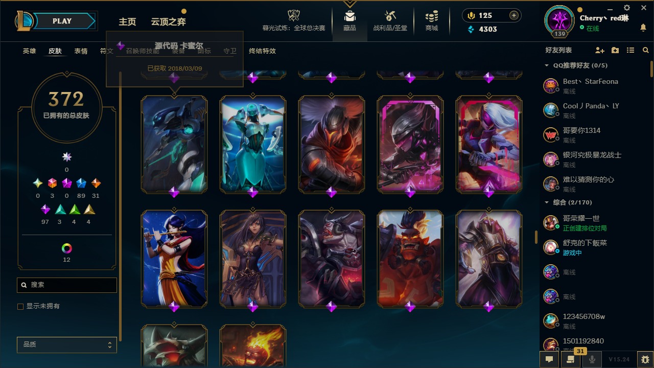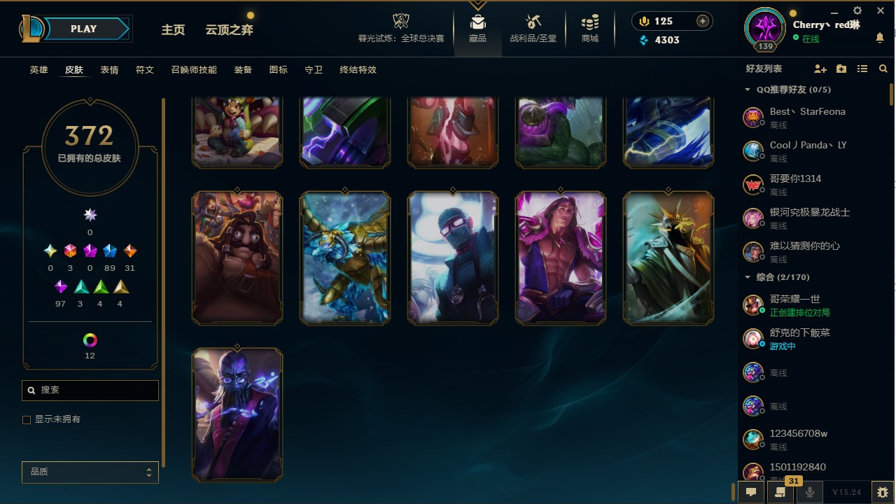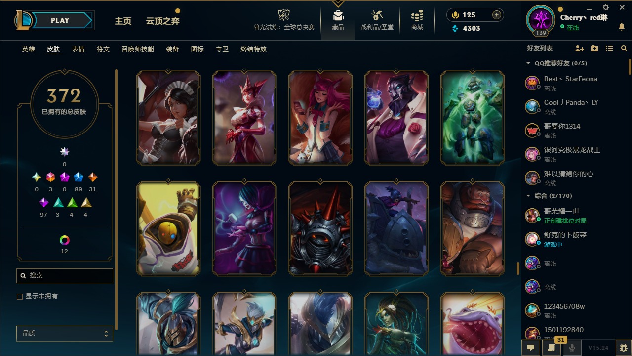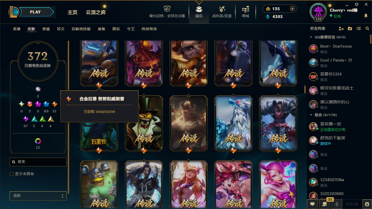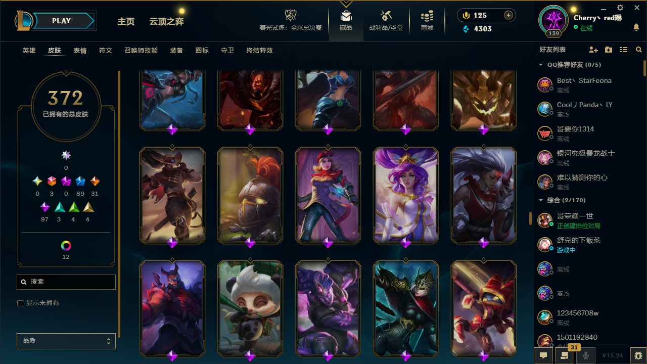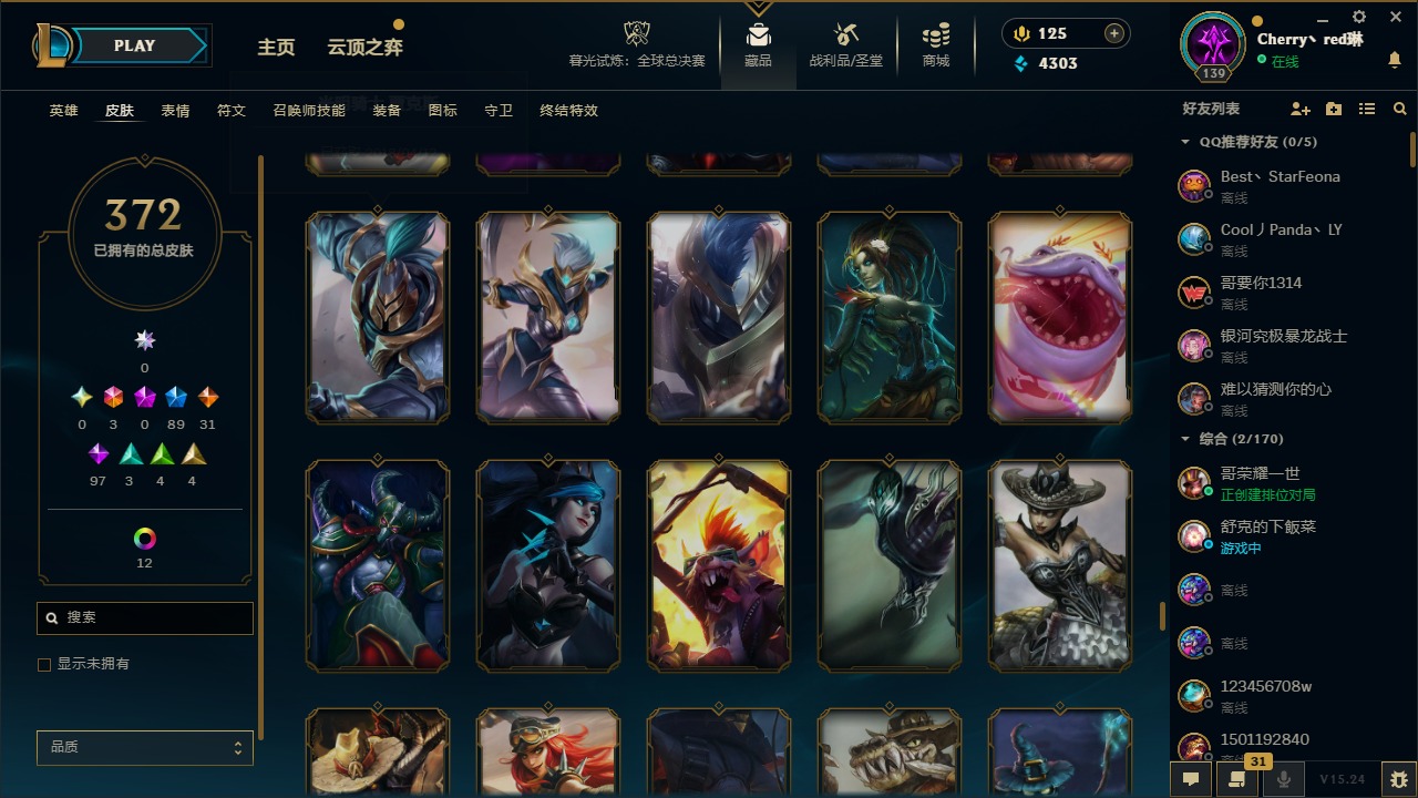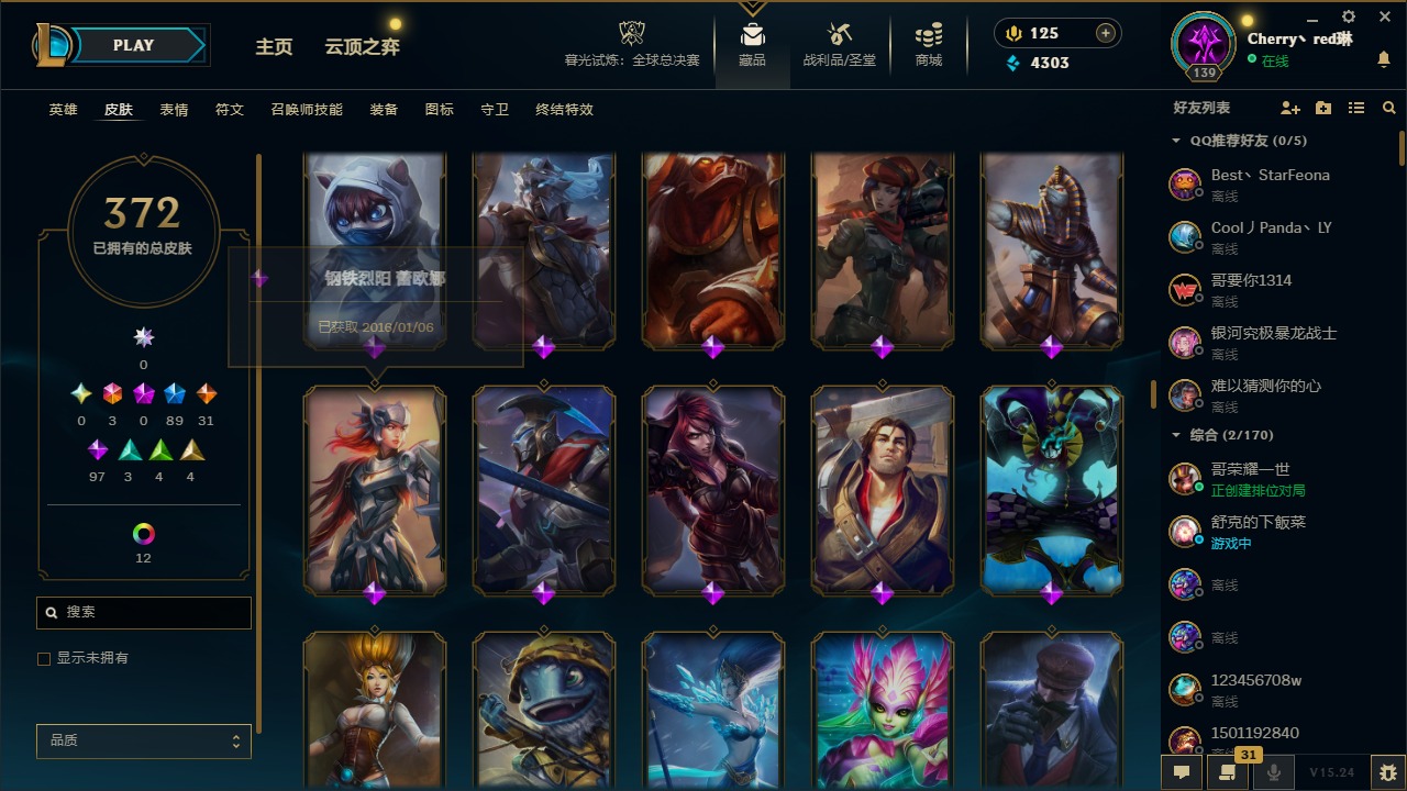 [14364687]3终极 89限定 31传说 97史诗 372皮肤 17炫彩 132英雄 可二次 可修改实名 【情人节限定】:觅心猎手 薇恩觅心魔灵 奥利安娜觅心女王 艾希觅心之翼 奎因甜心宝贝 安妮甜心宝贝 娑娜 【赛季限定皮】:胜利之树 茂凯胜利呛神 格雷福斯胜利之剑 亚托克斯