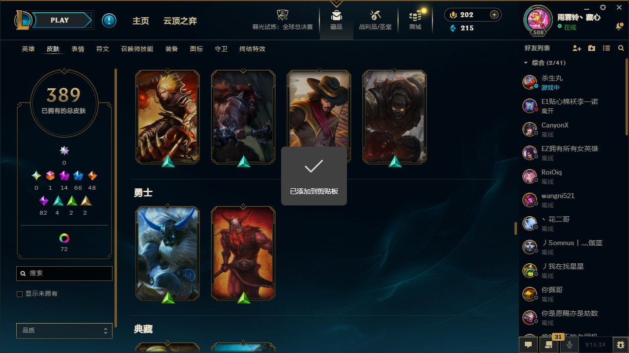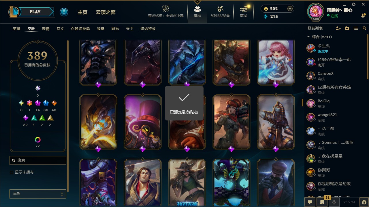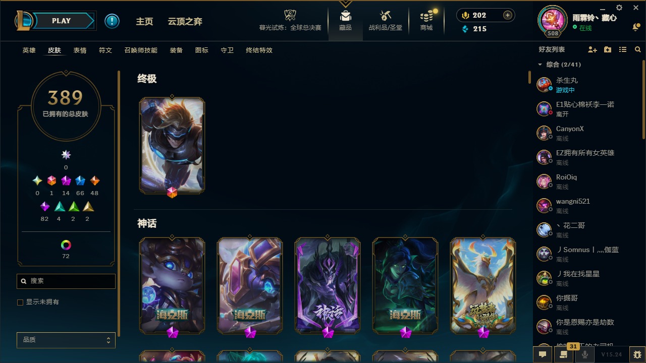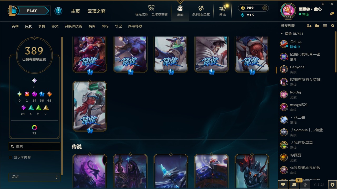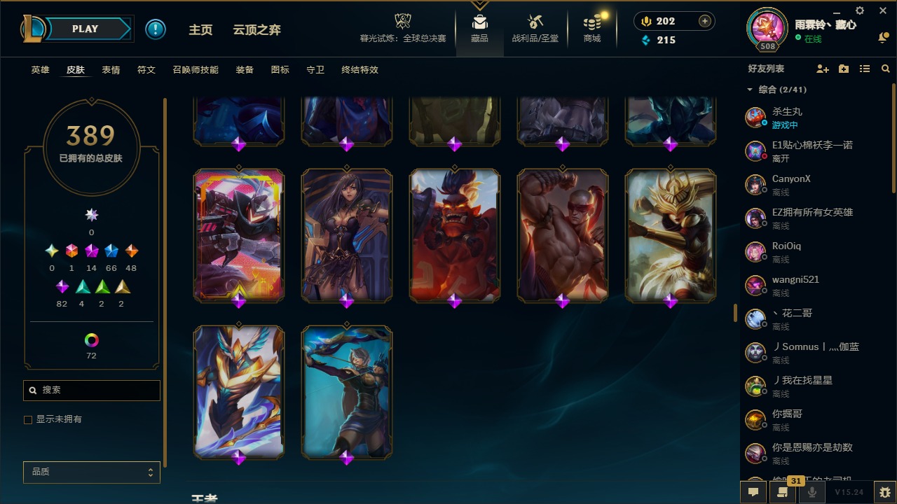 [14369408]1终极 14神话 66限定 48传说 82史诗 389皮肤 77炫彩 169英雄 可二次 可修改实名 【至臻】:至臻 天龙之子 伊泽瑞尔至臻 真实伤害 奇亚娜至臻 神龙尊者 炎龙瑟提至臻 灵能特工 伊泽瑞尔至臻 k/da all out卡莎至臻 源计划:逆流 塞拉斯至臻 飞升战神 潘森 【海克斯】:摄魂 薇恩海克斯 波比海克斯 克格莫 【限定】:钢铁军团 拉克丝 【赛季限定皮】:胜利之剑 亚托克斯胜利呛神 卢锡安 【冠军限定系列】:s1fnc 酒桶s1fnc 迦娜s1fnc 库奇s2 暗杀星 慎s3 skt t1 薇恩s4 ssw 锤石s4 ssw 泰隆s4 ssw 图奇s4 ssw 炼金s5 skt t1 瑞兹s6 skt t1 烬s6 skt t1 艾克s6 skt t1 球女s8 ig 艾瑞莉娅s8 ig 菲奥娜s8 ig 卡密尔s8 ig 卡莎s8 ig 乐芙兰s8 ig 洛s10 dwg 崔斯特s10 dwg 烬s11 edg 格雷福斯s11 edg 佛耶戈s11 edg 佐伊s11 edg 厄斐琉斯s11 edg 悠米 【冰雪节限定】:冰雪节 玛尔扎哈胡桃夹子 萨科圣诞精灵 崔丝塔娜圣诞狂欢 努努和威朗普圣诞老人 德莱文圣诞老人 古拉加斯圣诞玩偶 波比圣诞驯鹿 克格莫喜庆之树 茂凯狂心冰王 图奇 【泳池派对】:泳池派对 吉格斯泳池派对 普朗克 【万圣节限定】:灵魂收割者 索拉卡魅惑女巫 崔丝塔娜死亡誓约 维克托 【年限】:福牛守护者 厄斐琉斯 【周年】:3周年 厄运小姐6周年 伊泽瑞尔7周年 泰隆8周年 佐伊10周年 安妮10周年 凤凰10周年 霞 【其他限定/神话皮】:灰烬骑士 潘森源代码 乐芙兰防暴天使 凯尔暗影 沃里克波比的巧克力工坊电玩战魂 赫卡里姆都铎王朝 图奇防暴士兵 辛吉德防暴士兵 格雷福斯冠军之隐 劫机械迷城 加里奥警用试作体k-9 内瑟斯克格汪蓝色忧郁 崔斯特野兽猎人 德莱文野兽猎人 瑟庄妮永恒之森 乐芙兰征服者 卡尔玛征服者 韦鲁斯