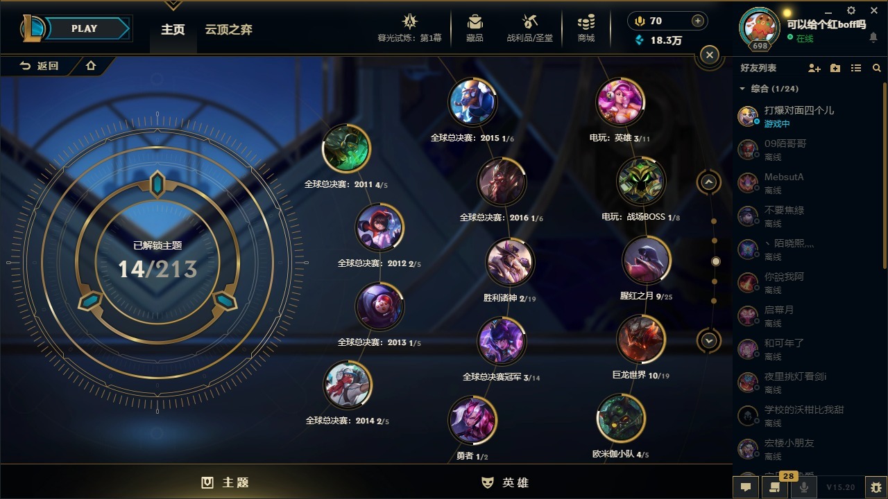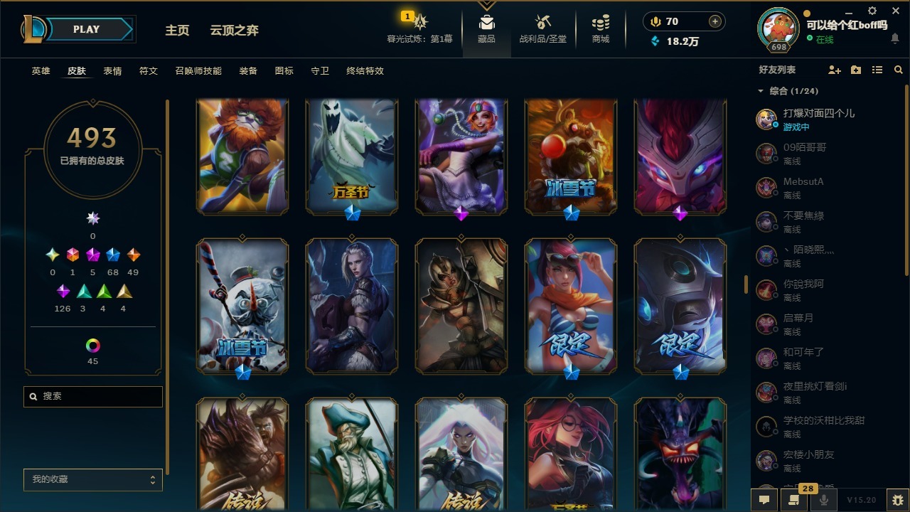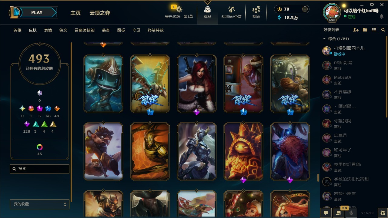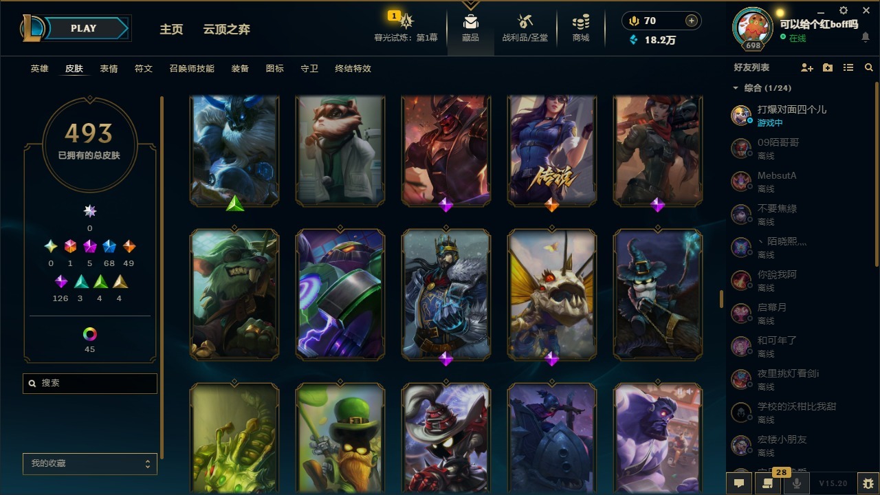 [14372612]1终极 5神话 69限定 52传说 126史诗 508皮肤 107炫彩 171英雄 可二次 可修改实名 【至臻】:至臻 玉剑传说 武剑仙 【海克斯】:海克斯 卡萨丁海克斯 雷克顿 【限定】:斩星魔剑 易创星之灵 璐璐养蜂人 辛吉德 【情人节限定】:甜心之翎 洛 【赛季限定皮】:胜利凤凰 艾尼维亚胜利之运 崔斯特 【冠军限定系列】:s1fnc 酒桶s1fnc 嘉文四世s1fnc 卡尔萨斯s1fnc 库奇s2 暗杀星 蒙多s2 暗杀星 努努s3 skt t1 婕拉s4 ssw 图奇s4 ssw 炼金s5 skt t1 滑板鞋s6 skt t1 娜美s7 ssg 纳尔 【冰雪节限定】:冰雪节 辛吉德持胡萝卜的雪人 易寒冬精灵 璐璐平安夜女神 娑娜圣诞开心鬼 提莫圣诞精灵 崔丝塔娜圣诞糖果棒 厄运小姐圣诞驯鹿 克格莫邪恶圣诞老人 维迦雪默丁格雪装 奈德丽英勇玩具兵 普朗克狂心冰王 图奇 【泳池派对】:泳池派对 蕾欧娜泳池派对 厄运小姐泳池派对 菲奥娜泳池派对 凯特琳 【万圣节限定】:鬼影森森 茂凯鬼影重重 魔腾魅惑女巫 迦娜魅惑女巫 莫甘娜南瓜头 费德提克无头骑士 赫卡里姆 【年限】:龙的传人 李青“你看见过我的熊猫吗?” 安妮神龙之翼 库奇神龙烈焰 金克丝南天之怒 沃里克北辰之威 内瑟斯王国机神玄武 盖伦福牛守护者 安妮福牛守护者 德莱厄斯 【周年】:3周年 厄运小姐7周年 泰隆10周年 安妮10周年 凤凰 【其他限定/神话皮】:外星装甲 库奇暗影 沃里克波比的巧克力工坊夺命美人 卡特琳娜防暴士兵 辛吉德钢铁之翼 艾尼维亚冠军掠夺者 卡兹克冠军之矛 卡莉丝塔冠军之血 希瓦娜警用试作体k-9 内瑟斯密林猎手 提莫送披萨的小姐姐 希维尔糖果使徒 费德提克野兽猎人 瑟庄妮野兽猎人 泰达米尔勇者 阿狸制胜金靴 李青