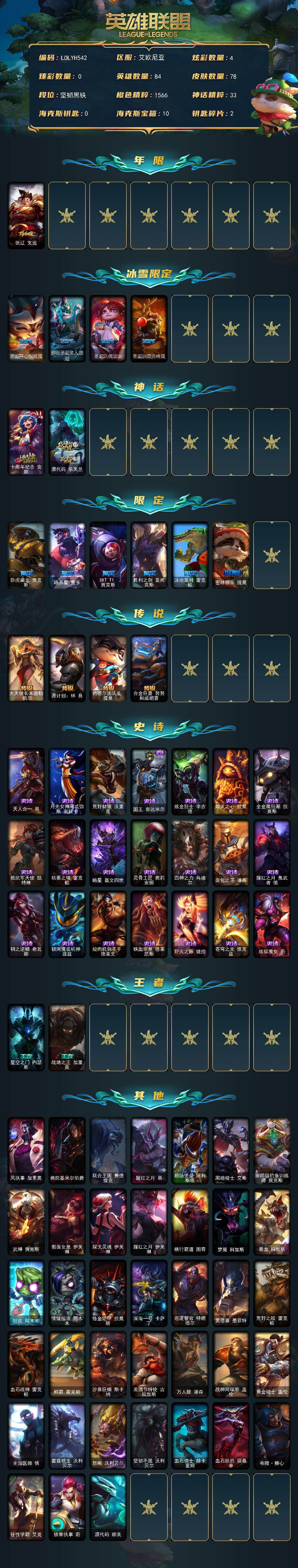 【lolyh542】84英雄/78皮肤/2神话/11限定/4炫彩/4传说/21史诗/未定级/鸡年盖伦/圣诞开心鬼提莫/邪恶圣诞老人维迦/圣诞玩偶波比/圣诞驯鹿克格莫/10周年安妮/源代码乐芙兰/卧虎藏龙贾克斯/s2暗杀星蒙多/s3sktt1贾克斯/胜利之剑剑魔/泳池派对雷克顿/密林猎手提莫/大天使长米迦勒凯尔/源计划林易/约德尔国队长提莫/合金巨兽努努和威朗普/天人合一易/月光女神阿忒弥斯索拉