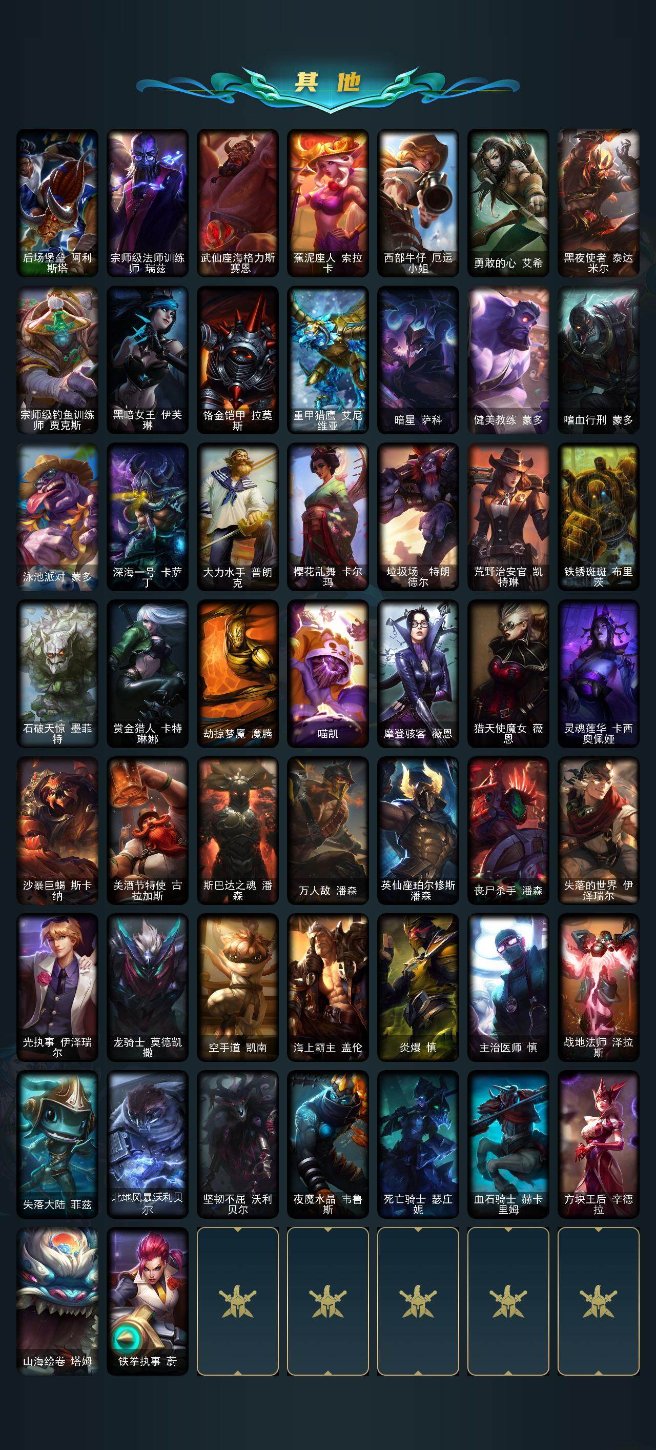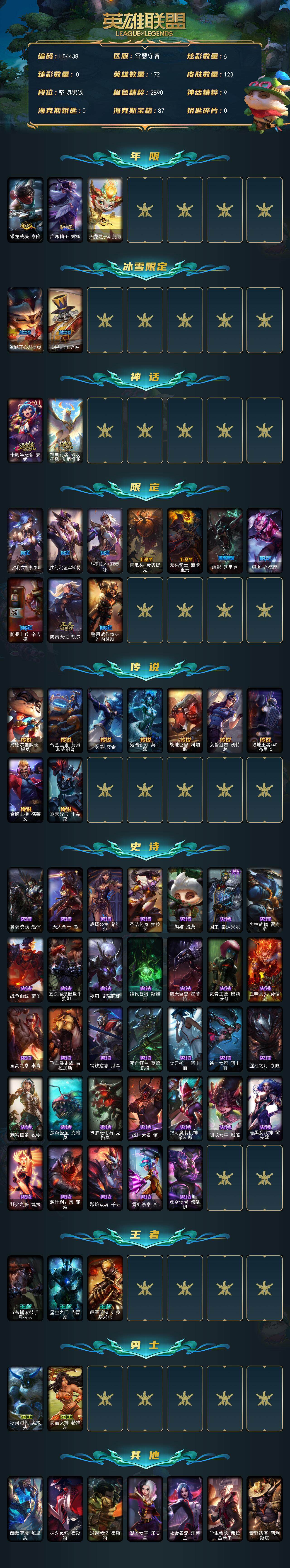 【ld4438】172英雄/123皮肤/2神话/15限定/6炫彩/9传说/33史诗/黑铁/银龙裁决泰隆/广寒仙子嫦娥/天龙之子斯莫德/圣诞开心鬼提莫/胡桃夹子萨科/十周年纪念安妮/神凰行者瑞羽圣凰艾尼维亚/胜利女神娑娜/胜利之运崔斯特/胜利女神菲奥娜/南瓜头费德提克/无头骑士赫卡里姆/暗影沃里克/勇者奈德丽/防暴士兵辛吉德/防暴天使凯尔/警用试作体k9内瑟斯/约德尔国队长提莫/合金巨兽努努和威朗普/女皇艾希/鬼魂新娘莫甘娜/战地巨兽科加斯/女警狙击凯特琳/陆地王者4wd布里茨/金牌主播德莱文/霸天异形卡兹克/翼骑统领赵信/天人合一易/战场公主希维尔/圣洁化身索拉卡/熊猫提莫/国王泰达米尔/少林武僧贾克斯/战争血统蒙多/五杀摇滚键盘手娑娜/夜刃艾瑞莉娅/绝代智将斯维因/霸天巨兽墨菲特/灵骨工匠奥莉安娜/三昧真火孙悟空/至高之拳李青/飞车暴走族古拉加斯/钢铁意志潘森/死亡领主莫德凯撒/实习护士阿卡丽/铁血女忍阿卡丽/腥红之月泰隆/刺客信条锐雯/深海怪鱼克格莫/侏罗纪化石克格莫/战国大名慎/银河魔装机神希瓦娜/驯龙女巫璐璐/暗黑女武神黛安娜/野火之藤婕拉/源计划风亚索/黯焰双魂千珏/霓虹杀拳蔚/虚空使者俄洛伊/五杀摇滚鼓手奥拉夫/星空之门内瑟斯/霹雳游侠弗拉基米尔/冰河时代奥拉夫/亮丽女神希维尔/幽蓝梦魇加里奥/探戈灵魂崔斯特/赌侠崔斯特/潮流女王乐芙兰/社会名流乐芙兰/学生会长弗拉基米尔/荒野镖客阿利斯塔/后场堡垒阿利斯塔/宗师级法师训练师瑞兹/武仙座海格力斯赛恩/蕉泥座人索拉卡/西部牛仔厄运小姐/勇敢的心艾希/黑夜使者泰达米尔/宗师级钓鱼训练师贾克斯/黑暗女王伊芙琳/铬金铠甲拉莫斯/重甲猎鹰艾尼维亚/暗星萨科/健美教练蒙多/嗜血行刑蒙多/泳池派对蒙多/深海一号卡萨丁/大力水手普朗克/樱花乱舞卡尔玛/垃圾场特朗德尔/荒野治安官凯特琳/铁锈斑斑布里茨/石破天惊墨菲特/赏金猎人卡特琳娜/劫掠梦魇魔腾/喵凯/摩登骇客薇恩/猎天使魔女薇恩/灵魂莲华卡西奥佩娅/沙暴巨蝎斯卡纳/美酒节特使古拉加斯/斯巴达之魂潘森/万人敌潘森/英仙座珀尔修斯潘森/丧尸杀手潘森/失落的世界伊泽瑞尔/光执事伊泽瑞尔/龙骑士莫德凯撒/空手道凯南/海上霸主盖伦/炎爆慎/主治医师慎/战地法师泽拉斯/失落大陆菲兹/北地风暴沃利贝尔/坚韧不屈沃利贝尔/夜魔水晶韦鲁斯/死亡骑士瑟庄妮/血石骑士赫卡里姆/方块王后辛德拉/山海绘卷塔姆/铁拳执事蔚