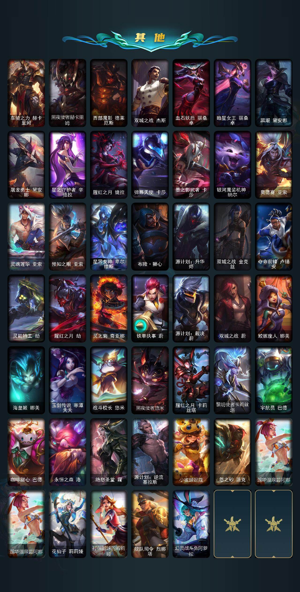 【ldc1384】172英雄/509皮肤/2终极/22神话/108限定/13臻彩/106炫彩/60传说/87史诗/青铜/双城之战2破碎者金克丝/至臻双城之战2指挥官凯特琳/至臻暗裔英雄嘉文四世/至臻烈焰美人薇恩/至臻玉剑传说武剑仙锐雯/至臻奥术师佐伊/至臻永恒星灵佐伊/至臻kda卡莎/至臻海之歌萨勒芬妮/至臻真实伤害亚索/至臻源计划阴劫/至臻神凰行者烈羽焰凰霞/至臻t1塞拉斯/无畏骑士瑟庄妮赤子初心/冠军之箭艾希凯旋圣装/玉净夜叉凯特琳炫金神机/冰霜之刃艾瑞莉娅炫金/冠军之血希瓦娜凯旋圣装/灵魂莲华阿狸春晓/战斗学院卡特琳娜盛典礼服/泳池派对辛德拉荔枝枝连击/泳池派对奥莉安娜优雅珠光鲸/可爱可爱粉红红布里茨/幻灵战斗队长厄运小姐勇气赞歌/龙的传人李青/银龙裁决泰隆/定海神珍孙悟空/神龙之翼库奇/神龙烈焰金克丝/紫金罗刹莫甘娜/玉净夜叉凯特琳/张辽文远/司马懿仲达/虎痴之拳蔚/北辰之威内瑟斯/纳财大帝塔姆/天龙之子卡莎/天龙之子斯莫德/海克斯科技嘉文四世/摄魂使者薇恩/恐惧新星德莱厄斯/觅心猎手薇恩/水晶玫瑰阿克尚/幸福女神乐芙兰/冰雪风暴希维尔/圣诞开心鬼提莫/圣诞精灵崔丝塔娜/圣诞狂欢努努和威朗普/圣诞糖果棒厄运小姐/圣诞狂欢基兰/阿木木“主人不要我了”/胡桃夹子萨科/平安夜女神娑娜/英勇玩具兵普朗克/邪恶圣诞老人维迦/冬季仙境奥莉安娜/雪装奈德丽/圣诞玩偶波比/圣诞驯鹿克格莫/魄罗骑士瑟庄妮/冰雪节辛吉德/冰雪女神辛德拉/北极星守护者赫卡里姆/北极星神黛安娜/大元素使拉克丝/灵魂守卫乌迪尔/十周年纪念安妮/十五周年纪念希维尔/水晶圣骑艾希/新卧虎藏龙贾克斯/熊猫娃娃拉克丝/创世黑夜使者亚索/西部魔影炽天使永恩/至臻玉剑传说武剑仙/钢铁军团拉克丝/卧虎藏龙贾克斯/舞会公主安妮/斩星魔剑易/冠军典狱长锤石/冠军之矛卡莉丝塔/冠军之刃锐雯2016/冠军之隐劫/冠军之志瑞兹/fnatic古拉加斯/fnatic迦娜/fnatic嘉文四世/fnatic卡尔萨斯/fnatic库奇/暗杀星奥莉安娜/暗杀星蒙多/暗杀星努努和威朗普/暗杀星慎/sktt1贾克斯/sktt1劫/sktt1李青/ssw辛吉德/ssw图奇/ssw泰隆/ssw雷恩加尔/ssw锤石/sktt1阿利斯塔/sktt1卡莉丝塔/sktt1瑞兹/sktt1伊莉丝/sktt1辛德拉/ssg伊泽瑞尔/ig艾瑞莉娅/ig卡莎/dwg凯南/drx艾希/电玩勇者锐雯/玉剑传说舞剑仙/女帝厄运小姐/暗裔英雄盖伦/胜利之剑亚托克斯/胜利呛神卢锡安/南瓜头费德提克/死亡誓约卡特琳娜/鬼影森森茂凯/泳池派对厄运小姐/泳池派对格雷福斯/泳池派对凯特琳/机械迷城加里奥/蓝色忧郁崔斯特/密林猎手提莫/女猎手希维尔/暗影沃里克/野兽猎人德莱文/波比的巧克力工坊/电玩战魂赫卡里姆/都铎王朝图奇/玉剑传说舞龙卫/钢铁之翼艾尼维亚/红桃杰克崔斯特/征服者贾克斯/海之歌泽丽/警用试作体k9内瑟斯/双城之战2指挥官凯特琳/双城之战2教授黑默丁格/双城之战2救世主维克托/双城之战2幸存者杰斯/双城之战2孤勇者艾克/铁哥们儿奥拉夫/地狱之门卫士加里奥/魔幻卡牌崔斯特/战地机甲厄加特/大天使长米迦勒凯尔/源计划林易/恶魔男爵瑞兹/霸天零式赛恩/提莫约德尔人的一大步/欧米伽小队幽灵特工/烈焰雄心崔丝塔娜/驯龙炮手崔丝塔娜/合金巨兽努努和威朗普/幻灵战斗队长厄运小姐/源计划联合艾希/恶魔之刃泰达米尔/魔女伊芙琳/双重冰晶艾尼维亚/黯晶凤凰艾尼维亚/冰霜之刃艾瑞莉娅/女主播迦娜/红色男爵库奇/未来战士凯特琳/苹果机器人布里茨/上古战魂魔腾/源计划净化薇恩/银河魔装机神兰博/第三类接触黑默丁格/炼狱魔犬内瑟斯/死亡骑士盖伦/西部魔影大小姐蕾欧娜/黎明使者锐雯/绝息圣堂锐雯/星之守护者拉克丝/枯萎之壤泽拉斯/黯黑魔龙希瓦娜/冰霜亚龙希瓦娜/星之守护者阿狸/灵魂莲华阿狸/符文战熊沃利贝尔/苍穹之光韦鲁斯/宇航员诺提勒斯/女校长菲奥娜/泳池派对吉格斯/霸天异形卡兹克/神王德莱厄斯/机神德莱厄斯/蔷薇绅士杰斯/青花瓷奥瑞利安索尔/奥德赛凯隐/心之钢凯隐/星之守护者卡莎/黑夜使者亚索/星之守护者金克丝/西部魔影卢锡安/天煞劫/海魔至尊亚托克斯/魔女娜美/星之守护者霞/源计划毁灭派克/冰霜烈焰安妮/绞肉机角斗士赵信/摄魂男爵弗拉基米尔/铁钩船长费德提克/圣光审判凯尔/天人合一易/侍魂易/战场公主希维尔/钢铁之心希维尔/月光女神阿忒弥斯索拉卡/源代码索拉卡/兔宝宝提莫/熊猫提莫/火箭达人崔丝塔娜/法国皇室厄运小姐/紫晶射手艾希/殇之机器人阿木木/熔火之心拉莫斯/贵族血统萨科/掠星魔刃卡萨丁/夜行义贼艾瑞莉娅/海克斯科技迦娜/恐惧新星普朗克/血石诅咒塔里克/穿着正装的恶魔维迦/绝代智将斯维因/抵抗军天使凯特琳/黑曜石守护者墨菲特/霸天巨兽墨菲特/无畏号墨菲特/前线指挥官卡特琳娜/蓝焰梦魔魔腾/枯萎之壤雷克顿/龙骑统帅嘉文四世/暗星嘉文四世/死亡绽放伊莉丝/腥红之月伊莉丝/灵骨工匠奥莉安娜/暗星奥莉安娜/v字仇杀者布兰德/防弹武僧李青/至高之拳李青/战地机甲斯卡纳/生化博士黑默丁格/四神之力乌迪尔/军神战甲波比/血色之锤波比/飞车暴走族古拉加斯/死亡领主莫德凯撒/银色之牙阿卡丽/腥红之月凯南/铁甲雄心盖伦/孤高游侠盖伦/腥红之月鬼武者慎/战国大名慎/odst地狱伞兵拉克丝/钢之逆鳞希瓦娜/虚空海灵菲兹/银河魔装机神菲兹/铁血猎人雷恩加尔/暗黑武士雷恩加尔/暗星韦鲁斯/驯龙女巫璐璐/沙之守护卡兹克/死