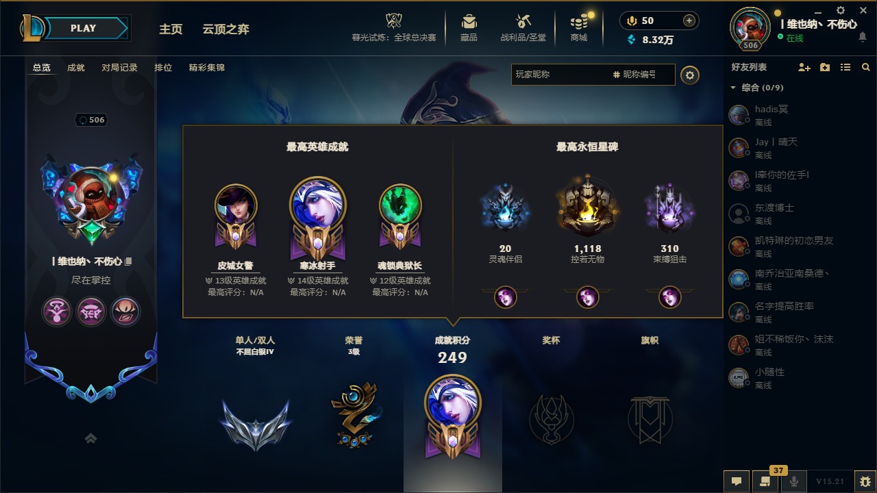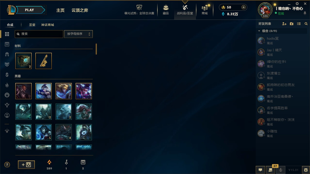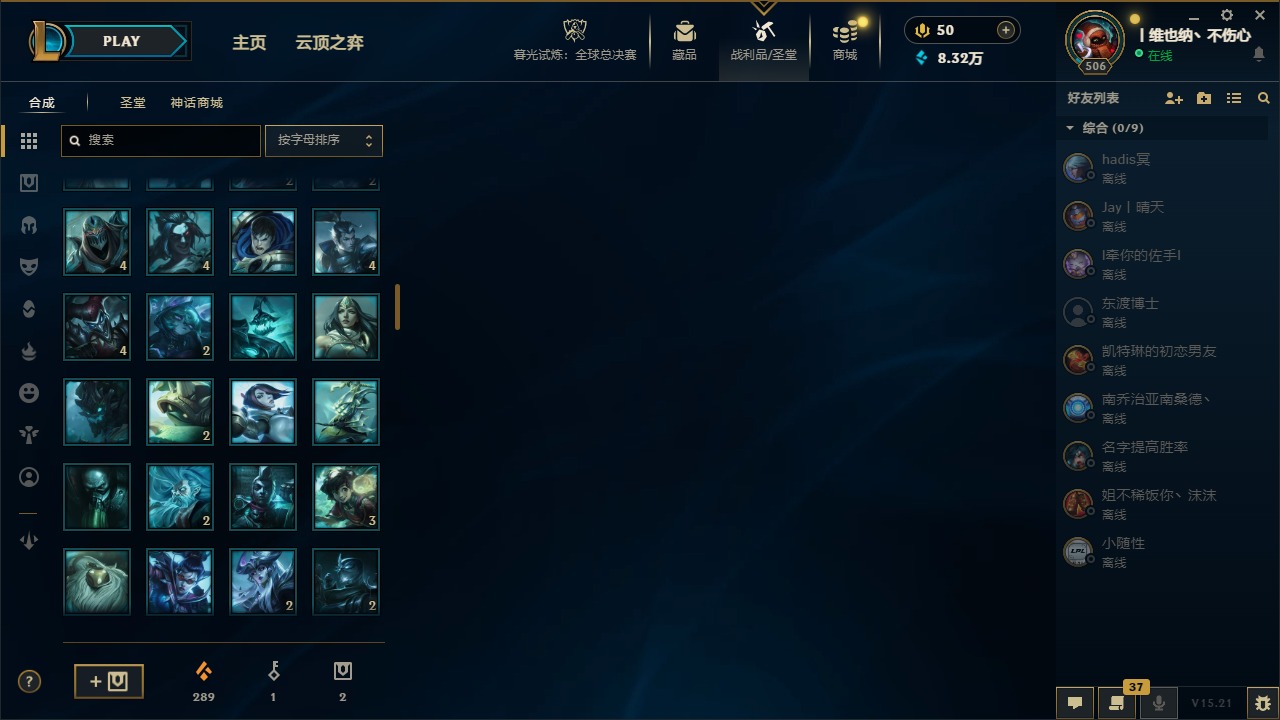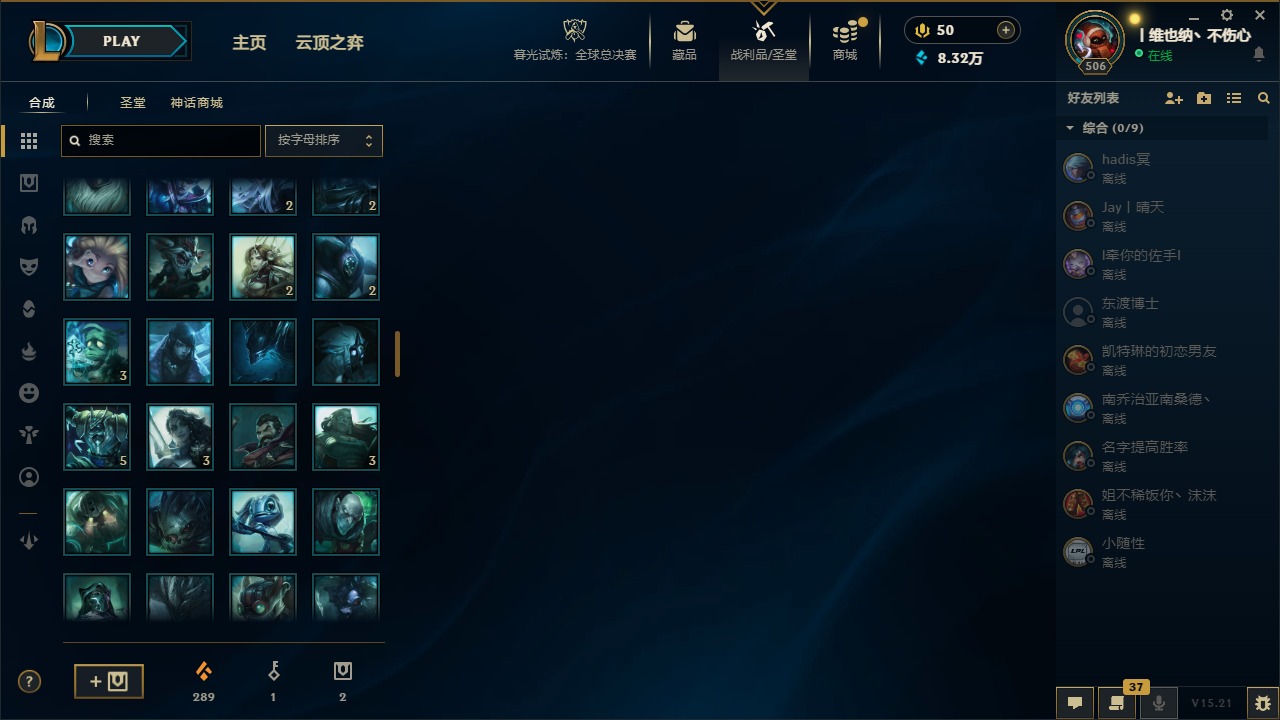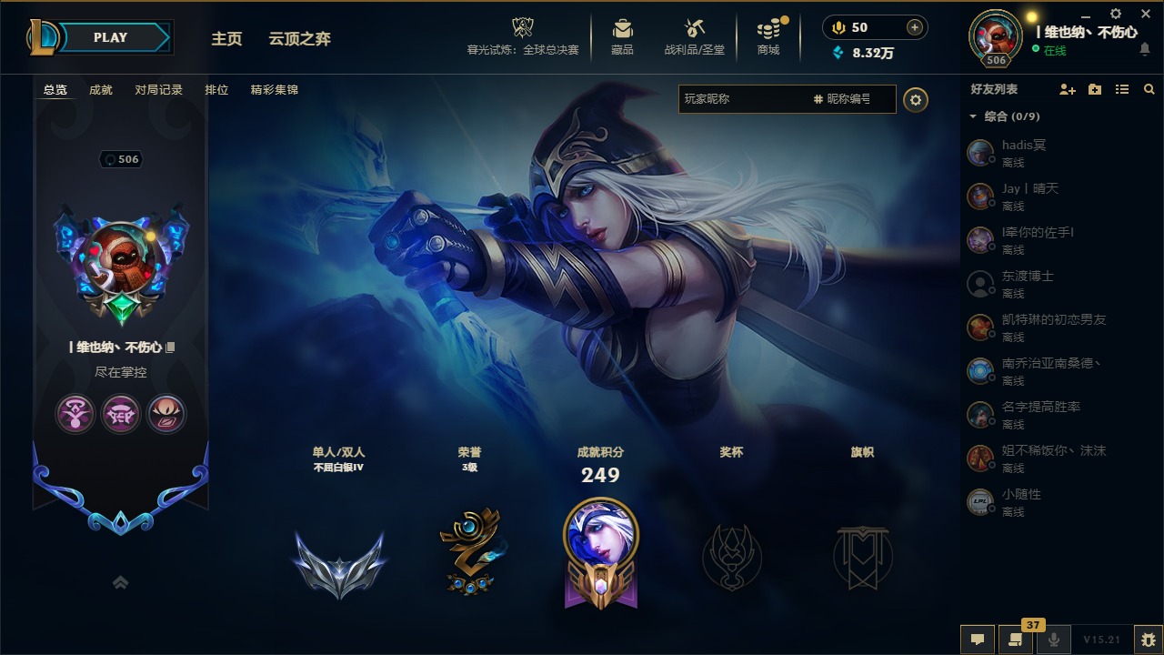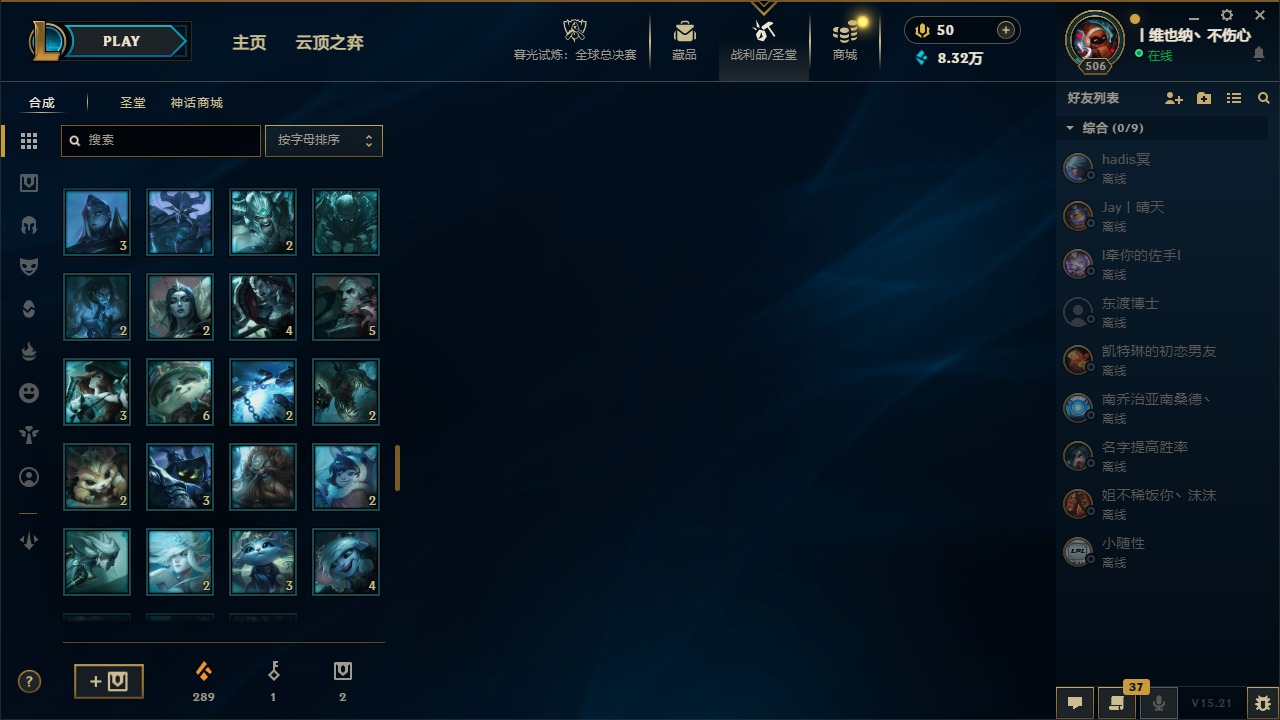 [14399379]5神话 38限定 27传说 63史诗 253皮肤 22炫彩 171英雄 可二次 可修改实名 【海克斯】:海克斯 阿利斯塔 【赛季限定皮】:胜利女神-菲奥娜胜利女神 希维尔胜利之树 茂凯胜利呛神 格雷福斯胜利女神 奥莉安娜胜利之剑 亚托克斯胜利呛神 卢锡安胜利机器人