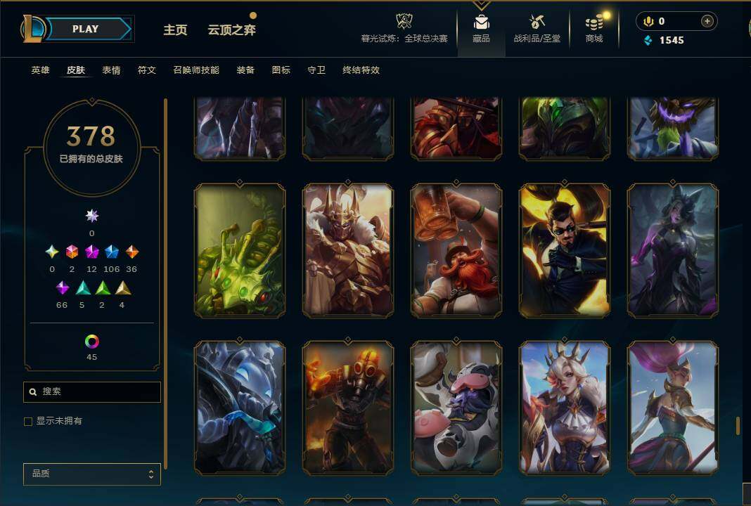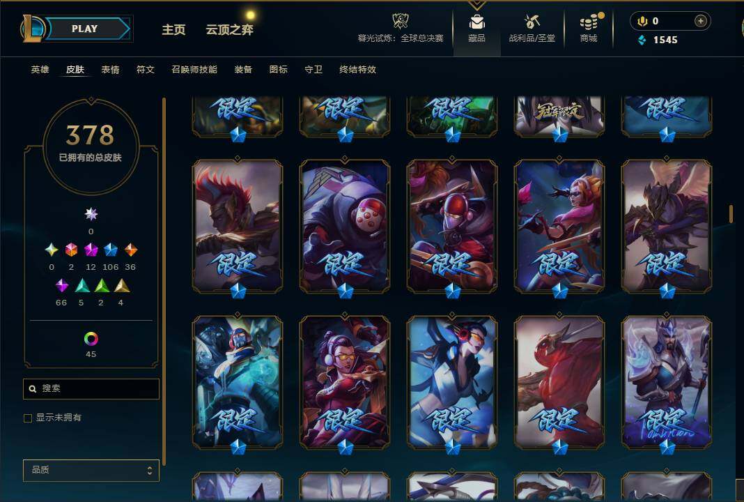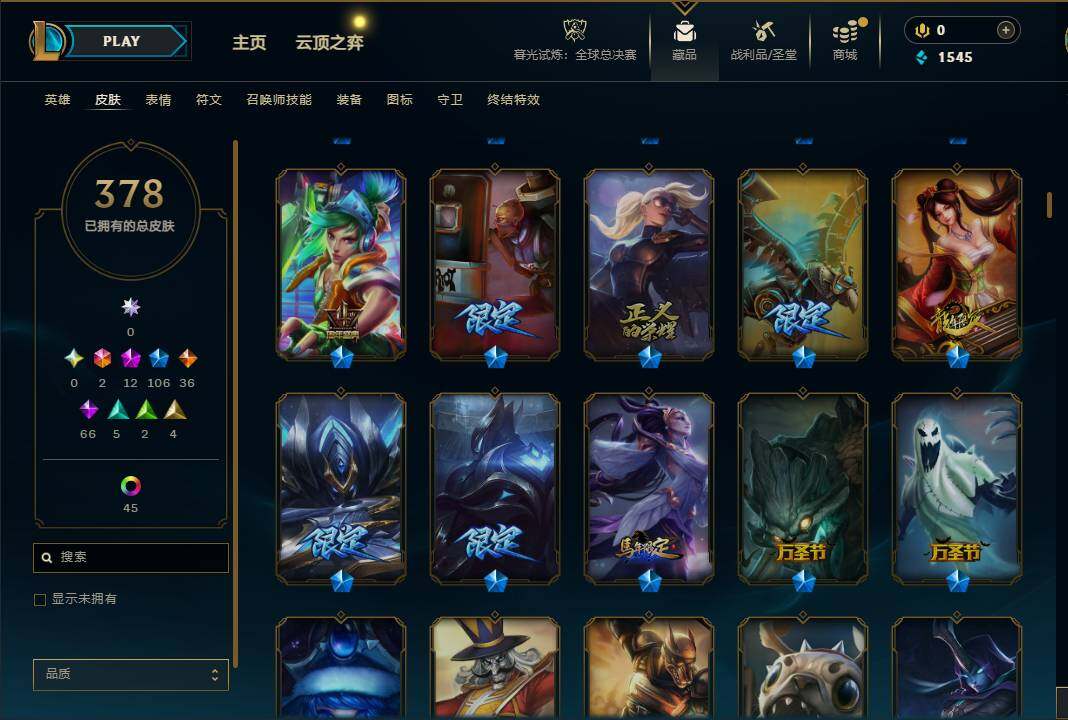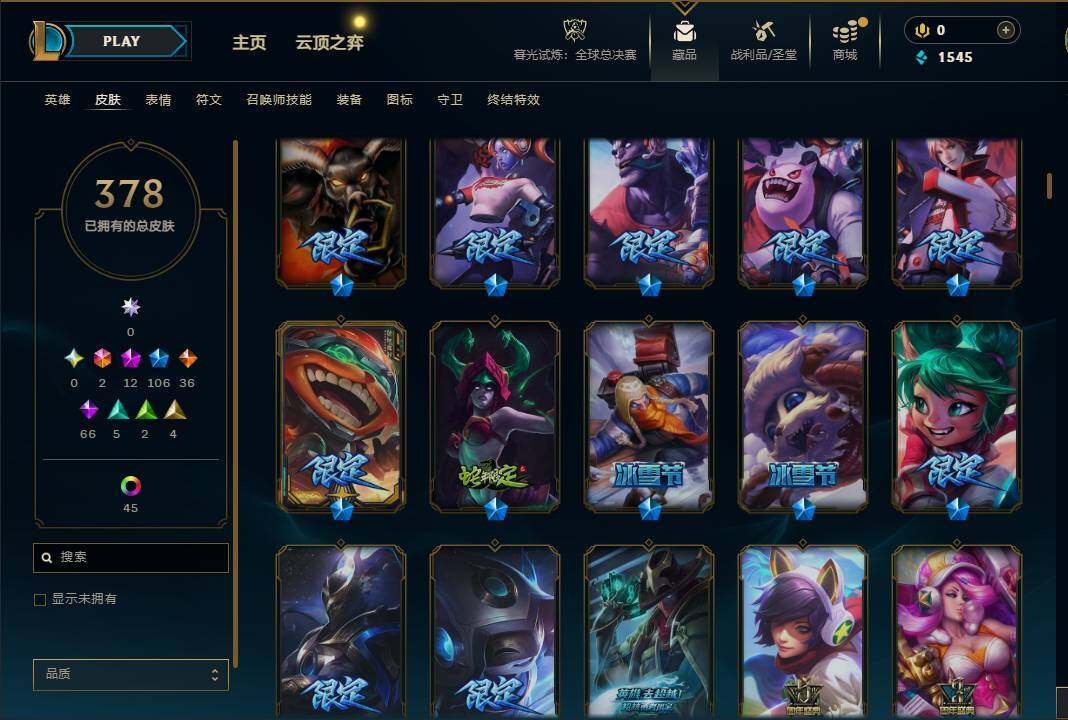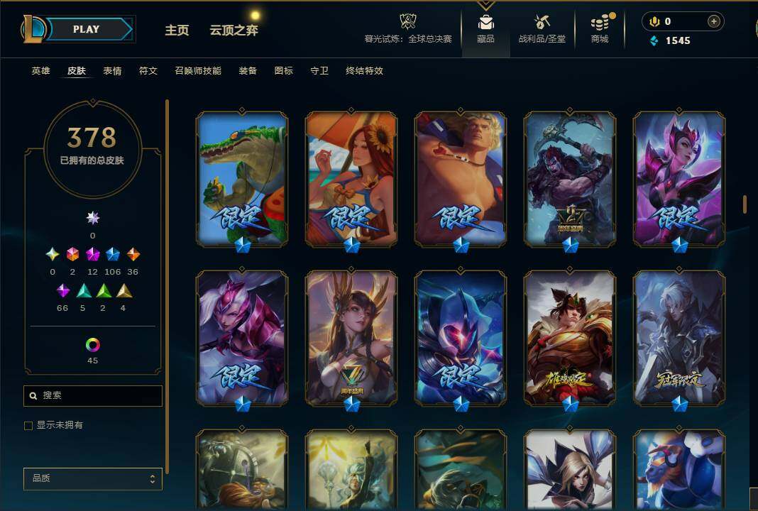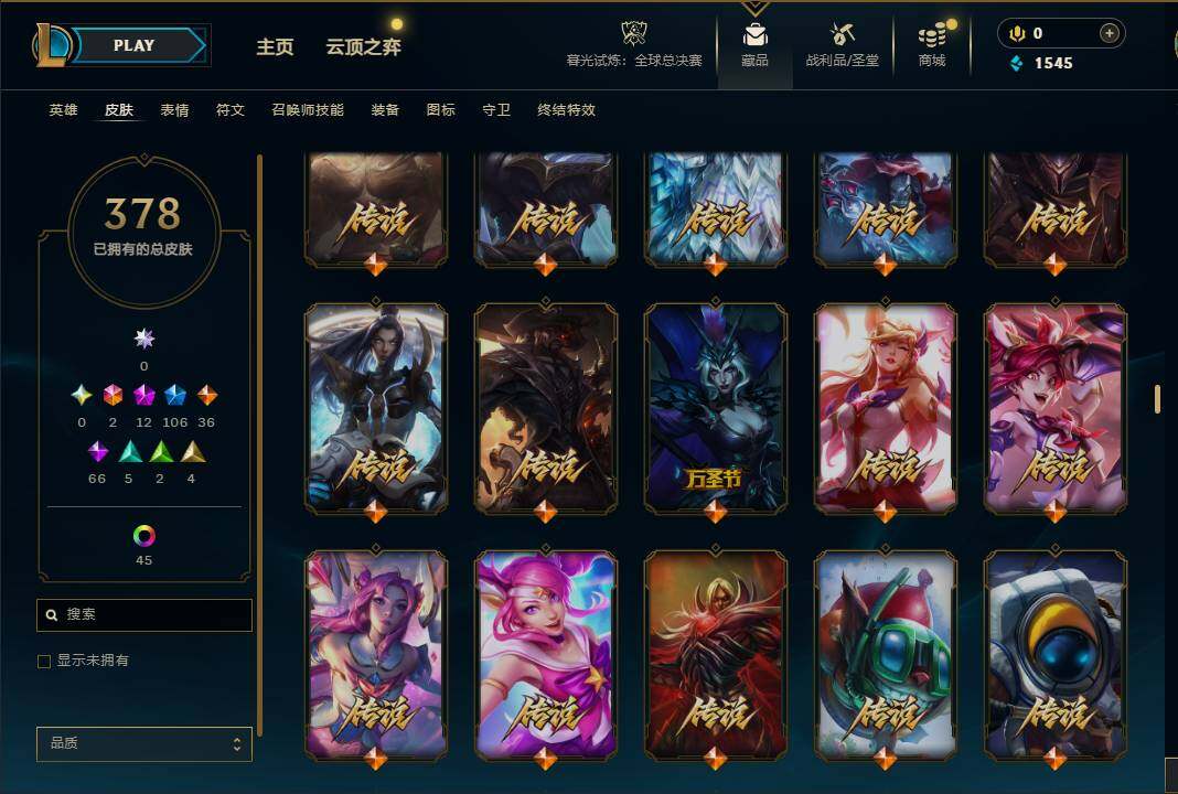 【lsa1237】153英雄/378皮肤/2终极/12神话/106限定/6臻彩/45炫彩/36传说/66史诗/白银账号等级:159/至臻 狼神英灵 斯维因/至臻黑夜使者李青/至臻幻灵狮心蕾欧娜/至臻海之歌萨勒芬妮/至臻 魔域梦魇 泽丽/至臻幻灵战斗猫金克丝/至臻 drx 亚托克斯/天龙之子 卡莎 飞龙乘云/无畏骑士瑟庄妮赤子初心/星之守护者阿卡丽热情之光/魔女 阿卡丽 虚荣/净雪之月莫甘娜冬虹