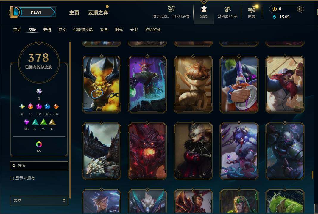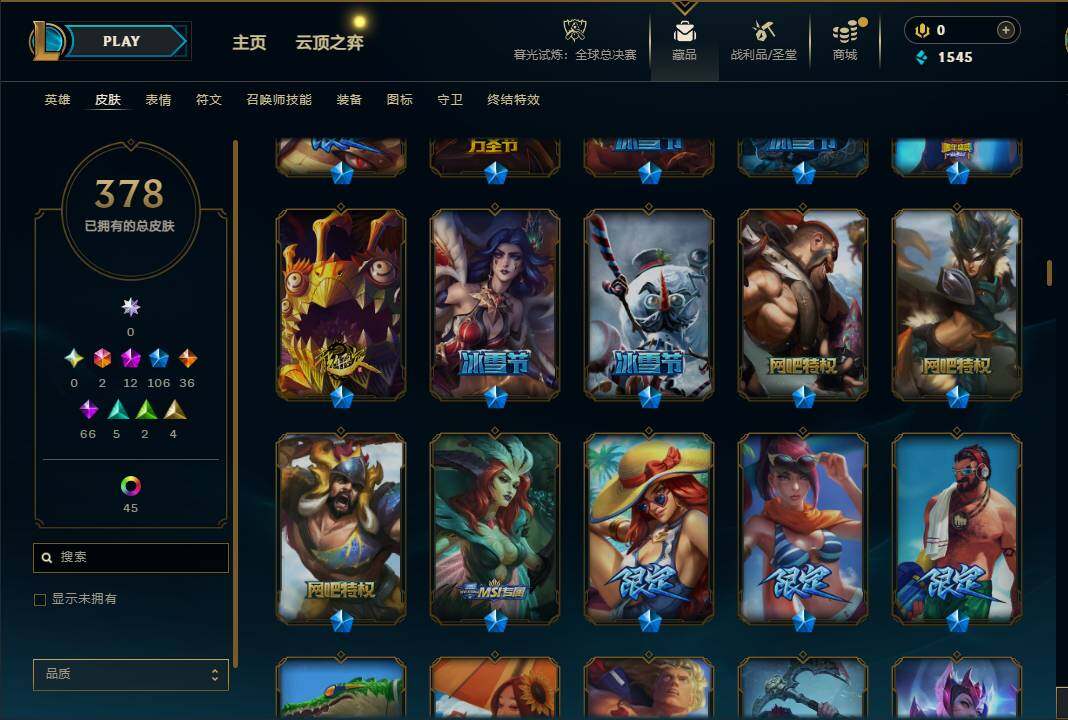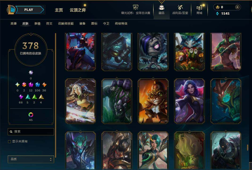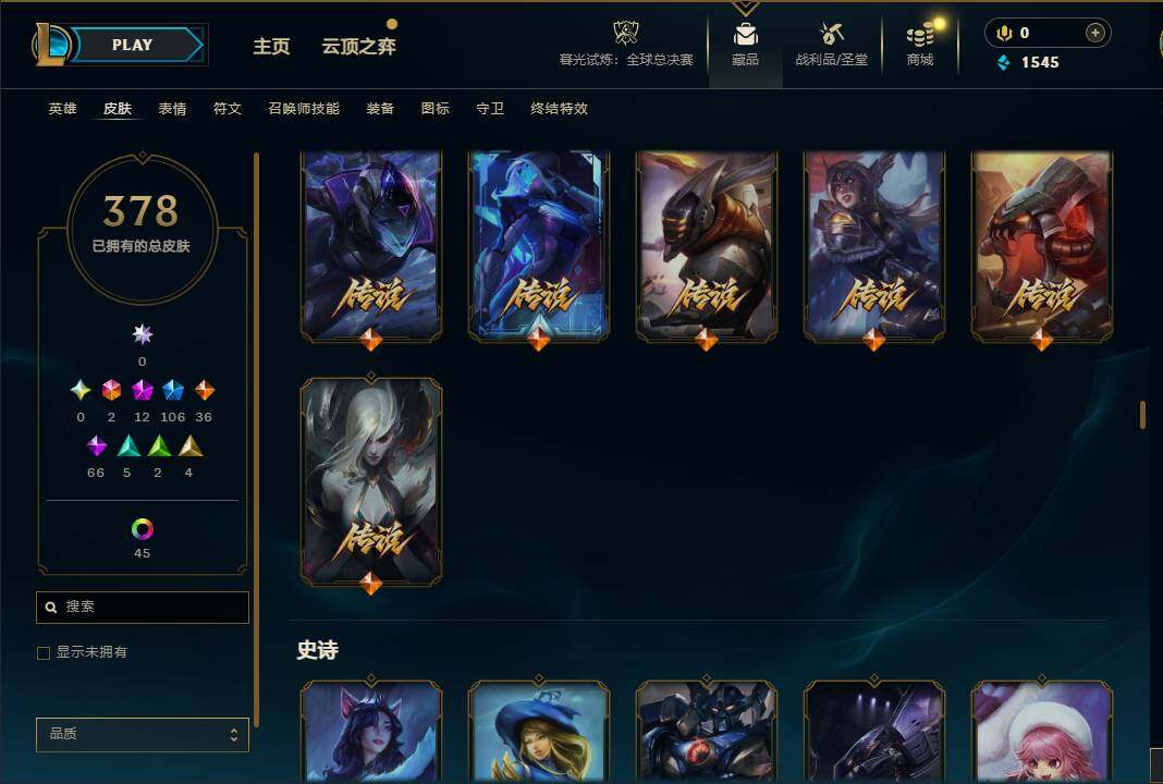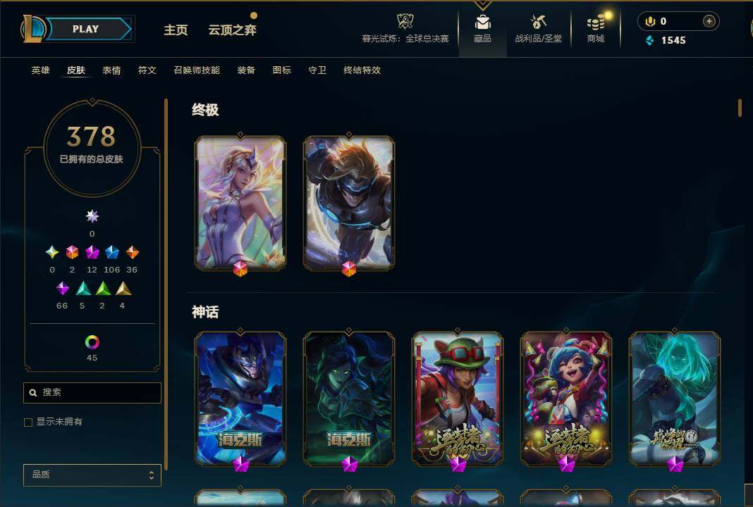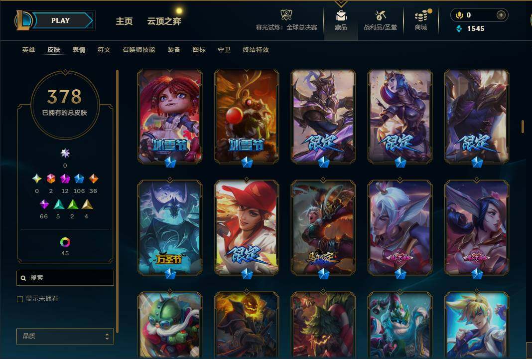 【lsa1237】153英雄/378皮肤/2终极/12神话/106限定/6臻彩/45炫彩/36传说/66史诗/白银账号等级:159/至臻 狼神英灵 斯维因/至臻黑夜使者李青/至臻幻灵狮心蕾欧娜/至臻海之歌萨勒芬妮/至臻 魔域梦魇 泽丽/至臻幻灵战斗猫金克丝/至臻 drx 亚托克斯/天龙之子 卡莎 飞龙乘云/无畏骑士瑟庄妮赤子初心/星之守护者阿卡丽热情之光/魔女 阿卡丽 虚荣/净雪之月莫甘娜冬虹