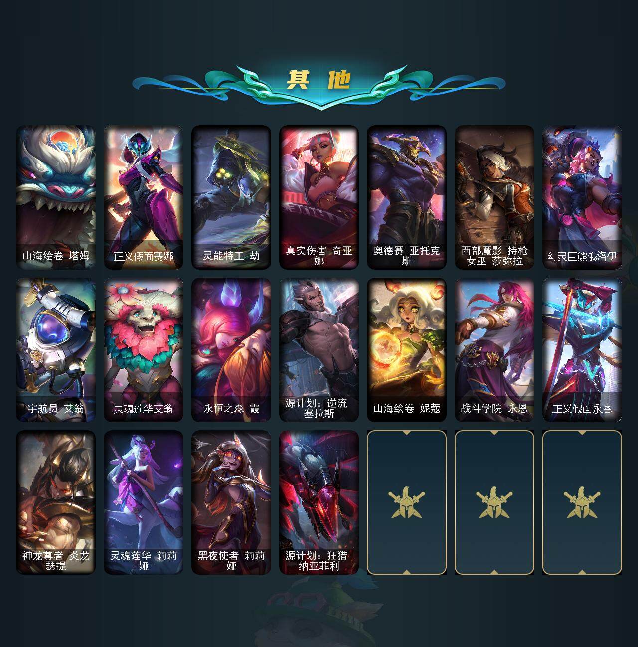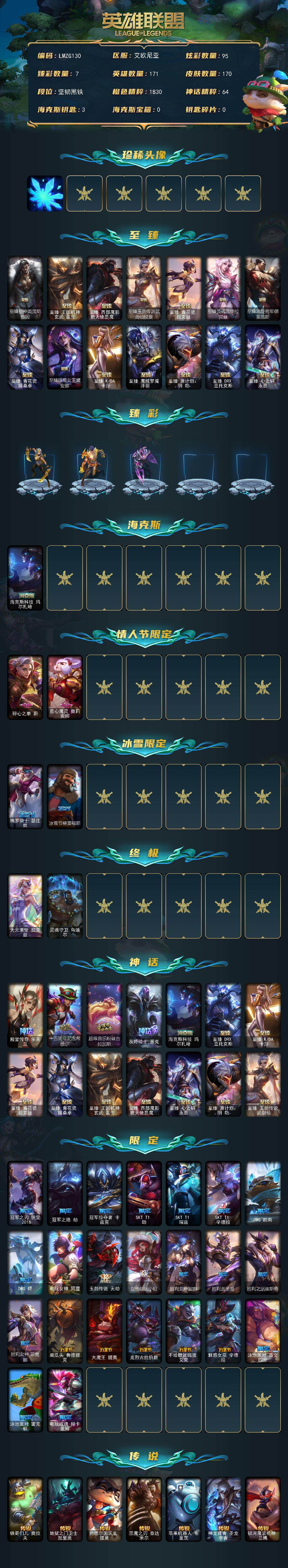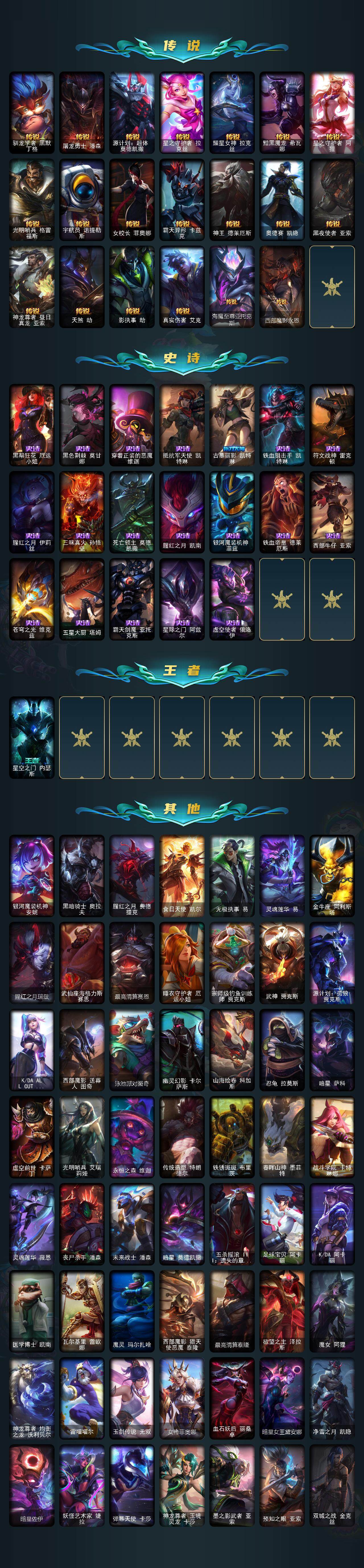 【lmzg130】171英雄/170皮肤/2终极/19神话/28限定/7臻彩/95炫彩/27传说/19史诗/未定级/雪花头像/至臻狼神英灵斯维因/至臻王国机神玄武盖伦/至臻西部魔影猎天使恶魔泰隆/至臻玉剑传说武剑仙锐雯/至臻青花瓷拉克丝/至臻灵魂莲华拉克丝/至臻凯旋将军德莱厄斯/至臻青花瓷丽桑卓/至臻暗星女王黛安娜/至臻kda卡莎/至臻魔域梦魇泽丽/至臻源计划阴劫/至臻drx亚托克斯/至臻心之钢永恩/闭月之颜貂蝉炫金莲华/神龙尊者圣龙李青龙腾云起/天煞劫恒星游历者/幻灵战斗蝠薇恩梦幻强袭/殿堂传奇乐芙兰登神/魔女阿卡丽虚荣/预知之眼亚索不怠/海克斯科技玛尔扎哈/碎心之拳蔚/觅心魔灵奥莉安娜/魄罗骑士瑟庄妮/冰雪节格雷福斯/大元素使拉克丝/灵魂守卫乌迪尔/殿堂传奇乐芙兰/十五周年纪念希维尔/超级音乐粉丝古拉加斯/灰烬骑士派克/至臻玉剑传说武剑仙/冠军之刃锐雯2016/冠军之隐劫/冠军掠夺者卡兹克/sktt1劫/sktt1瑞兹/sktt1辛德拉/dwg凯南/dwg烬/电玩女神阿狸/玉剑传说无劫/女帝厄运小姐/胜利女神娑娜/胜利剑圣易/胜利之运崔斯特/胜利女神菲奥娜/南瓜头费德提克/大魔王提莫/克烈古拉伯爵/不给糖就捣蛋艾克/魅惑女巫辛德拉/泳池派对嘉文四世/泳池派对雷克顿/电玩战魂赫卡里姆/双城之战2微光实验室辛吉德/铁哥们儿奥拉夫/地狱之门卫士加里奥/约德尔国队长提莫/恶魔之刃泰达米尔/苹果机器人布里茨/神龙尊者圣龙李青/银河魔装机神兰博/驯龙学者黑默丁格/屠龙勇士潘森/源计划超体莫德凯撒/星之守护者拉克丝/耀星女神拉克丝/黯黑魔龙希瓦娜/星之守护者阿狸/光明哨兵格雷福斯/宇航员诺提勒斯/女校长菲奥娜/霸天异形卡兹克/神王德莱厄斯/奥德赛凯隐/黑夜使者亚索/神龙尊者昼日真龙亚索/天煞劫/影执事劫/真实伤害艾克/海魔至尊亚托克斯/西部魔影永恩/黑帮狂花厄运小姐/黑色荆棘莫甘娜/穿着正装的恶魔维迦/抵抗军天使凯特琳/古墓丽影凯特琳/铁血狙击手凯特琳/符文战神雷克顿/腥红之月伊莉丝/三昧真火孙悟空/死亡领主莫德凯撒/腥红之月凯南/银河魔装机神菲兹/铁血帝皇德莱厄斯/西部牛仔亚索/苍穹之光维克兹/五星大厨塔姆/霸天剑魔亚托克斯/星际之门阿兹尔/虚空使者俄洛伊/星空之门内瑟斯/银河魔装机神安妮/黑暗骑士奥拉夫/腥红之月费德提克/食日天使凯尔/无极执事易/灵魂莲华易/金牛座阿利斯塔/腥红之月瑞兹/武仙座海格力斯赛恩/最高清算赛恩/睡衣守护者厄运小姐/宗师级钓鱼训练师贾克斯/武神贾克斯/源计划孤狼贾克斯/kdaallout伊芙琳/西部魔影送葬人图奇/泳池派对图奇/幽灵幻影卡尔萨斯/山海绘卷科加斯/忍龟拉莫斯/暗星萨科/虚空前世卡萨丁/光明哨兵艾瑞莉娅/永恒之森维迦/传统造型特朗德尔/铁锈斑斑布里茨/春晖山神墨菲特/战斗学院卡特琳娜/灵魂莲华薇恩/丧尸杀手潘森/未来战士潘森/暗星莫德凯撒/五杀摇滚iii遗失的章节约里克/足球宝贝阿卡丽/kda阿卡丽/医学博士凯南/瓦尔基里蕾欧娜/魔灵玛尔扎哈/西部魔影猎天使恶魔泰隆/最高清算泰隆/欲望之主泽拉斯/魔女阿狸/神龙尊者均衡之龙沃利贝尔/雷喵喵尔/玉剑传说无双/女帝菲奥娜/血石妖后丽桑卓/暗星女王黛安娜/净雪之月凯隐/暗星佐伊/妖怪艺术家婕拉/弹幕天使卡莎/神龙尊者玉境灵龙卡莎/墨之影武者亚索/预知之眼亚索/双城之战金克丝/山海绘卷塔姆/正义假面赛娜/灵能特工劫/真实伤害奇亚娜/奥德赛亚托克斯/西部魔影持呛女巫莎弥拉/幻灵巨熊俄洛伊/宇航员艾翁/灵魂莲华艾翁/永恒之森霞/源计划逆流塞拉斯/山海绘卷妮蔻/战斗学院永恩/正义假面永恩/神龙尊者炎龙瑟提/灵魂莲华莉莉娅/黑夜使者莉莉娅/源计划狂猎纳亚菲利