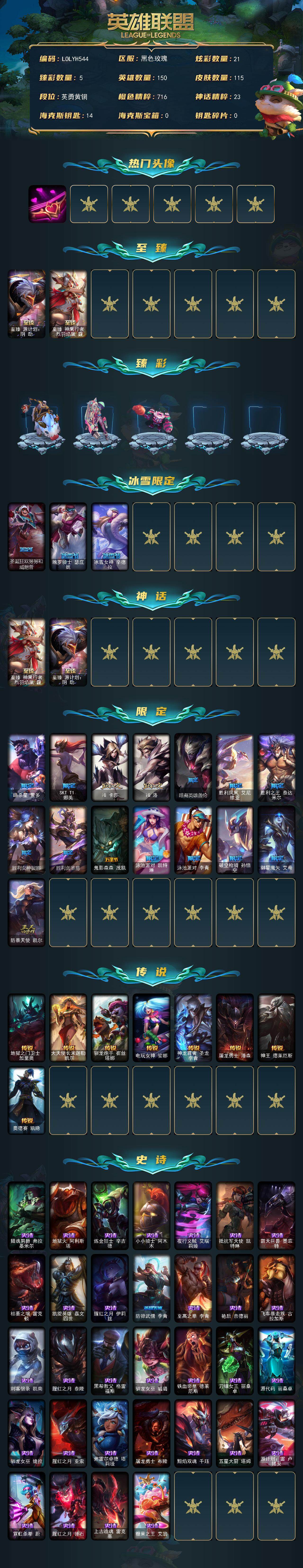 【lolyh544】150英雄/115皮肤/2神话/18限定/5臻彩/21炫彩/8传说/32史诗/青铜/爱情之歌头像/至臻源计划阴劫/至臻神凰行者烈羽焰凰霞/无畏骑士瑟庄妮赤子初心/幻灵战斗猫金克丝梦幻强袭/灵魂莲华亚索霜见之时/可爱可爱粉红红布里茨/魔女阿卡丽虚荣/圣诞狂欢努努和威朗普/魄罗骑士瑟庄妮/冰雪女神辛德拉/暗杀星蒙多/sktt1娜美/ig卡莎/ig洛/暗裔英雄盖伦/胜利凤凰艾尼维亚/胜利之王泰达米尔/胜利女神娑娜/胜利剑圣易/鬼影森森茂凯/泳池派对凯特琳/泳池派对李青/破空呛骑孙悟空/御星魔矢艾希/防暴天使凯尔/地狱之门卫士加里奥/大天使长米迦勒凯尔/驯龙炮手崔丝塔娜/电玩女神娑娜/神龙尊者圣龙李青/屠龙勇士潘森/神王德莱厄斯/奥德赛凯隐/摄魂男爵弗拉基米尔/地狱火阿利斯塔/炼金狂士辛吉德/小小骑士阿木木/夜行义贼艾瑞莉娅/抵抗军天使凯特琳/霸天巨兽墨菲特/枯萎之壤雷克顿/凯旋英雄嘉文四世/腥红之月伊莉丝/防弹武僧李青/至高之拳李青/艳后奈德丽/飞车暴走族古拉加斯/刺客信条凯南/腥红之月泰隆/黑帮教父格雷福斯/驯龙女巫璐璐/铁血帝皇德莱厄斯/刀锋女王丽桑卓/源代码丽桑卓/驯龙女巫婕拉/腥红之月亚索/弗雷尔卓德塔莉垭/屠龙勇士布隆/黯焰双魂千珏/五星大厨塔姆/源计划雷卢锡安/霓虹杀拳蔚/腥红之月锤石/上古战魂雷克塞/糖果之王艾翁/咖啡甜心安妮/探戈灵魂崔斯特/潮流女王乐芙兰/暗影易/无极执事易/部落精神瑞兹/美国大叔瑞兹/宗师级法师训练师瑞兹/原野伐木工赛恩/奥德赛希维尔/脏兮兮努努和威朗普/玉剑传说苍鸾/冲浪高手辛吉德/黑暗女王伊芙琳/北风冻原图奇/地下都市梦魇萨科/莲花之令艾瑞莉娅/我怒角维迦/电玩女神凯特琳/劫掠梦魇魔腾/恶咒亡魂魔腾/宇航员茂凯/战斗学院孙悟空/这货不是乌迪尔/乡村农夫古拉加斯/灵能特工伊泽瑞尔/未来战士锐雯/未来战士慎/战斗学院拉克丝/太空律动闪耀灯球拉克丝/高丽风情阿狸/北地风暴沃利贝尔/夜魔水晶韦鲁斯/猎户星神韦鲁斯/失落大陆诺提勒斯/太空律动节奏幻师璐璐/创世之神赫卡里姆/西部魔影赫卡里姆/战斗学院杰斯/青花瓷丽桑卓/黑夜使者凯隐/弹幕天使卡莎/泳池派对扎克/源计划疯狂金克丝/双城之战金克丝/福牛守护者佛耶戈/真实伤害赛娜/任性学霸艾克/铁拳执事蔚/狂鲨亚托克斯/腥红之月亚托克斯/双鱼星神娜美/太空律动音浪狂舞莎弥拉/绝息圣堂洛/冬境仙灵妮蔻