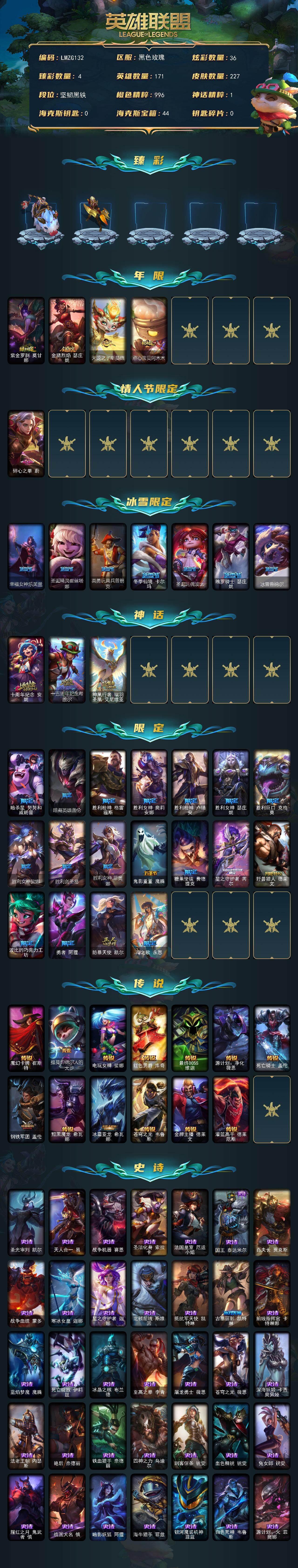 【lmzg132】171英雄/227皮肤/3神话/30限定/4臻彩/36炫彩/13传说/48史诗/未定级/无畏骑士瑟庄妮赤子初心/征服者韦鲁斯炫金/冠军之刃锐雯2016凯旋圣装/花仙子崔丝塔娜蓝闪/紫金罗刹莫甘娜/金猪烈焰瑟庄妮/天龙之子斯莫德/点心宝贝阿木木/碎心之拳蔚/幸福女神乐芙兰/圣诞精灵崔丝塔娜/英勇玩具兵普朗克/冬季仙境卡尔玛/圣诞玩偶波比/魄罗骑士瑟庄妮/冰雪兽纳尔/十周年纪念安妮/十五周年纪念希维尔/神凰行者瑞羽圣凰艾尼维亚/暗杀星努努和威朗普/暗裔英雄盖伦/胜利呛神格雷福斯/胜利女神奥莉安娜/胜利呛神卢锡安/胜利女神瑟庄妮/胜利巨口克格莫/胜利女神娑娜/胜利剑圣易/胜利女神菲奥娜/鬼影重重魔腾/糖果使徒费德提克/星之守护者芮尔/野兽猎人德莱文/波比的巧克力工坊/勇者阿狸/防暴天使凯尔/海之歌永恩/魔幻卡牌崔斯特/提莫约德尔人的一大步/电玩女神娑娜/红色男爵库奇/最终boss维迦/源计划净化薇恩/死亡骑士盖伦/钢铁军团盖伦/黯黑魔龙希瓦娜/冰霜亚龙希瓦娜/苍穹之光韦鲁斯/金牌主播德莱文/灌篮高手德莱厄斯/圣光审判凯尔/天人合一易/战争机器赛恩/圣洁化身索拉卡/法国皇室厄运小姐/国王泰达米尔/百夫长贾克斯/战争血统蒙多/寒冰女皇迦娜/星之守护者迦娜/北领前线斯维因/抵抗军天使凯特琳/古墓丽影凯特琳/前线指挥官卡特琳娜/蓝焰梦魔魔腾/死亡绽放伊莉丝/冰晶之核布兰德/至高之拳李青/屠龙勇士薇恩/苍穹之光薇恩/深海妖姬卡西奥佩娅/法老王朝内瑟斯/艳后奈德丽/铁血猎手奈德丽/四神之力乌迪尔/刺客信条锐雯/血色精锐锐雯/兔女郎锐雯/腥红之月鬼武者慎/战国大名慎/暗影妖狐阿狸/海牛猎手菲兹/银河魔装机神菲兹/白色死神韦鲁斯/源计划火菲奥娜/刀锋女王丽桑卓/血羽凤凰奎因/仲裁圣女辛德拉/野火之藤婕拉/西部牛仔亚索/苍穹之光维克兹/弗雷尔卓德塔莉垭/黑帮狂花金克丝/职业杀手卢锡安/时之砂艾克/霸天剑魔亚托克斯/锦鲤娜美/虚空使者俄洛伊/星空之门内瑟斯/霹雳游侠弗拉基米尔/亮丽女神希维尔/烈焰猛士奥拉夫/法老阿木木/魔导绅士维迦/嗜血狂暴沃里克/小红帽安妮/风执事加里奥/逆转裁判崔斯特/奥德赛崔斯特/深渊巨蟹厄加特/电锯狂人厄加特/潮流女王乐芙兰/弗拉基米尔伯爵/弗拉基米尔侯爵/学生会长弗拉基米尔/联合王国费德提克/荒野幽灵费德提克/暗影易/原野伐木工赛恩/森林女神索拉卡/约德尔海贼团崔丝塔娜/冻原猎手沃里克/黑暗骑士沃里克/荒野女警厄运小姐/破败军团厄运小姐/极地女神艾希/勇敢的心艾希/勇敢的心泰达米尔/冰球队员贾克斯/武神贾克斯/遗迹守护者基兰/时间机器基兰/机械污染辛吉德/黑暗女王伊芙琳/假面女皇伊芙琳/探戈灵魂伊芙琳/惊天魔盗伊芙琳/腥红之月伊芙琳/首领图奇/北风冻原图奇/黑金诱惑图奇/幽灵幻影卡尔萨斯/自由女神卡尔萨斯/五杀摇滚主唱卡尔萨斯/狂欢阿木木/情绪摇滚阿木木/王子不是我阿木木/铬金铠甲拉莫斯/沙之守护拉莫斯/宇航员拉莫斯/重甲猎鹰艾尼维亚/小丑工作坊萨科/健美教练蒙多/缪斯女神娑娜/五杀摇滚iii遗失的章节娑娜/深海一号卡萨丁/莲花之令艾瑞莉娅/源计划正义艾瑞莉娅/暴风女神迦娜/玉剑传说风仙子/幽灵船长普朗克/雪橇速滑库奇/日冕女神卡尔玛/樱花乱舞卡尔玛/冰壶选手维迦/欧米伽小队天雷爆破手/垃圾场特朗德尔/铁锈斑斑布里茨/珊瑚礁墨菲特/赏金猎人卡特琳娜/荒野之咬雷克顿/血石战神雷克顿/屠龙勇士嘉文四世/黑色玫瑰假面舞会伊莉丝/恶灵布偶奥莉安娜/传统僧侣李青/摩登骇客薇恩/猎天使魔女薇恩/热带丛林兰博/蛇发女妖卡西奥佩娅/远土之灵斯卡纳/单身贵族内瑟斯/创世之神内瑟斯/黎明使者奈德丽/美酒节特使古拉加斯/斯巴达之魂潘森/英仙座珀尔修斯潘森/冒险精神伊泽瑞尔/失落的世界伊泽瑞尔/电玩勇者伊泽瑞尔/梅花国王莫德凯撒/暗星莫德凯撒/五杀摇滚贝斯手约里克/五杀摇滚iii遗失的章节约里克/奈落之炎阿卡丽/银色闪电凯南/空手道凯南/医学博士凯南/战神阿瑞斯盖伦/瓦尔基里蕾欧娜/暗影王子玛尔扎哈/刺客信条泰隆/西部魔影猎天使恶魔泰隆/未来战士锐雯/灵魂莲华锐雯/索诺拉沙虫克格莫/炎爆慎/战斗学院拉克丝/高丽风情阿狸/风纪委员阿狸/魔女阿狸/杀出重围格雷福斯/苔原猎手菲兹/兔宝宝菲兹/怒熊沃利贝尔/夜魔水晶韦鲁斯/觅心射手韦鲁斯/失落大陆诺提勒斯/死亡骑士瑟庄妮/传统造型瑟庄妮/少校吉格斯/糖果大战吉格斯/灵魂收割者德莱文/西部魔影德莱厄斯/战斗学院杰斯/神龙尊者玉境灵龙卡莎/银河魔装机神纳尔/这货不是维克兹/福牛守护者佛耶戈/德玛西亚警官卢锡安/深渊恐惧锤石