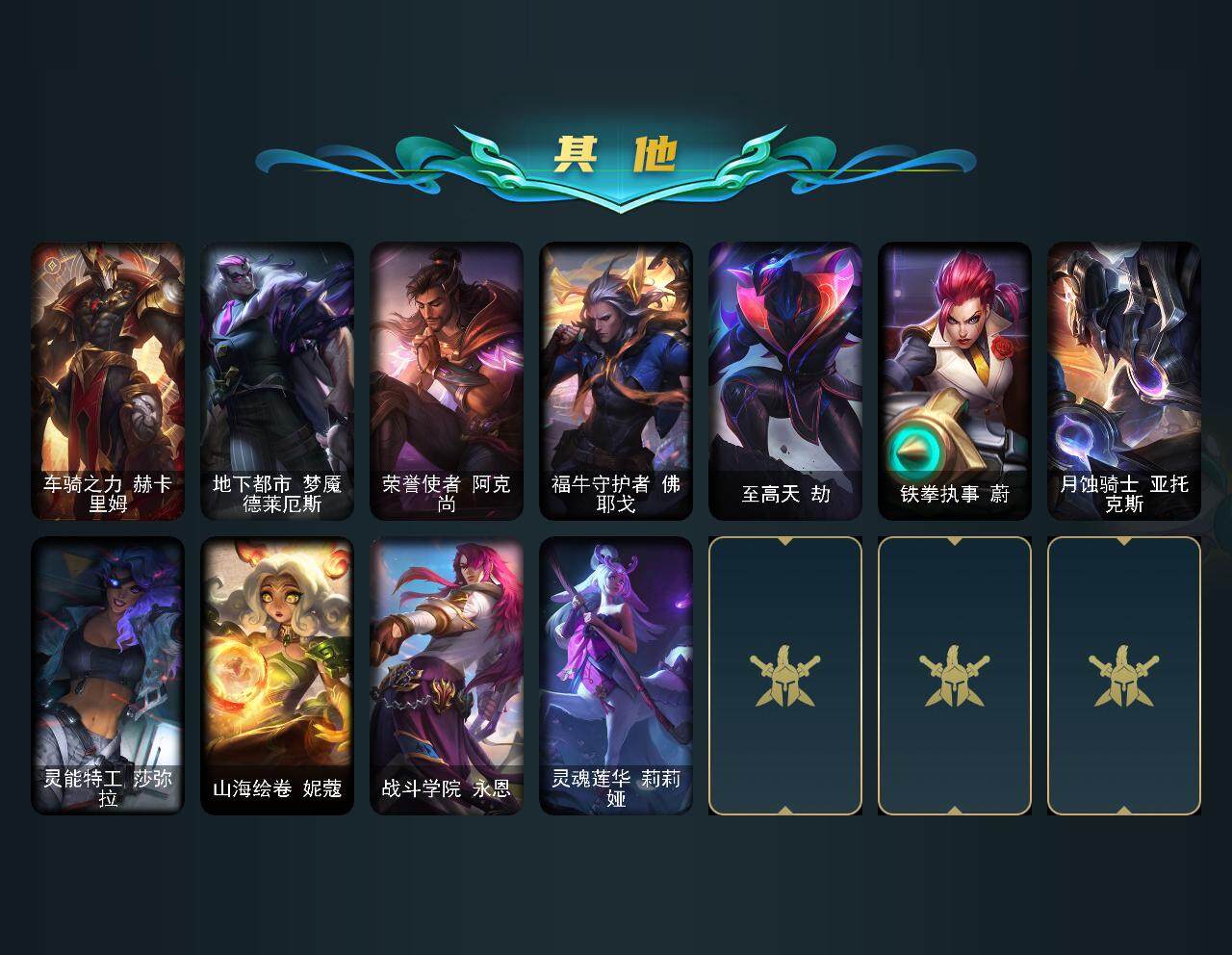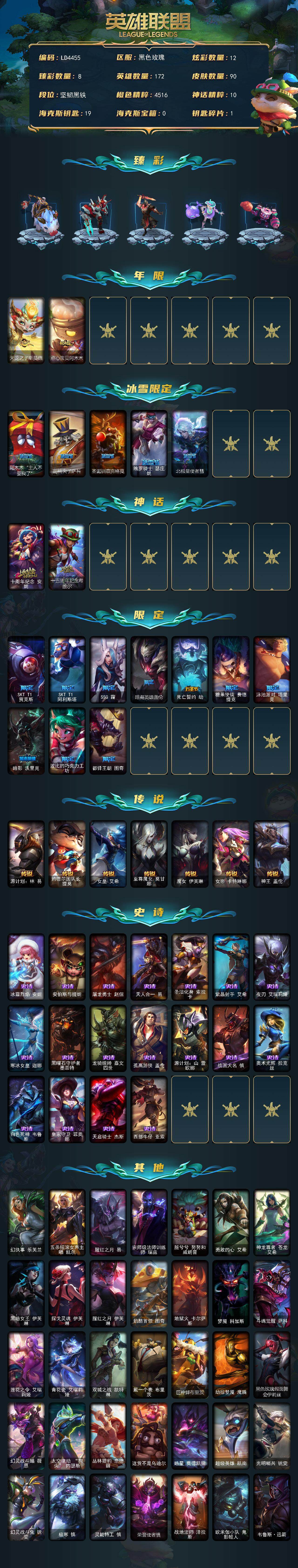 【ld4455】172英雄/90皮肤/2神话/17限定/8臻彩/12炫彩/7传说/18史诗/未定级/无畏骑士瑟庄妮赤子初心/霸天战士雷恩加尔星啸天火/星之守护者娑娜未来之光/灰烬守护者慎余烬觉醒/幻灵战斗蝠薇恩梦幻强袭/泳池派对奥莉安娜优雅珠光鲸/可爱可爱粉红红布里茨/红莲之刃锐雯/天龙之子斯莫德/点心宝贝阿木木/阿木木“主人不要我了”/胡桃夹子萨科/圣诞驯鹿克格莫/魄罗骑士瑟庄妮/北极星使者彗/十周年纪念安妮/十五周年纪念希维尔/sktt1贾克斯/sktt1阿利斯塔/ssg霞/暗裔英雄盖伦/死亡誓约劫/糖果使徒费德提克/泳池派对塔里克/暗影沃里克/波比的巧克力工坊/都铎王朝图奇/源计划林易/约德尔国队长提莫/女皇艾希/至尊魔女莫甘娜/魔女伊芙琳/女帝卡特琳娜/神王盖伦/冰霜烈焰安妮/安伯斯与提妮/屠龙勇士赵信/天人合一易/圣洁化身索拉卡/紫晶射手艾希/夜刃艾瑞莉娅/寒冰女皇迦娜/黑曜石守护者墨菲特/龙骑统帅嘉文四世/孤高游侠盖伦/源计划山蕾欧娜/战国大名慎/奥术光辉拉克丝/白色死神韦鲁斯/皇家守卫菲奥娜/天启骑士杰斯/西部牛仔亚索/幻执事乐芙兰/五杀摇滚女声主唱凯尔/腥红之月易/宗师级法师训练师瑞兹/脏兮兮努努和威朗普/勇敢的心艾希/神龙尊者苍龙艾希/黑暗女王伊芙琳/探戈灵魂伊芙琳/腥红之月伊芙琳/奶酪首领图奇/地狱火卡尔萨斯/梦魇科加斯/斗魂觉醒萨科/莲花之令艾瑞莉娅/青花瓷艾瑞莉娅/双城之战凯特琳/戴一个表布里茨/巨神蜂布里茨/劫掠梦魇魔腾/黑色玫瑰假面舞会伊莉丝/幻灵战斗蝠薇恩/太空律动狗头内瑟斯/丛林猎豹奈德丽/这货不是乌迪尔/暗星莫德凯撒/超级英雄凯南/光明哨兵锐雯/幻灵战斗兔锐雯/极寒慎/灵能特工慎/荣誉使者慎/战地法师泽拉斯/欧米伽小队鬼影蛙人/韦鲁斯迅箭/车骑之力赫卡里姆/地下都市梦魇德莱厄斯/荣誉使者阿克尚/福牛守护者佛耶戈/至高天劫/铁拳执事蔚/月蚀骑士亚托克斯/灵能特工莎弥拉/山海绘卷妮蔻/战斗学院永恩/灵魂莲华莉莉娅