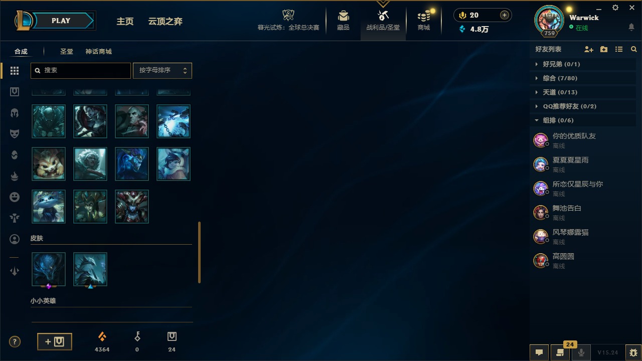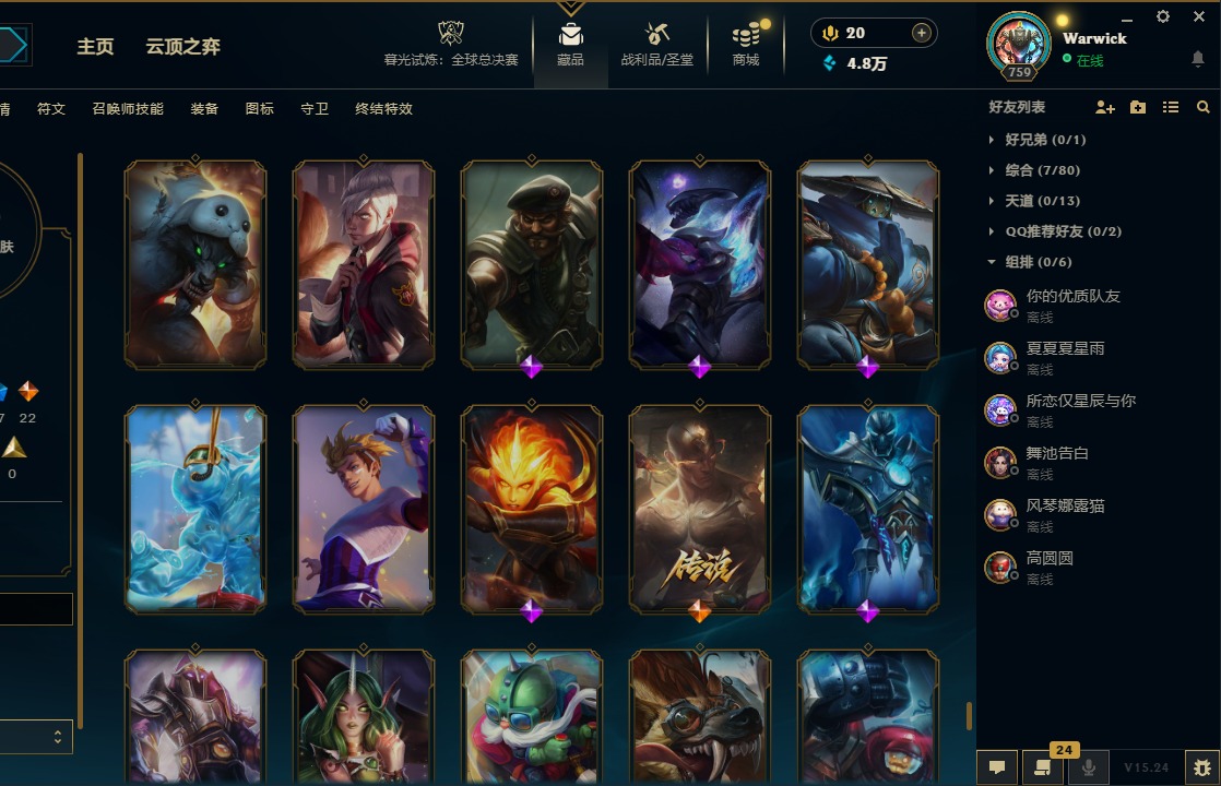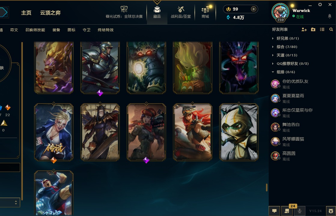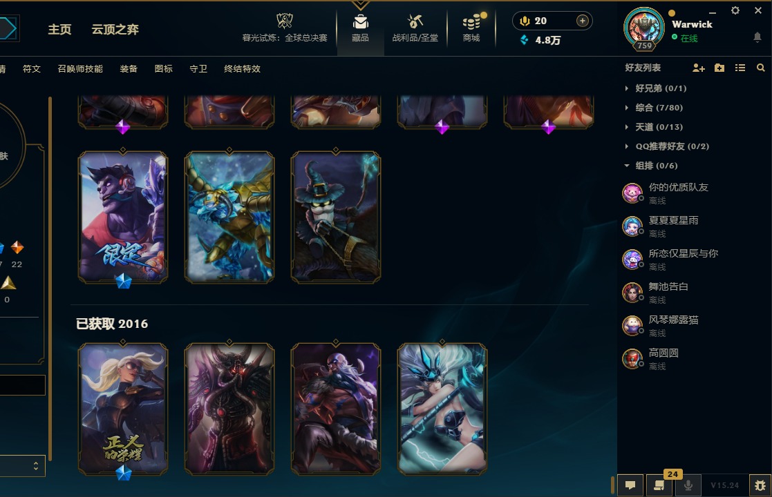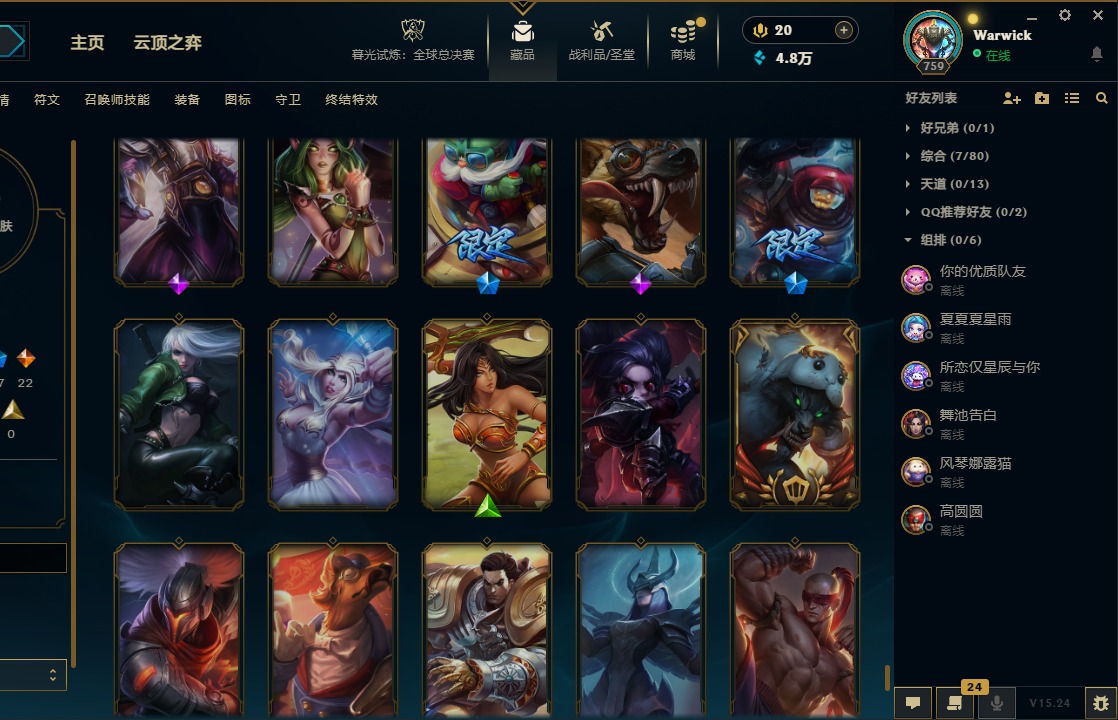 [14435045]5神话 27限定 22传说 48史诗 265皮肤 194炫彩 可二次 可修改实名 【海克斯】:海克斯 雷克顿 【限定】:双城之战2 范德尔 沃里克 【赛季限定皮】:胜利凤凰 艾尼维亚胜利之运 崔斯特胜利剑圣 易胜利女神 娑娜胜利巨口 克格莫胜利之王 泰达米尔胜利女神 瑟庄妮 【冠军限定系列】:s2 暗杀星 蒙多s2 暗杀星 努努 【冰雪节限定】:魄罗骑士 瑟庄妮圣诞开心鬼 提莫雪默丁格北极星使者 沃里克 【万圣节限定】:无头骑士 赫卡里姆 【年限】:点心宝贝 阿木木“你看见过我的熊猫吗?” 安妮王国机神白虎 贾克斯 【周年】:10周年 安妮10周年 凤凰 【其他限定/神话皮】:外星装甲 库奇十五周年纪念 希维尔暗裔英雄 盖伦源代码 乐芙兰防暴天使 凯尔暗影 沃里克都铎王朝 图奇防暴机器人 布里茨密林猎手 提莫御星魔矢 艾希制胜金靴 李青
