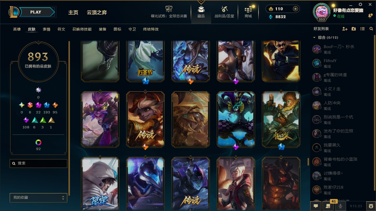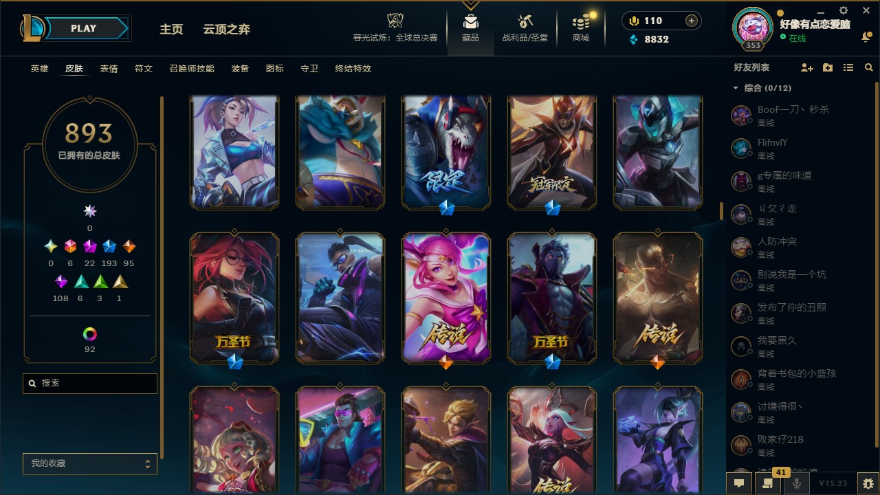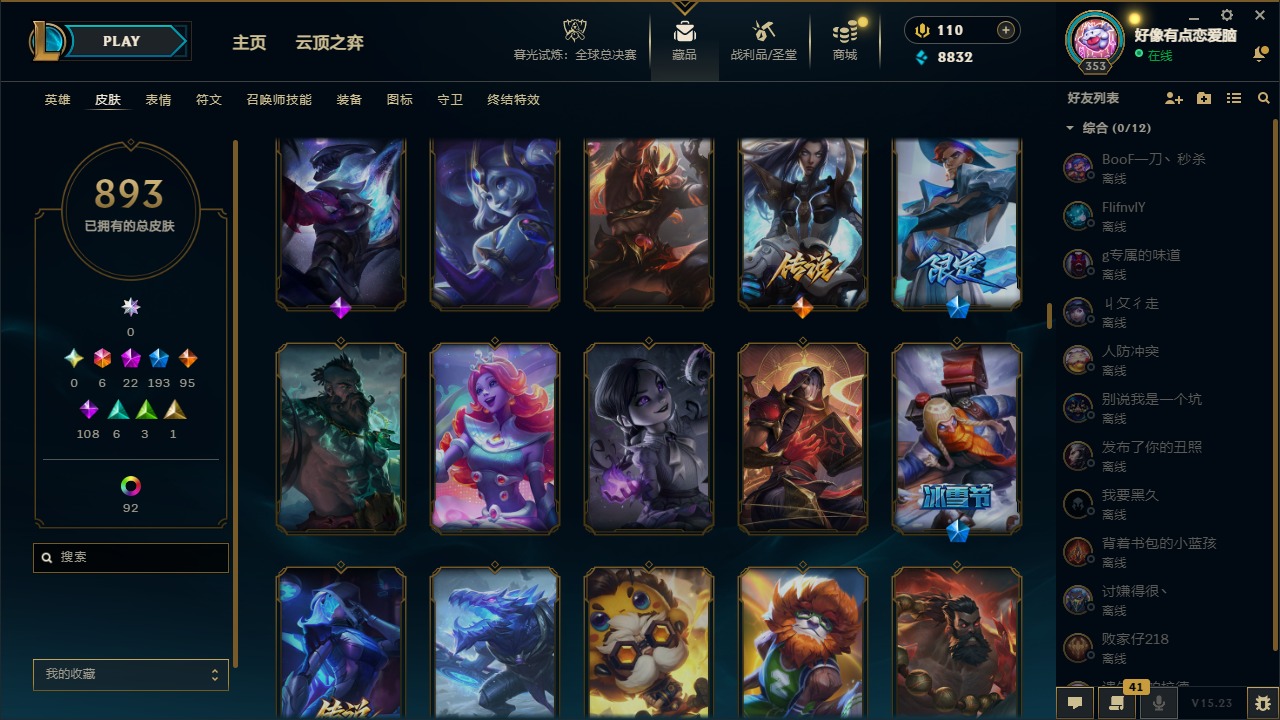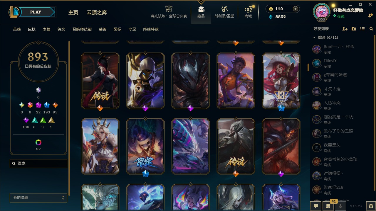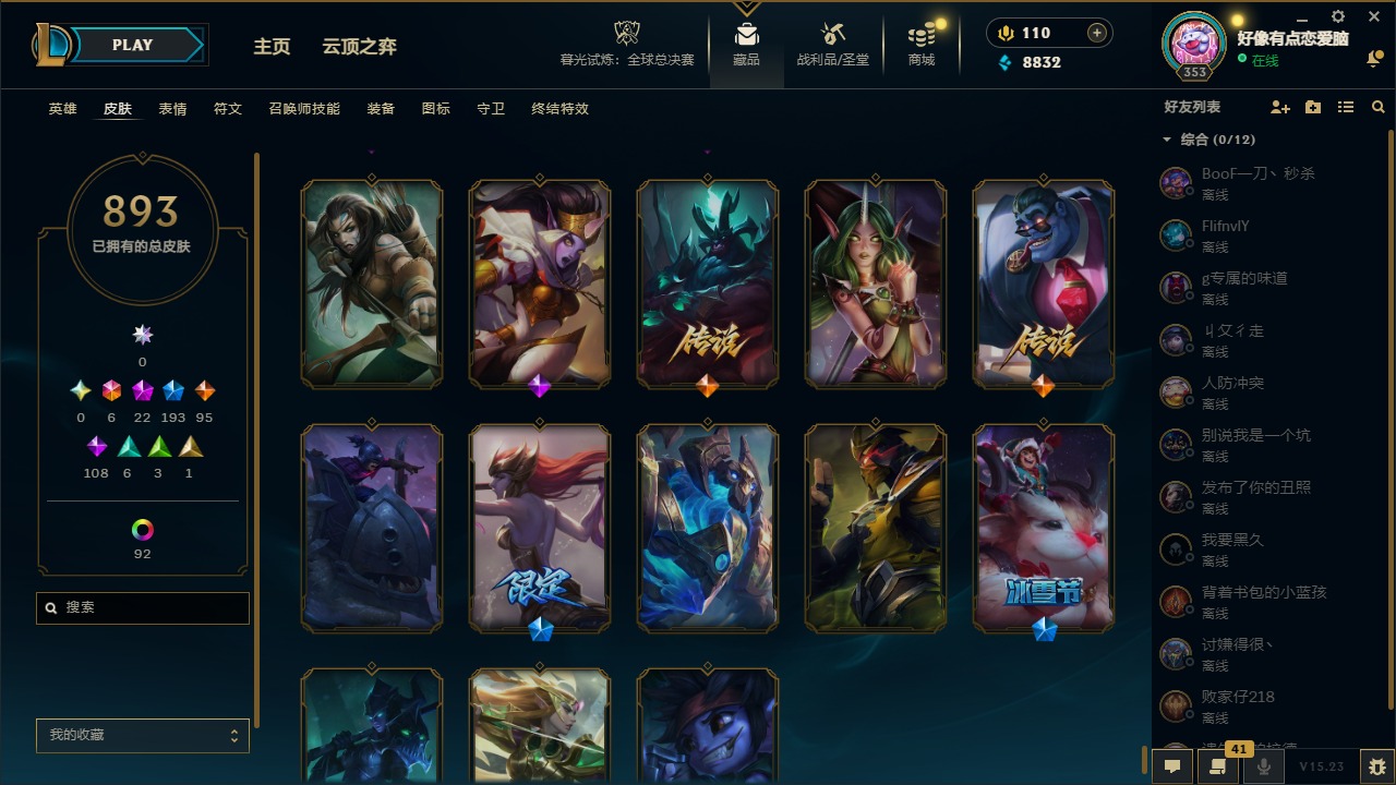 [14454672]6终极 22神话 193限定 95传说 108史诗 893皮肤 128炫彩 170英雄 可二次 可修改实名 【至臻】:至臻 天龙之子 伊泽瑞尔至臻 心之钢 永恩至臻 墨之影武者 亚索至臻 k/da 卡莎至臻 魅惑女巫 厄运小姐至臻 真实伤害 奇亚娜至臻 真实伤害 赛娜至臻 暗星 墨菲特至臻 灵魂莲华 提莫至臻 灵能特工 伊泽瑞尔至臻 k/da all out卡莎至臻 源计划:逆流 塞拉斯至臻 源计划:阴 劫至臻 神龙尊者均衡之龙 沃利贝尔至臻 西部魔影 泰隆至臻 剪纸仙灵 希维尔西部魔影 炽天使 永恩 【海克斯】:海克斯 嘉文四世海克斯 雷克顿海克斯 斯维因 【限定】:庆典女皇 艾尼维亚钢铁军团 拉克丝创星之灵 璐璐2022 全球总决赛 阿兹尔 【情人节限定】:穿心之剑 菲奥娜觅心猎手 薇恩觅心猫猫 悠米觅心魔灵 奥利安娜觅心女王 艾希觅心游侠 卢锡安觅心之翼 奎因水晶玫瑰 婕拉碎心之拳 蔚甜心宝贝 安妮甜心之翎 洛甜心宝贝 娑娜甜心之羽 霞幽梦玫瑰 泰隆幽梦玫瑰 伊莉丝水晶玫瑰 阿克尚 【冠军限定系列】:s13 t1 李青s1fnc 酒桶s1fnc 迦娜s1fnc 嘉文四世s1fnc 卡尔萨斯s1fnc 库奇s2 暗杀星 慎s3 skt t1 劫s3 skt t1 贾克斯s3 skt t1 薇恩s3 skt t1 李青s3 skt t1 婕拉s4 ssw 锤石s4 ssw 雷恩加尔s4 ssw 泰隆s4 ssw 图奇s4 ssw 炼金s5 skt t1 雷克顿s5 skt t1 阿利斯塔s5 skt t1 滑板鞋s5 skt t1 阿兹尔s5 skt t1 蜘蛛s6 skt t1 奥拉夫s6 skt t1 烬s6 skt t1 艾克s6 skt t1 球女s6 skt t1 扎克s6 skt t1 娜美s7 ssg 嘉文四世s7 ssg 纳尔s7 ssg 塔利垭s8 ig 艾瑞莉娅s8 ig 卡密尔s8 ig 卡莎s8 ig 乐芙兰s8 ig 洛s9 f 薇恩s9 f 锤石s9 f 李青s10 dwg 崔斯特s10 dwg 烬s10 dwg 奈德丽s11 edg 佛耶戈s11 edg 佐伊s1