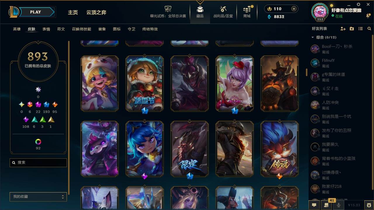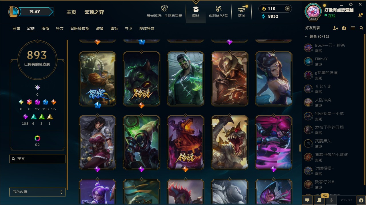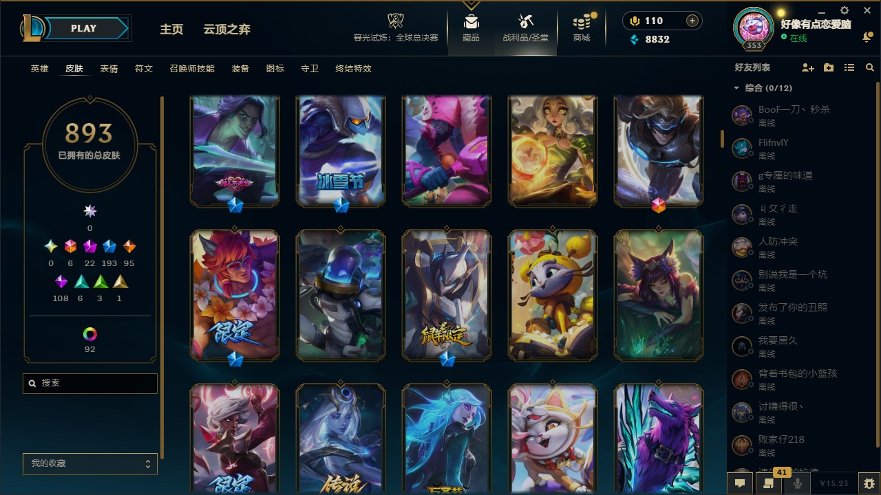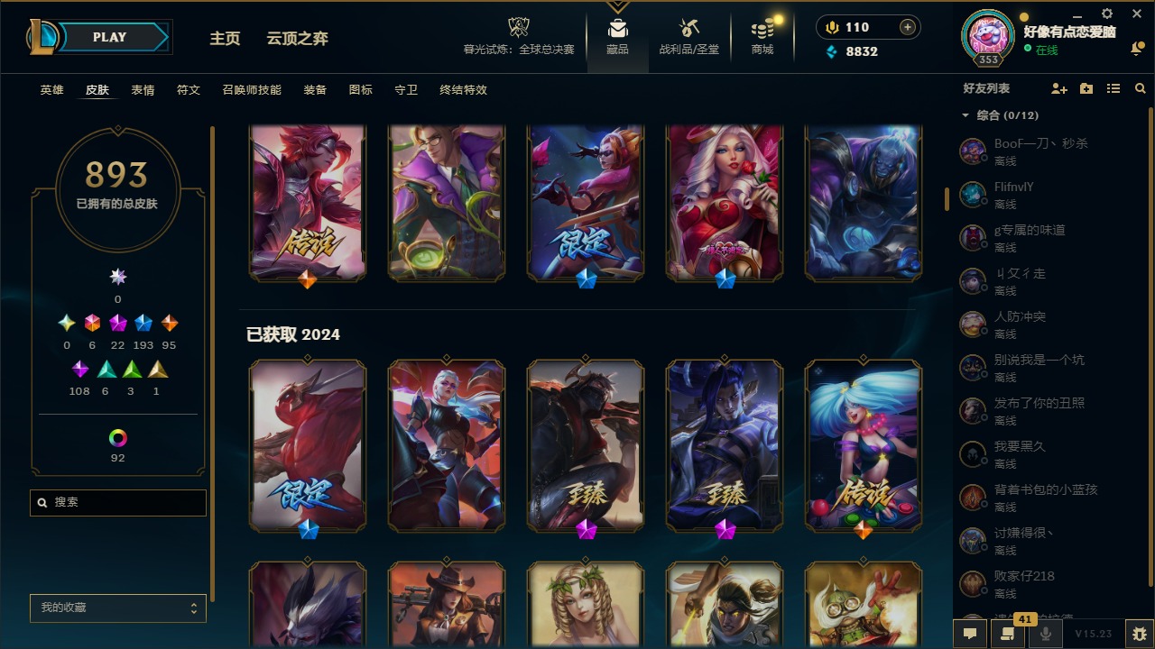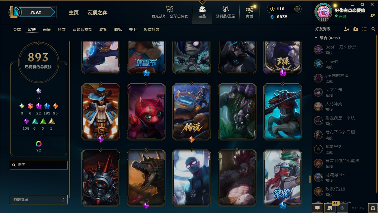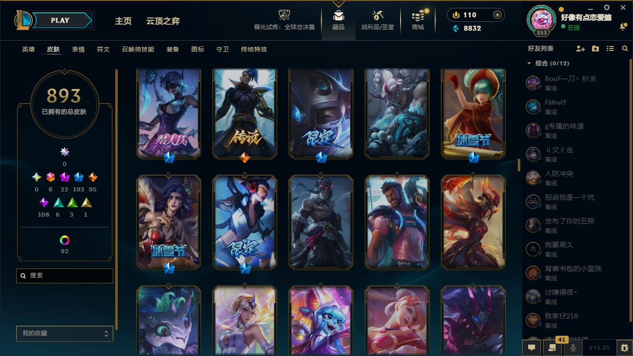 [14454672]6终极 22神话 193限定 95传说 108史诗 893皮肤 128炫彩 170英雄 可二次 可修改实名 【至臻】:至臻 天龙之子 伊泽瑞尔至臻 心之钢 永恩至臻 墨之影武者 亚索至臻 k/da 卡莎至臻 魅惑女巫 厄运小姐至臻 真实伤害 奇亚娜至臻 真实伤害 赛娜至臻 暗星 墨菲特至臻 灵魂莲华 提莫至臻 灵能特工 伊泽瑞尔至臻 k/da all out卡莎至臻 源计划:逆流 塞拉斯至臻 源计划:阴 劫至臻 神龙尊者均衡之龙 沃利贝尔至臻 西部魔影 泰隆至臻 剪纸仙灵 希维尔西部魔影 炽天使 永恩 【海克斯】:海克斯 嘉文四世海克斯 雷克顿海克斯 斯维因 【限定】:庆典女皇 艾尼维亚钢铁军团 拉克丝创星之灵 璐璐2022 全球总决赛 阿兹尔 【情人节限定】:穿心之剑 菲奥娜觅心猎手 薇恩觅心猫猫 悠米觅心魔灵 奥利安娜觅心女王 艾希觅心游侠 卢锡安觅心之翼 奎因水晶玫瑰 婕拉碎心之拳 蔚甜心宝贝 安妮甜心之翎 洛甜心宝贝 娑娜甜心之羽 霞幽梦玫瑰 泰隆幽梦玫瑰 伊莉丝水晶玫瑰 阿克尚 【冠军限定系列】:s13 t1 李青s1fnc 酒桶s1fnc 迦娜s1fnc 嘉文四世s1fnc 卡尔萨斯s1fnc 库奇s2 暗杀星 慎s3 skt t1 劫s3 skt t1 贾克斯s3 skt t1 薇恩s3 skt t1 李青s3 skt t1 婕拉s4 ssw 锤石s4 ssw 雷恩加尔s4 ssw 泰隆s4 ssw 图奇s4 ssw 炼金s5 skt t1 雷克顿s5 skt t1 阿利斯塔s5 skt t1 滑板鞋s5 skt t1 阿兹尔s5 skt t1 蜘蛛s6 skt t1 奥拉夫s6 skt t1 烬s6 skt t1 艾克s6 skt t1 球女s6 skt t1 扎克s6 skt t1 娜美s7 ssg 嘉文四世s7 ssg 纳尔s7 ssg 塔利垭s8 ig 艾瑞莉娅s8 ig 卡密尔s8 ig 卡莎s8 ig 乐芙兰s8 ig 洛s9 f 薇恩s9 f 锤石s9 f 李青s10 dwg 崔斯特s10 dwg 烬s10 dwg 奈德丽s11 edg 佛耶戈s11 edg 佐伊s1