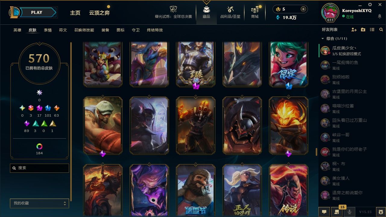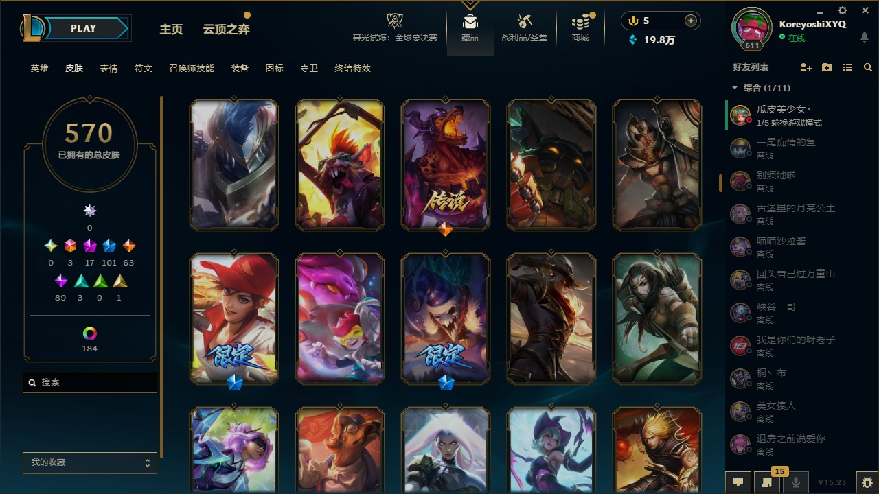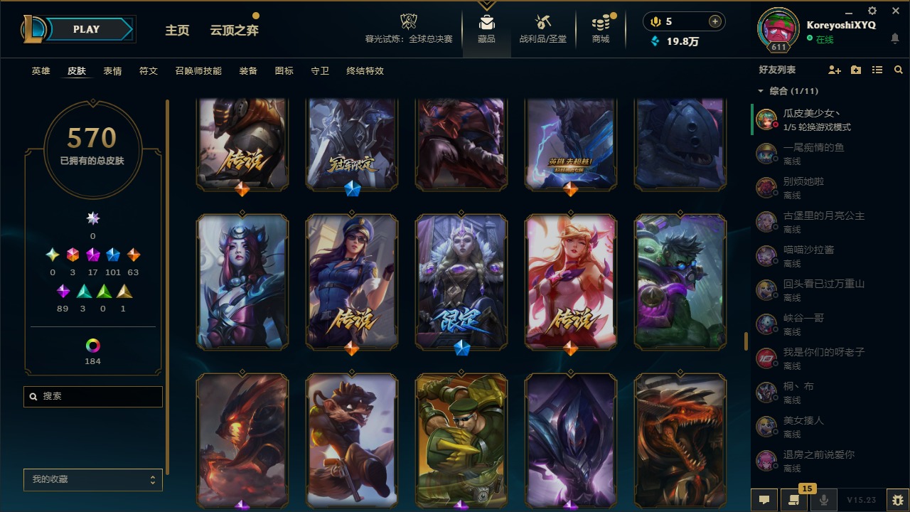 172英雄-570皮肤-[]3终极 17神话 101限定 63传说 89史诗 570皮肤 237炫彩 172英雄 可二次 可修改实名 【至臻】:至臻 暗星女王 黛安娜至臻 双城之战2 指挥官 凯特琳至臻 狼神英灵 斯维因至臻 魔域梦魇 泽丽至臻 真实伤害 赛娜至臻 k/da all out卡莎