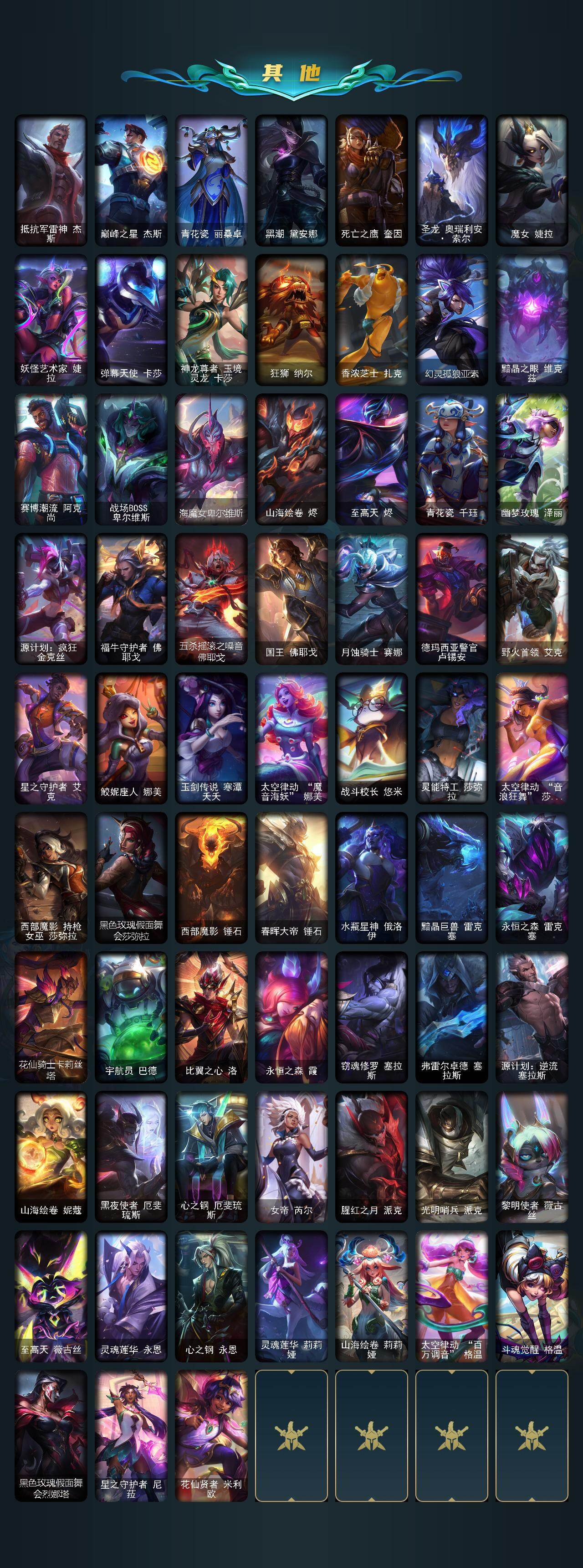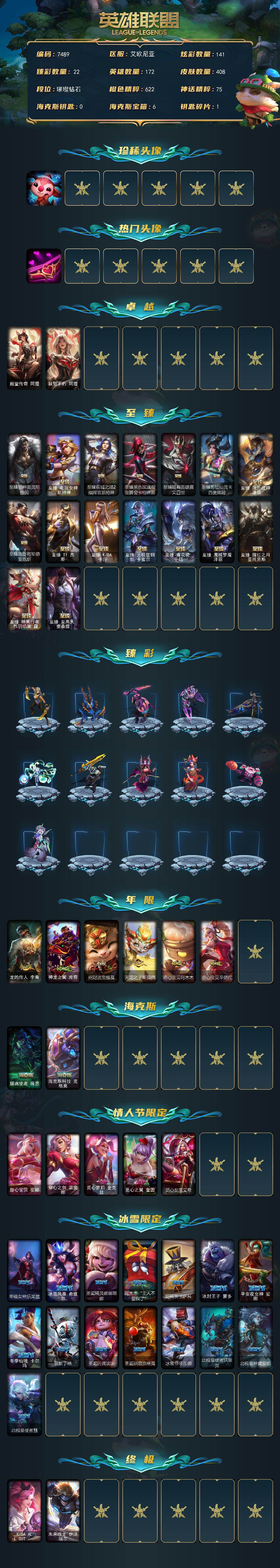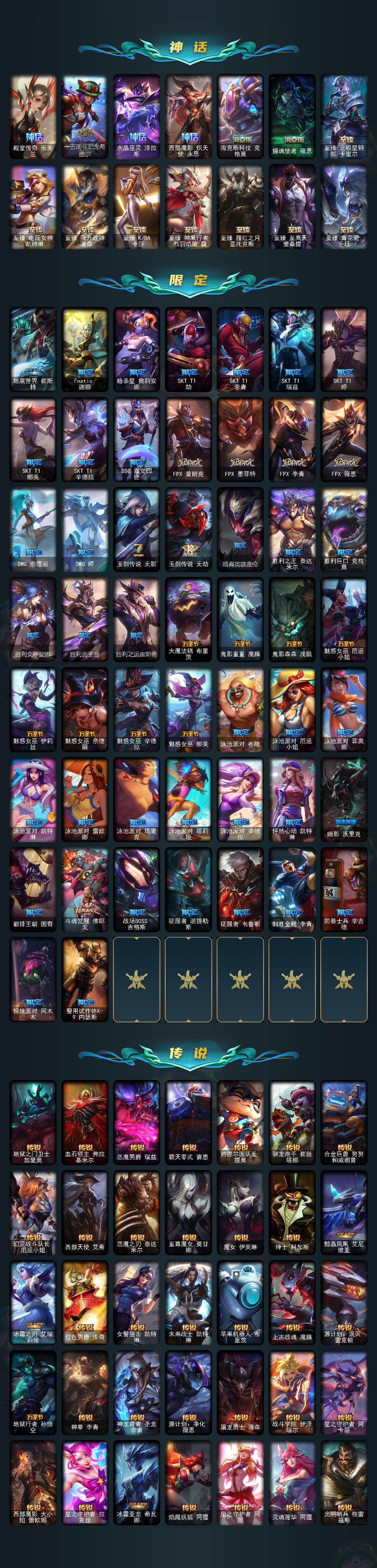 【七位数不含4 签名阿狸 氪金神话永恩 龙瞎 连体无畏契约 有峡谷资格】钻石段位-172英雄-408皮肤-141炫彩-4终极-22神话-79限定-51传说-42史诗 【珍稀头像】:至爱的鹿头像 【热门头像】:爱情之歌头像 【卓越皮肤】:殿堂传奇阿狸,联盟不朽阿狸 【至臻皮肤】:至臻狼神英灵斯维因,至臻电玩女神凯特琳,至臻双城之战2指挥官凯特琳,至臻黑色玫瑰假面舞会卡特琳娜,至臻暗裔英雄嘉文四世,至臻剪纸仙灵卡西奥佩娅,至臻飞升战神潘森,至臻凯旋将军德莱厄斯,至臻t1杰斯,至臻kda卡莎,至臻北极星钢影卡蜜尔,至臻青花瓷千珏,至臻魔域梦魇泽丽,至臻腥红之月亚托克斯,至臻神凰行者烈羽焰凰霞,至臻至高天奎桑提 【臻彩皮肤】:天龙之子卡莎飞龙乘云,墨之影武者亚索金墨耀影,闭月之颜貂蝉炫金莲华,sktt1辛德拉至强,殿堂传奇乐芙兰至强,花仙子拉克丝纹白,霸天异形卡兹克掠空魅影,源计划毁灭派克幻灭,天煞劫恒星游历者,西部天使赛娜神选天使长,战斗学院卡特琳娜盛典礼服,净雪之月阿狸水竹,霸天剑魔亚托克斯涤罪之翼,星之吞噬者莫甘娜热情之末,灵魂莲华卡西奥佩娅流火,可爱可爱粉红红布里茨,殿堂传奇乐芙兰登神,星之守护者阿卡丽热情之光,魔女辛德拉饕餮,魔女阿卡丽虚荣,净雪之月莫甘娜冬虹 【年限皮肤】:龙的传人李青,神龙之翼库奇,招财进宝提莫,天龙之子斯莫德,点心宝贝阿木木,点心宝贝辛德拉 【海克斯皮肤】:摄魂使者薇恩,海克斯科技克格莫 【情人节限定】:甜心宝贝娑娜,穿心之剑菲奥娜,觅心萝莉金克丝,觅心之翼奎因,觅心女王艾希 【冰雪限定】:幸福女神乐芙兰,冰雪风暴希维尔,圣诞精灵崔丝塔娜,阿木木“主人不要我了”,胡桃夹子萨科,冰封王子蒙多,平安夜女神娑娜,冬季仙境卡尔玛,雪默丁格,圣诞玩偶波比,圣诞驯鹿克格莫,冰雪节辛吉德,北极星使者沃里克,北极星神黛安娜,北极星使者彗 【终极皮肤】:kdaallout萨勒芬妮独立音乐人,未来战士伊泽瑞尔 【神话皮肤】:殿堂传奇乐芙兰,十五周年纪念希维尔,水晶巫灵泽拉斯,西部魔影炽天使永恩,海克斯科技克格莫,摄魂使者薇恩,至臻至高天奎桑提,至臻青花瓷千珏,至臻北极星钢影卡蜜尔,至臻电玩女神凯特琳,至臻飞升战神潘森,至臻kda卡莎,至臻神凰行者烈羽焰凰霞,至臻腥红之月亚托克斯 【限定皮肤】:地底世界崔斯特,fnatic迦娜,暗杀星奥莉安娜,sktt1劫,sktt1李青,sktt1瑞兹,sktt1烬,sktt1娜美,sktt1辛德拉,ssg嘉文四世,f普朗克,f墨菲特,f李青,f薇恩,dwg奈德丽,dwg烬,玉剑传说无影,玉剑传说无劫,暗裔英雄盖伦,胜利之王泰达米尔,胜利巨口克格莫,胜利女神娑娜,胜利剑圣易,胜利之运崔斯特,大魔法锅布里茨,鬼影重重魔腾,鬼影森森茂凯,魅惑女巫厄运小姐,魅惑女巫伊莉丝,魅惑女巫奈德丽,魅惑女巫辛德拉,魅惑女巫娜美,泳池派对布隆,泳池派对厄运小姐,泳池派对菲奥娜,泳池派对凯特琳,泳池派对蕾欧娜,泳池派对塔里克,泳池派对塔莉垭,泳池派对辛德拉,怦然心动凯特琳,暗影沃里克,都铎王朝图奇,斗魂觉醒佛耶戈,战场boss吉格斯,征服者诺提勒斯,征服者韦鲁斯,制胜金靴李青,防暴士兵辛吉德,惊悚派对阿木木,警用试作体k9内瑟斯,双城之战2救世主维克托,双城之战2孤勇者艾克 【传说皮肤】:地狱之门卫士加里奥,血石领主弗拉基米尔,恶魔男爵瑞兹,霸天零式赛恩,约德尔国队长提莫,驯龙炮手崔丝塔娜,合金巨兽努努和威朗普,幻灵战斗队长厄运小姐,西部天使艾希,恶魔之刃泰达米尔,至尊魔女莫甘娜,魔女伊芙琳,绅士科加斯,黯晶凤凰艾尼维亚,冰霜之刃艾瑞莉娅,红色男爵库奇,女警狙击凯特琳,未来战士凯特琳,苹果机器人布里茨,上古战魂魔腾,源计划泯灭雷克顿,地狱行者孙悟空,神拳李青,神龙尊者圣龙李青,源计划净化薇恩,屠龙勇士潘森,战斗学院伊泽瑞尔,星之守护者阿卡丽,西部魔影大小姐蕾欧娜,星之守护者拉克丝,冰霜亚龙希瓦娜,焰尾妖狐阿狸,星之守护者阿狸,灵魂莲华阿狸,光明哨兵格雷福斯,符文战熊沃利贝尔,泳池派对吉格斯,神王德莱厄斯,青花瓷奥瑞利安索尔,奥德赛凯隐,心之钢凯隐,黑夜使者亚索,西部魔影卢锡安,天煞劫,真实伤害艾克,海魔至尊亚托克斯,暗星锤石,灵魂莲华锤石,星之守护者洛,星之守护者霞,黎明使者永恩 【史诗皮肤】:冰霜烈焰安妮,安伯斯与提妮,铁钩船长费德提克,火牙狼人沃里克,国王泰达米尔,黑色荆棘莫甘娜,武动巅峰萨科,掠星魔刃卡萨丁,夜刃艾瑞莉娅,夜行义贼艾瑞莉娅,海克斯科技迦娜,恐惧新星普朗克,驯龙大师斯维因,源计划雄心卡特琳娜,符文战神雷克顿,腥红之月伊莉丝,暗星奥莉安娜,三昧真火孙悟空,斗战胜佛孙悟空,v字仇杀者布兰德,战地机甲斯卡纳,艳后奈德丽,铁血猎手奈德丽,大夏武士潘森,冰川勇者伊泽瑞尔,死亡领主莫德凯撒,血色精锐锐雯,侏罗纪化石克格莫,星际迷航拉克丝,暗影妖狐阿狸,黑帮教父格雷福斯,刀锋女王丽桑卓,源代码丽桑卓,西部牛仔亚索,源计划风亚索,弗雷尔卓德塔莉垭,职业杀手卢锡安,源计划雷卢锡安,冲击之刃劫,霓虹杀拳蔚,仲裁圣骑亚托克斯,霸天剑魔亚托克斯 【王者皮肤】:霹雳游侠弗拉基米尔,西部牛仔崔斯特,战地之王加里奥 【其他皮肤1】:咖啡甜心安妮,魔域梦魇安妮,屠龙勇士奥拉夫,探戈灵魂崔斯特,赌侠崔斯特,未来战士崔斯特,地下都市梦魇崔斯特,太空律动万能舞王崔斯特,赵云子龙,星之守护者cos厄加特,社会名流乐芙兰,魔