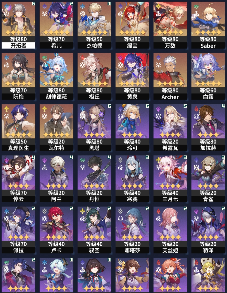 [11976806]m22777 67级男主21黄梦华0星琼66星轨专票013个五星角色:2命希儿1命杰帕德缇宝万敌saber阮梅刻律德菈椒丘黄泉archer白露真理医生瓦尔特5个五星光锥:精1没有回报的加冕精1银河铁道之夜精1但战斗还未结束精1行于流逝的岸精1时节不居【邮箱未实名出售】