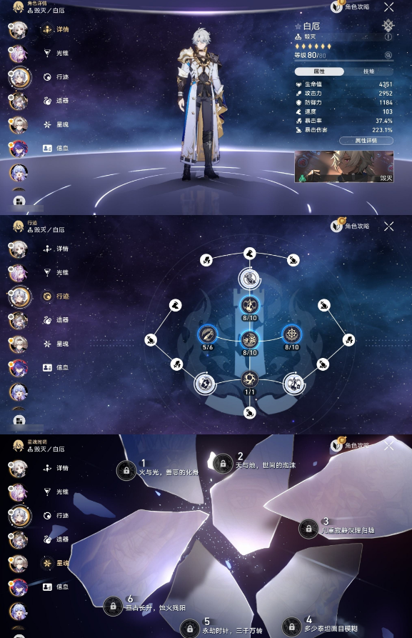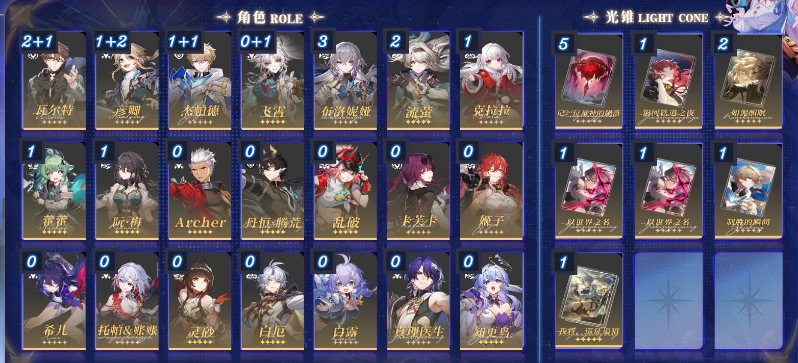 [13323777]m23558,70级女主51黄梦华0星琼126星轨专票0星轨通票027个五星角色:3命布洛妮娅2命流萤2命瓦尔特1命阮梅1命藿藿1命克拉拉1命杰帕德1命彦卿飞霄遐蝶白厄赛飞儿黄泉知更鸟灵砂托帕账账镜流卡芙卡缇宝银狼希儿白露乱破姬子archer真理医生丹恒腾荒服饰:冬去煦至7个五星光锥:精5记一位星神的陨落精2如泥酣眠精1我将巡征追猎精1以世界之名精1制胜的瞬间精1银河铁道之夜精1以世界之名