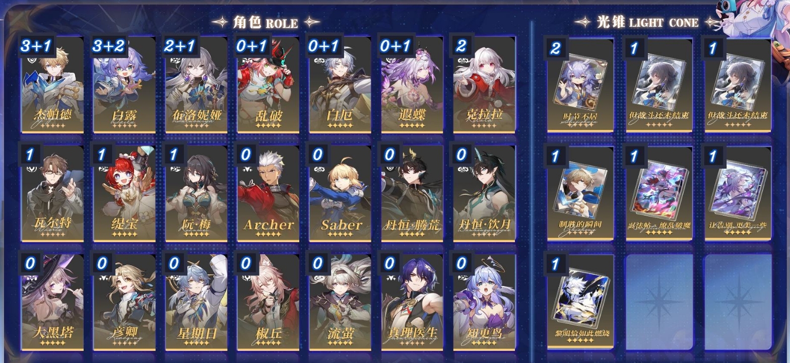 [13711241]m23809,70级男主48黄梦华21星琼21星轨专票0星轨通票027个五星角色:3命杰帕德3命白露2命克拉拉2命布洛妮娅1命阮梅1命缇宝1命瓦尔特saber星期日丹恒腾荒白厄知更鸟流萤椒丘长夜月大黑塔黄泉风堇黑天鹅遐蝶赛飞儿翡翠archer乱破丹恒饮月真理医生彦卿服饰:冬去煦至7个五星光锥:精2时节不居精1黎明恰如此燃烧精1但战斗还未结束精1制胜的瞬间精1让告别更美一些精1但战斗还未结束精1忍法帖缭乱破魔