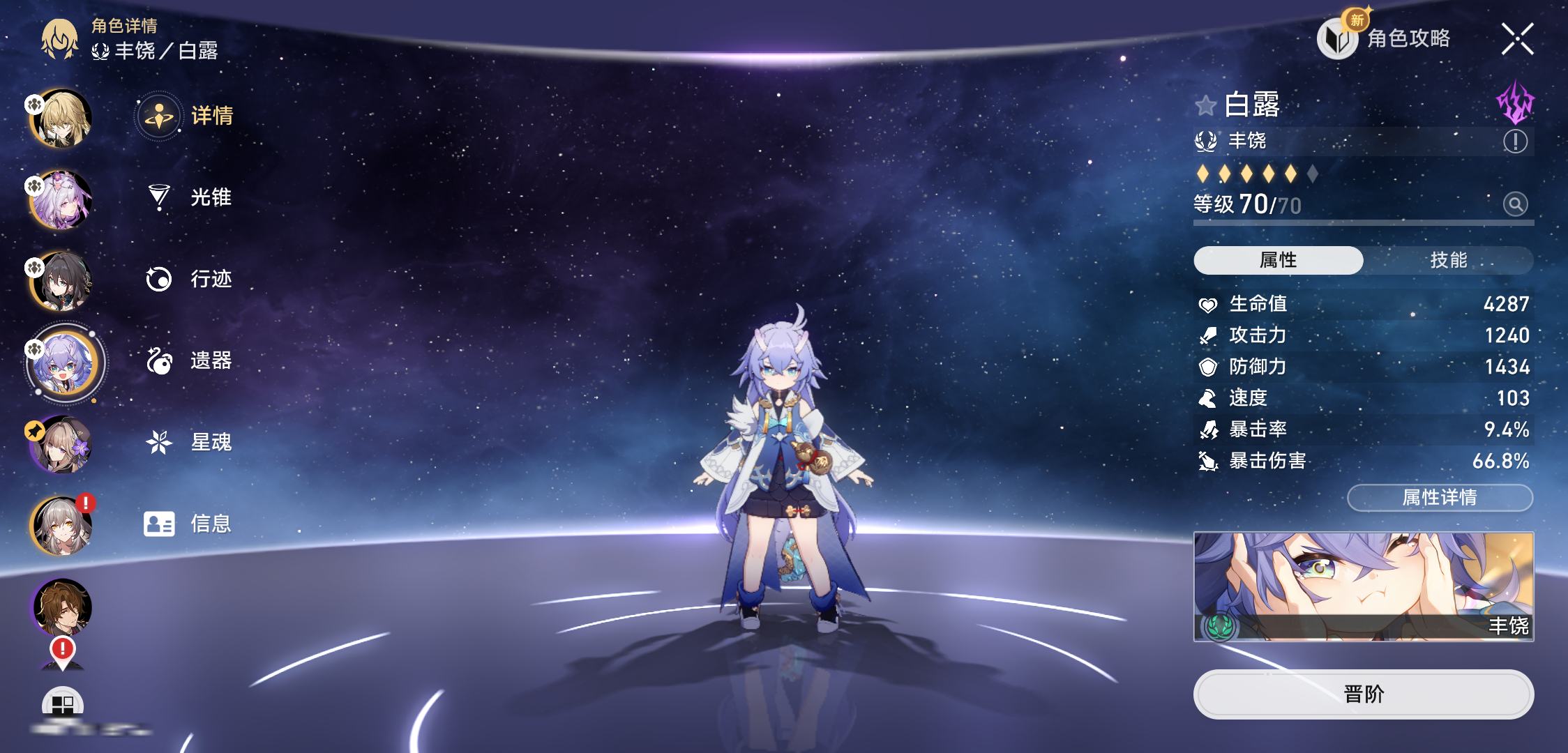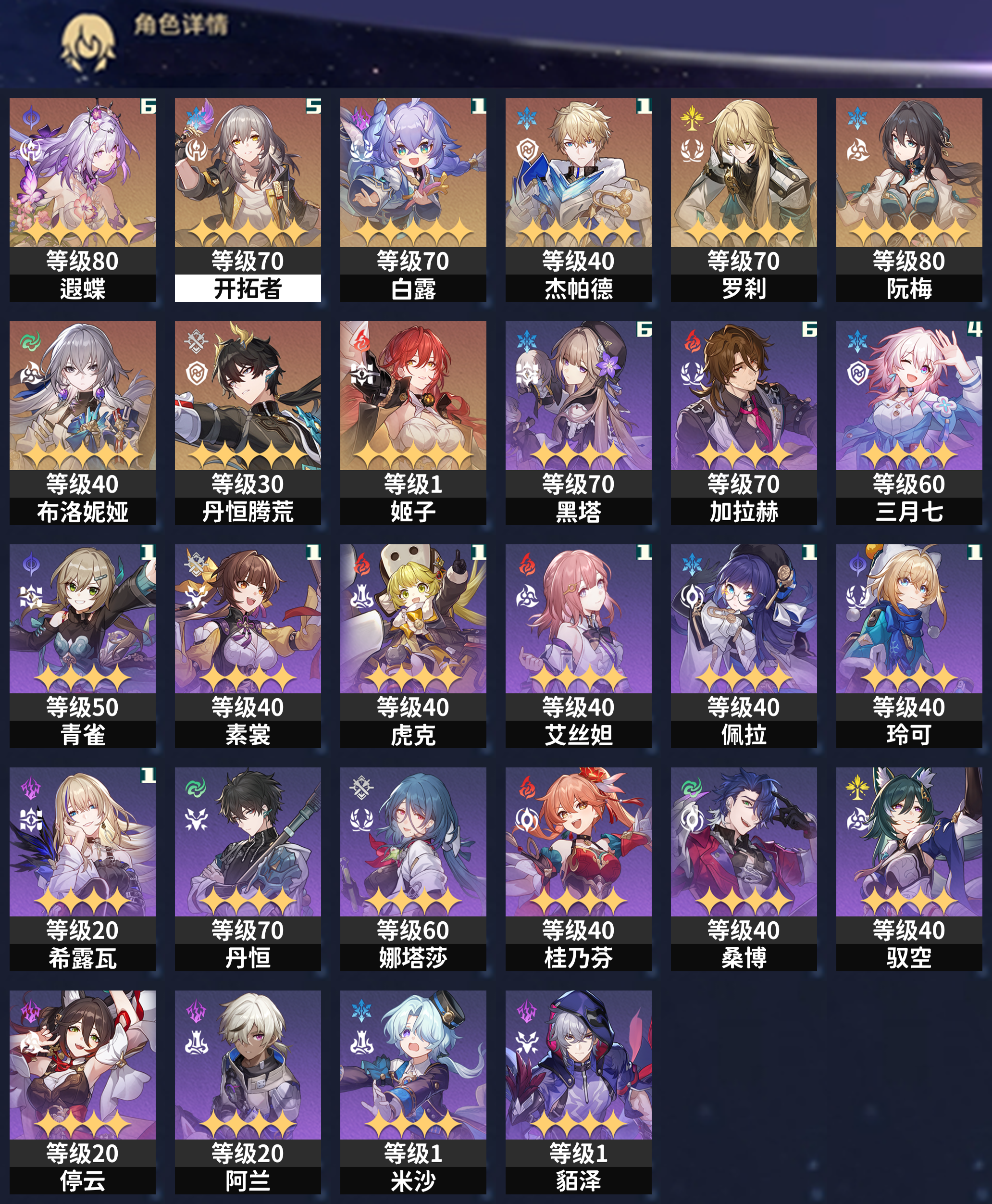 【崩坏·星穹铁道】【lyxq6910】冒险等级:60,女主,五星数量:10,绑定情况:邮箱__五星角色:遐蝶 6命|白露 1命|杰帕德 1命|罗刹|阮·梅|布洛妮娅|丹恒·腾荒|姬子__五星光锥:让告别,更美一些|银河铁道之夜,【邮箱未实名】