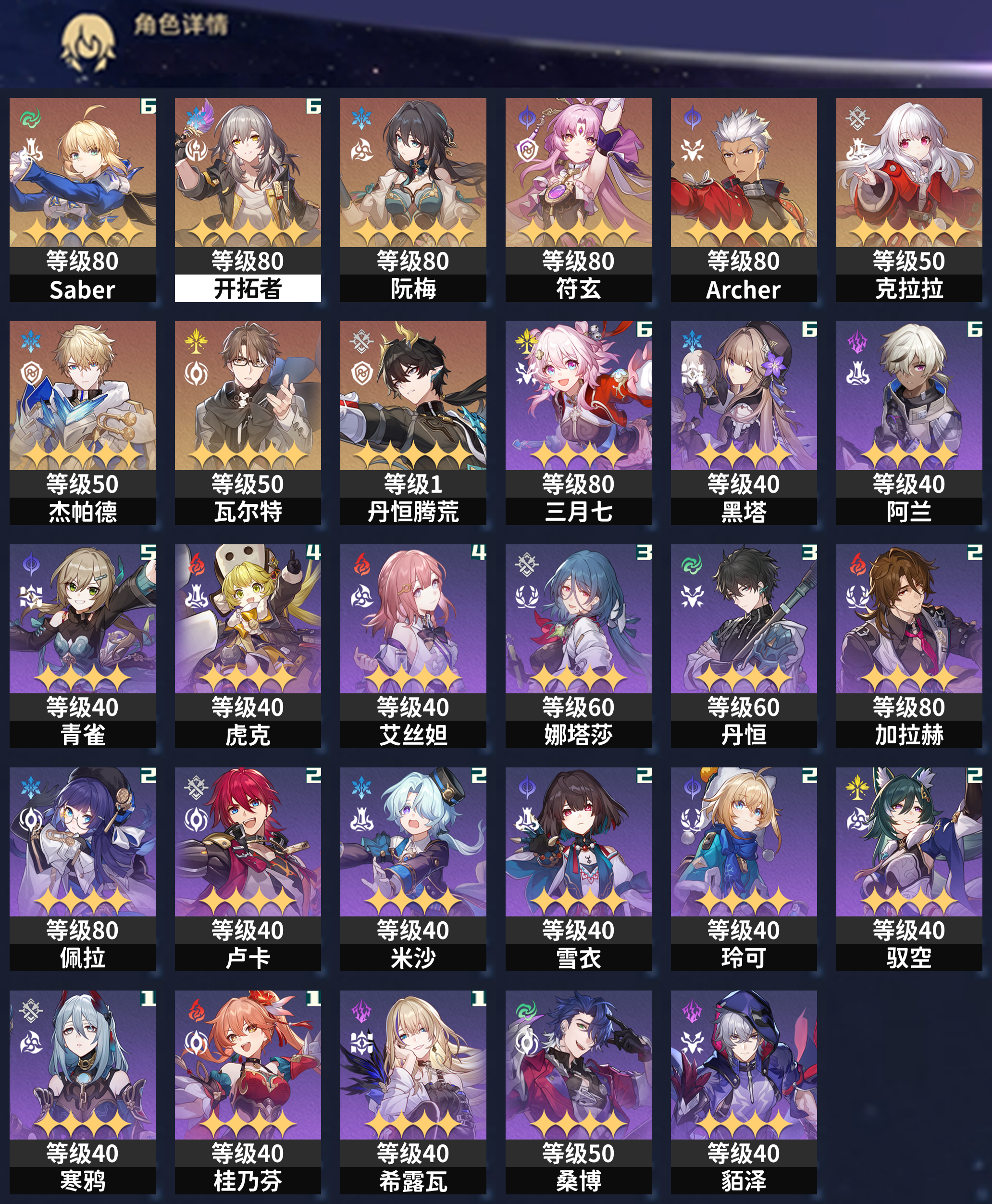【崩坏·星穹铁道】【lyxq7163】冒险等级:66,女主,五星数量:13,绑定情况:邮箱__五星角色:saber 6命|阮·梅|符玄|archer|克拉拉|杰帕德|瓦尔特|丹恒·腾荒__五星光锥:记忆永不落幕 5精|记忆的质料 3精|没有回报的加冕|理想燃烧的地狱|如泥酣眠,【邮箱已实名】