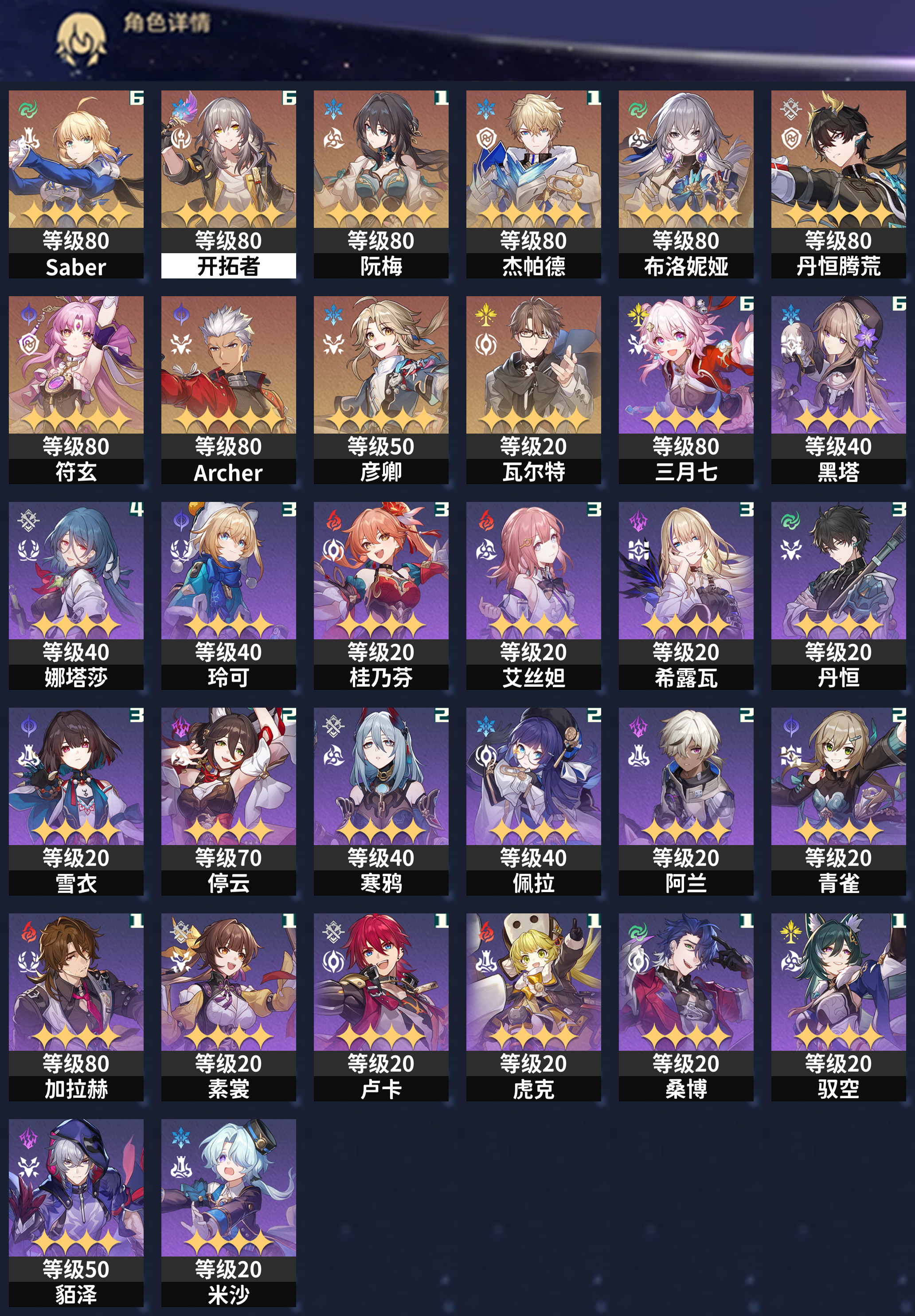 【崩坏·星穹铁道】【lyxq7200】冒险等级:67,女主,五星数量:16,绑定情况:手机号__五星角色:saber 6命|阮·梅 1命|杰帕德 1命|布洛妮娅|丹恒·腾荒|符玄|archer|彦卿|瓦尔特__五星光锥:记一位星神的陨落 4精|没有回报的加冕|理想燃烧的地狱|如泥酣眠|时节不居|记忆永不落幕|无可取代的东西,【邮箱未绑定】