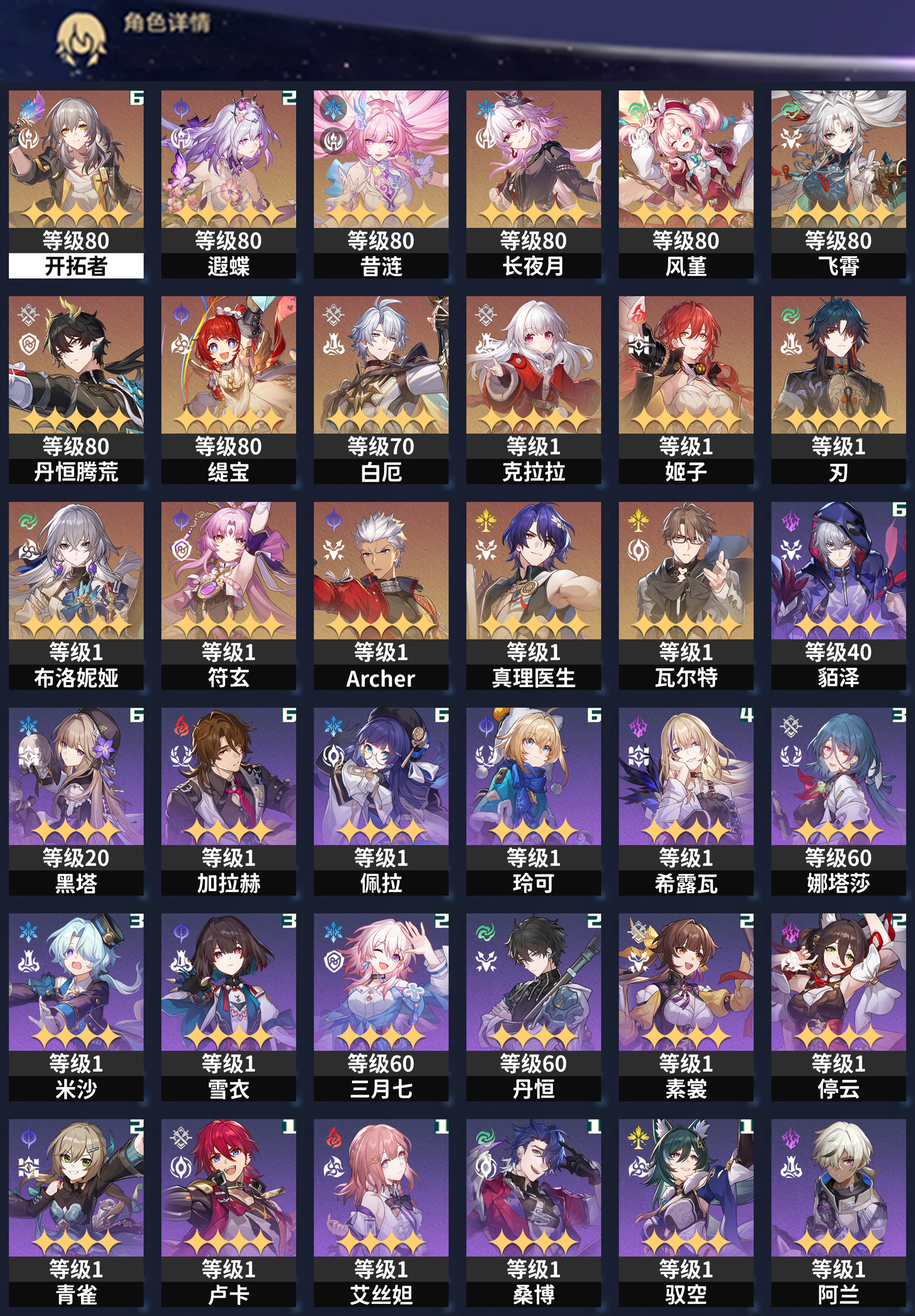 【崩坏·星穹铁道】【lyxq7226】冒险等级:65,女主,五星数量:22,绑定情况:邮箱__五星角色:遐蝶 2命|昔涟|长夜月|风堇|飞霄|丹恒·腾荒|缇宝|白厄|克拉拉|姬子|刃|布洛妮娅|符玄|archer|真理医生|瓦尔特__五星光锥:记忆永不落幕|愿虹光永驻天空|让告别,更美一些|星海巡航|记一位星神的陨落|如泥酣眠,【邮箱已实名】