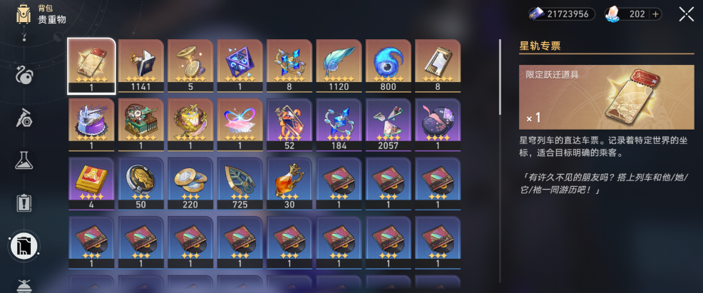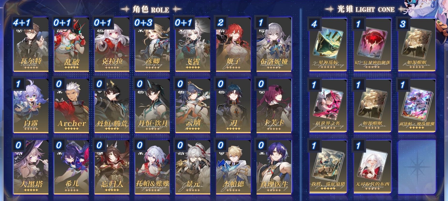 [14130550]m24079,70级男主51黄梦华0星琼202星轨专票1星轨通票030个五星角色:4命瓦尔特2命姬子1命白露1命布洛妮娅知更鸟忘归人阮梅飞霄丹恒腾荒云璃大黑塔镜流杰帕德黄泉景元卡芙卡黑天鹅藿藿刃缇宝希儿archer乱破砂金丹恒饮月克拉拉彦卿罗刹真理医生托帕账账服饰:冬去煦至8个五星光锥:精4星海巡航精3如泥酣眠精1无可取代的东西精1我将巡征追猎精1忍法帖缭乱破魔精1以世界之名精1记一位星神的陨落精1如泥酣眠