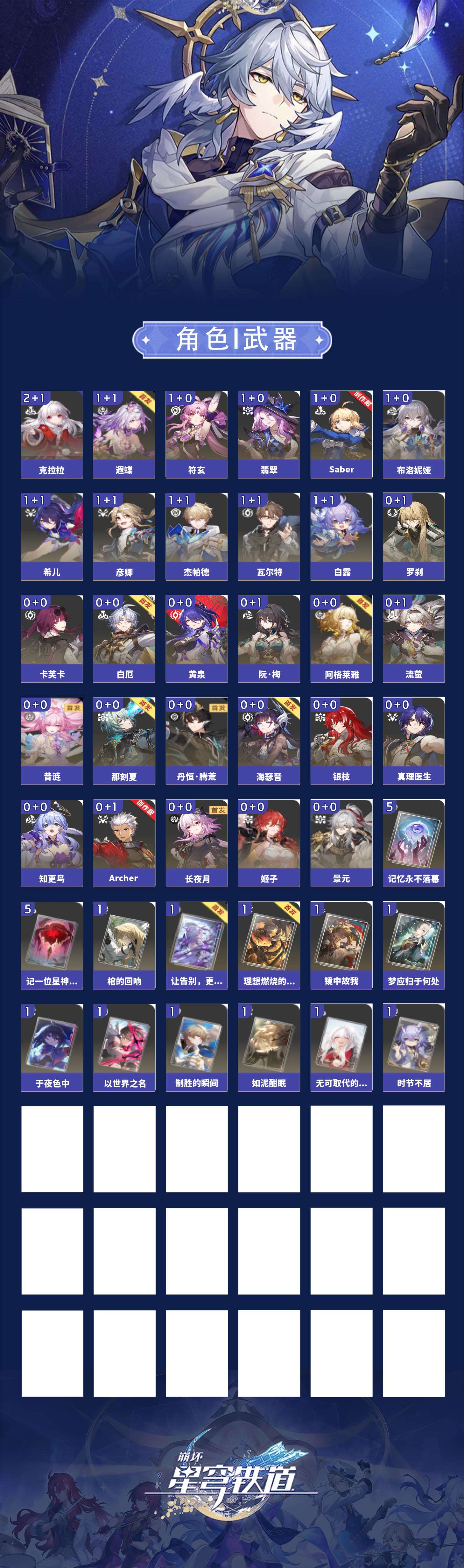 【崩坏·星穹铁道】【lyxq7338】冒险等级:1,女主,五星数量:42,绑定情况:邮箱__五星角色:克拉拉 2命|布洛妮娅 1命|saber 1命|遐蝶 1命|翡翠 1命|符玄 1命|希儿 1命|彦卿 1命|杰帕德 1命|白露 1命|瓦尔特 1命|那刻夏|丹恒·腾荒|知更鸟|昔涟|海瑟音|白厄|银枝|流萤|长夜月|阮·梅|阿格莱雅|黄泉|卡芙卡|archer|罗刹|景元|姬子|真理医生__五星光锥:记一位星神的陨落 5精|记忆永不落幕 5精|梦应归于何处|无可取代的东西|如泥酣眠|于夜色中|镜中故我|以世界之名|制胜的瞬间|时节不居|棺的回响|让告别,更美一些|理想燃烧的地狱,【邮箱未实名】
