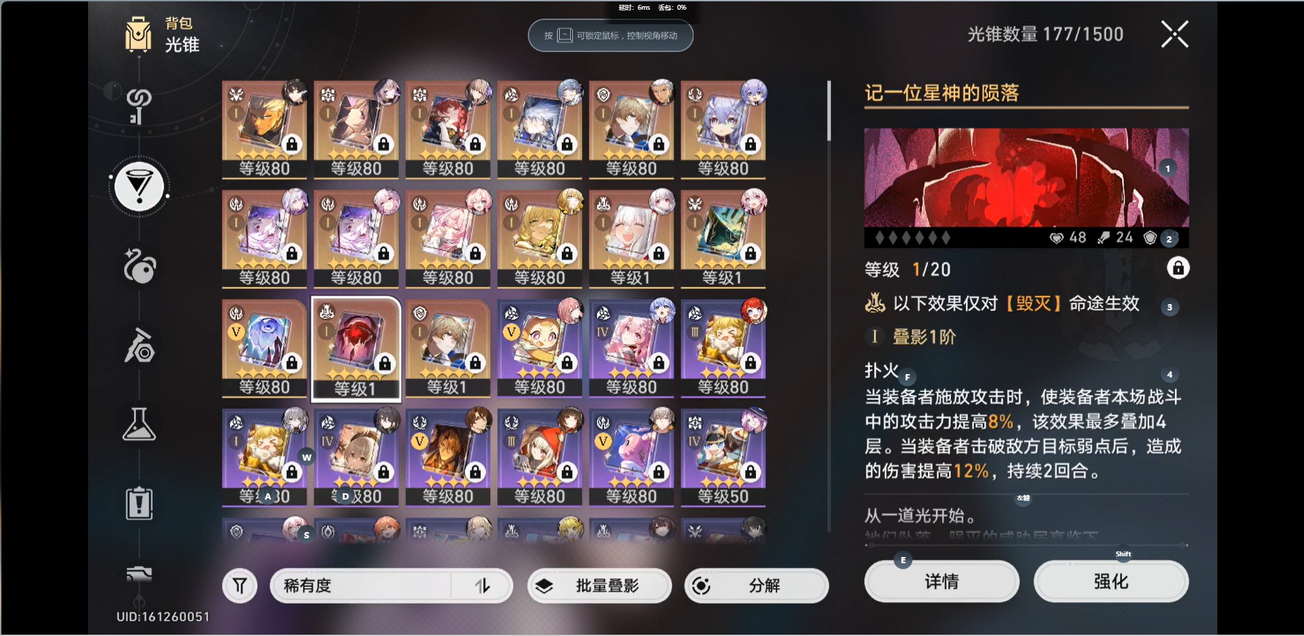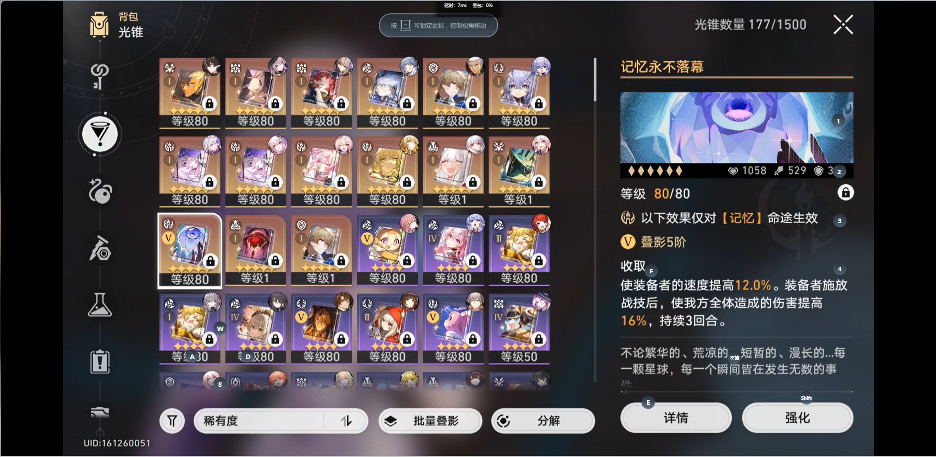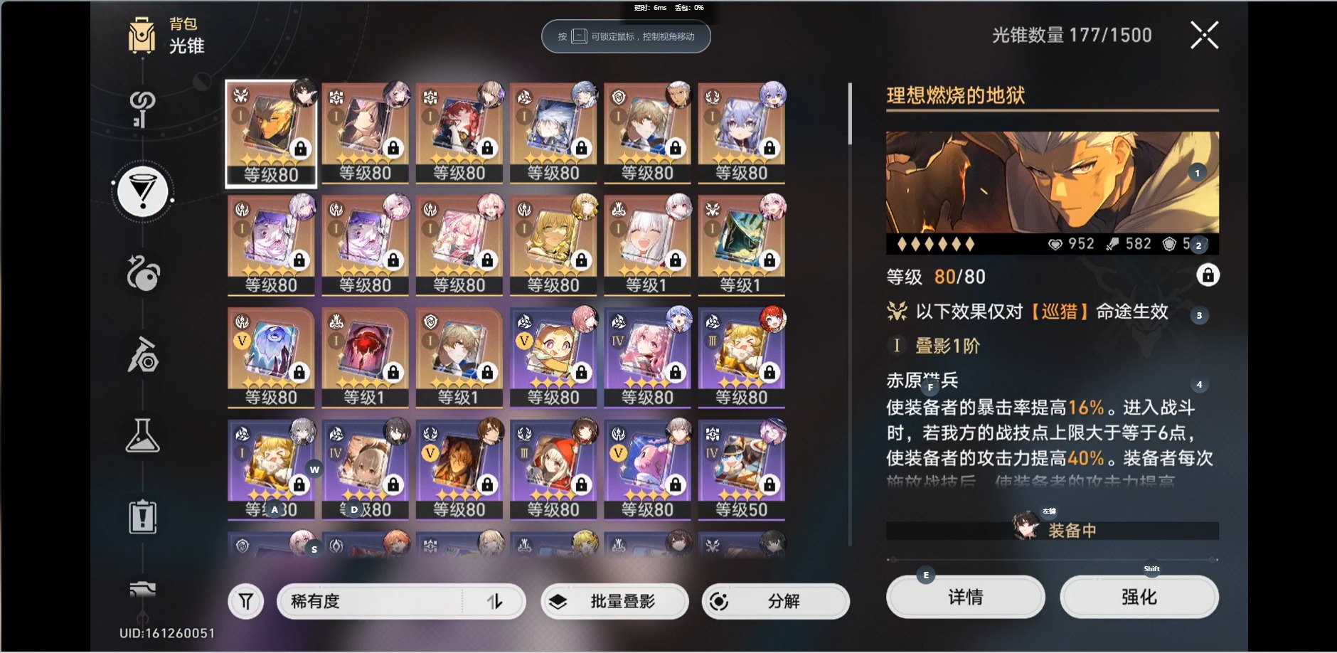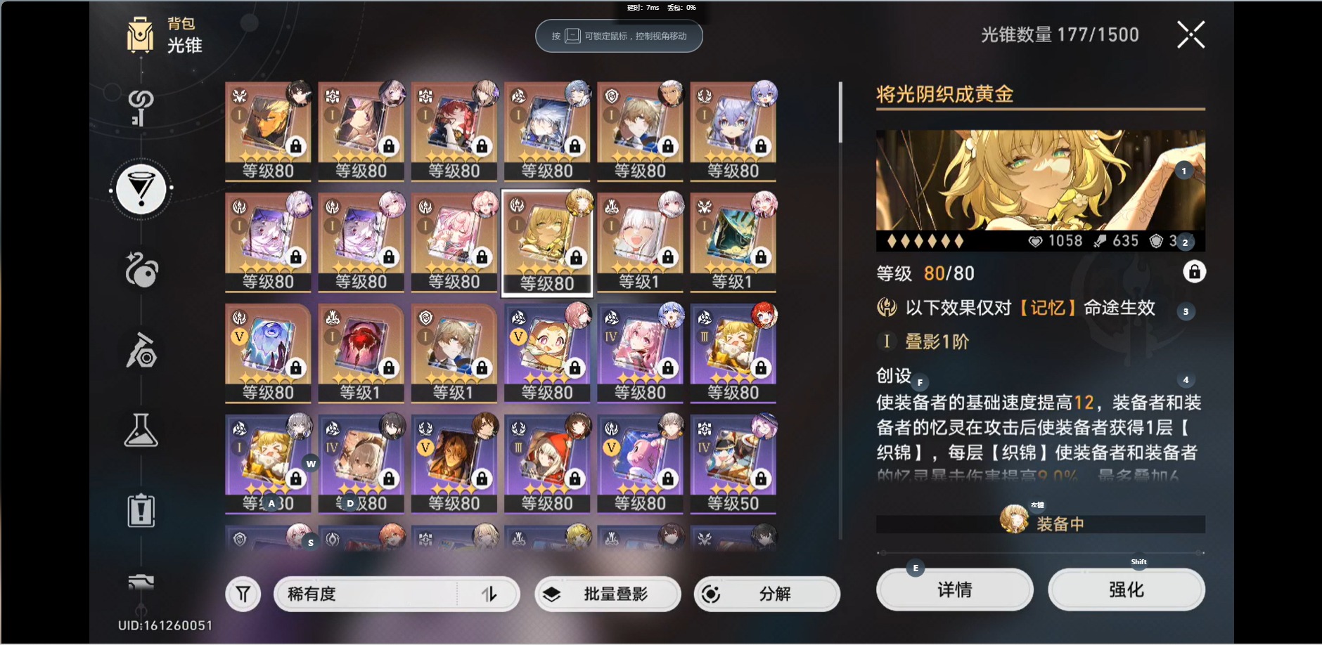 [14286913]【总黄数】:36 【2命金色角色】:2命布洛妮娅 【1命金色角色】:1命星期日1命阿格莱雅1命缇宝1命彦卿1命克拉拉1命符玄1命阮•梅 【0命金色角色】:0命希儿0命灵砂0命大黑塔0命遐蝶0命风堇0命archer0命长夜月0命丹恒·腾荒0命翡翠0命白露0命瓦尔特0命知更鸟 【精5武器】:精5记忆永不落幕 【精1武器】:精1回到大地的飞行精1向着不可追问处精1将光阴织成黄金精1愿虹光永驻天空精1理想燃烧的地狱精1致长夜的星光精1时节不居精1制胜的瞬间精1无可取代的东西精1银河铁道之夜精1记一位星神的陨落精1星海巡航
