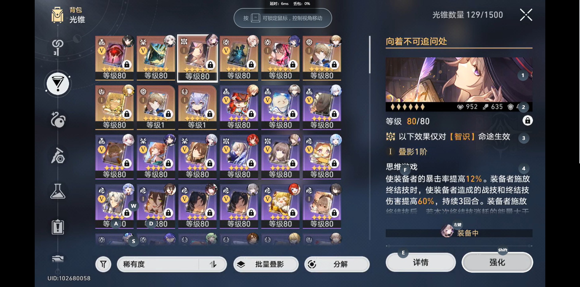 [14310863]【总黄数】:39 【3命金色角色】:3命杰帕德 【2命金色角色】:2命姬子2命布洛妮娅2命克拉拉 【1命金色角色】:1命飞霄1命大黑塔1命缇宝1命瓦尔特1命丹恒•饮月1命托帕账账 【0命金色角色】:0命万敌0命椒丘0命阿格莱雅0命流萤0命archer0命刻律德菈0命丹恒·腾荒0命彦卿0命白露0命银狼0命罗刹0命知更鸟0命镜流0命藿藿0命银枝0命阮•梅0命真理医生0命花火0命黄泉 【精5武器】:精5孤独的疗愈精5记一位星神的陨落精5星海巡航 【精1武器】:精1向着不可追问处精1将光阴织成黄金精1时节不居精1制胜的瞬间精1以世界之名