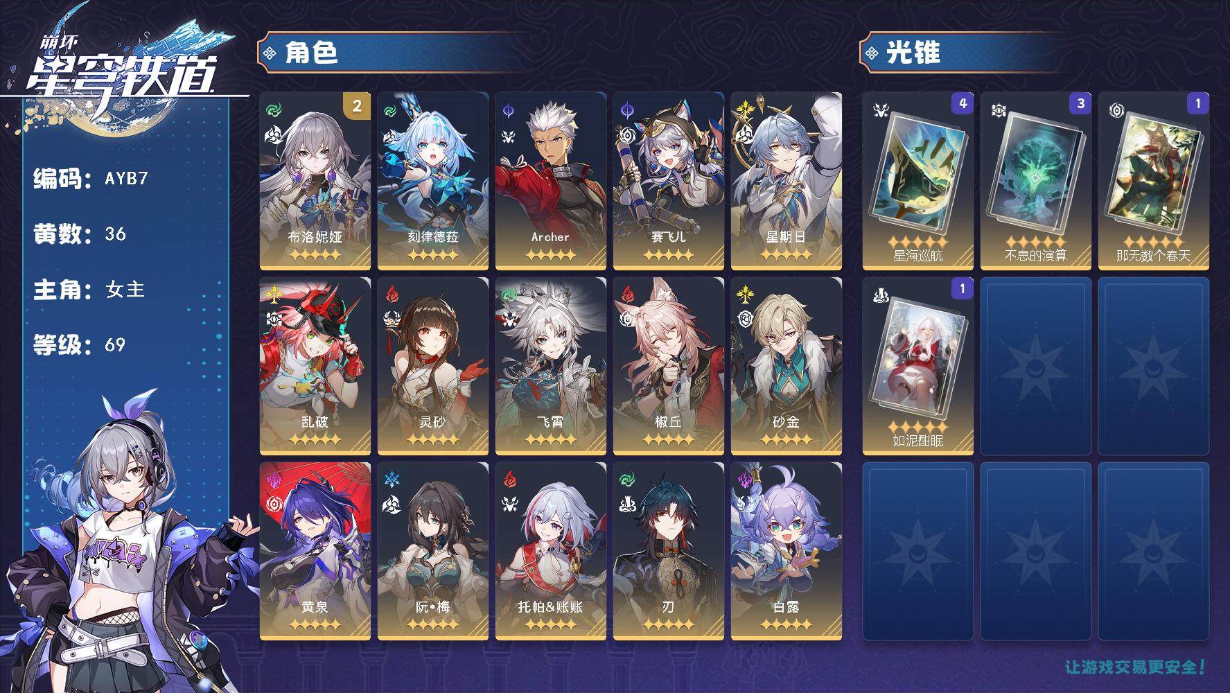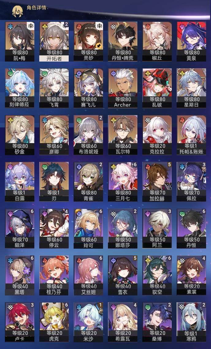 [14315995]等级:69/总黄数:36/女主/角色黄数:21 刻律德菈archer赛飞儿星期日乱破灵砂飞霄椒丘砂金黄泉阮•梅托帕账账刃白露彦卿克拉拉布洛妮娅瓦尔特那无数个春天不息的演算如泥酣眠星海巡航2命布洛妮娅0命刻律德菈0命archer0命赛飞儿0命星期日0命乱破0命灵砂0命飞霄0命椒丘0命砂金0命黄泉0命阮•梅0命托帕账账0命刃0命白露0命彦卿0命克拉拉0命瓦尔特精4星海巡航精3不息的演算精1那无数个春天精1如泥酣眠