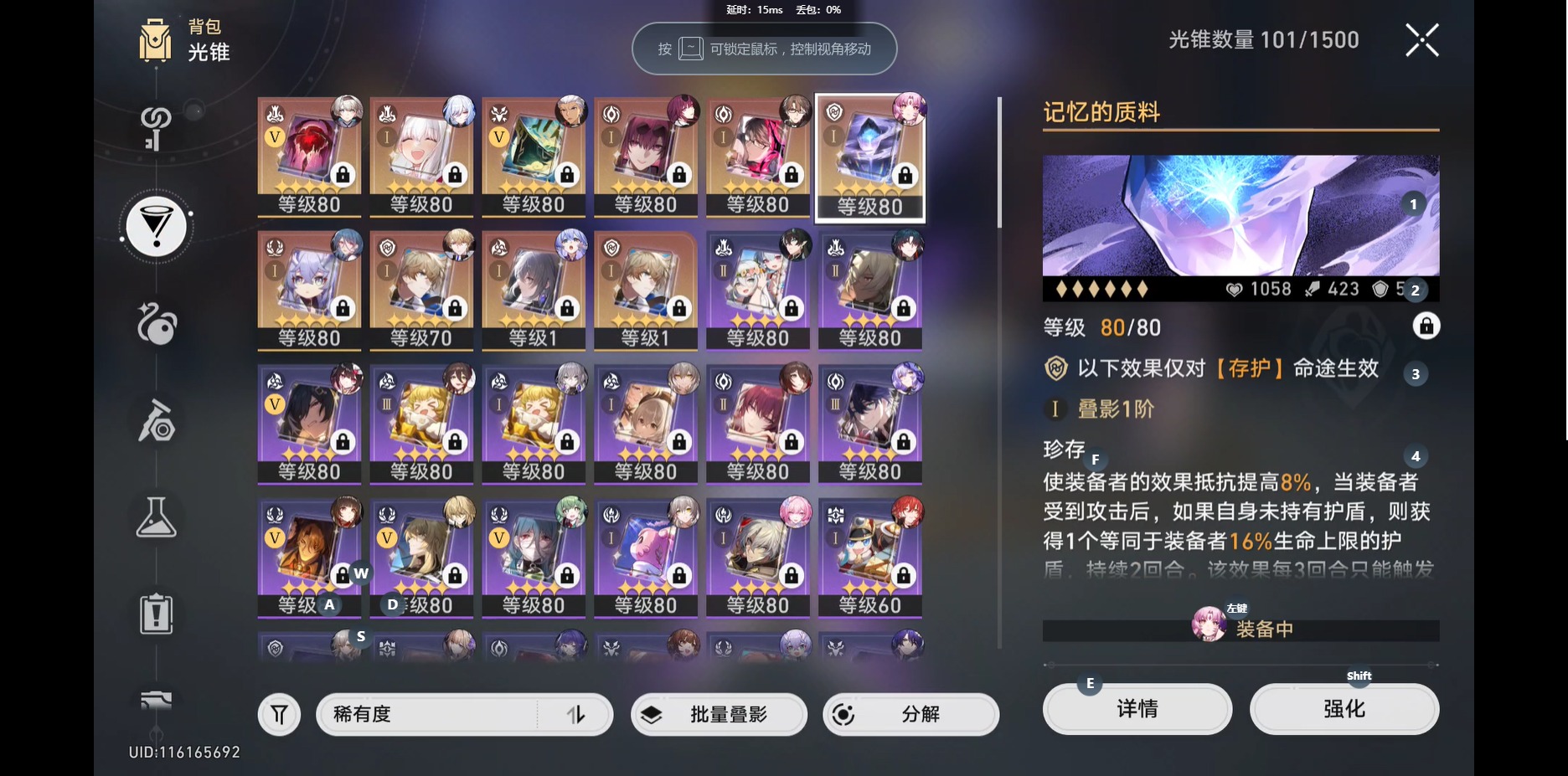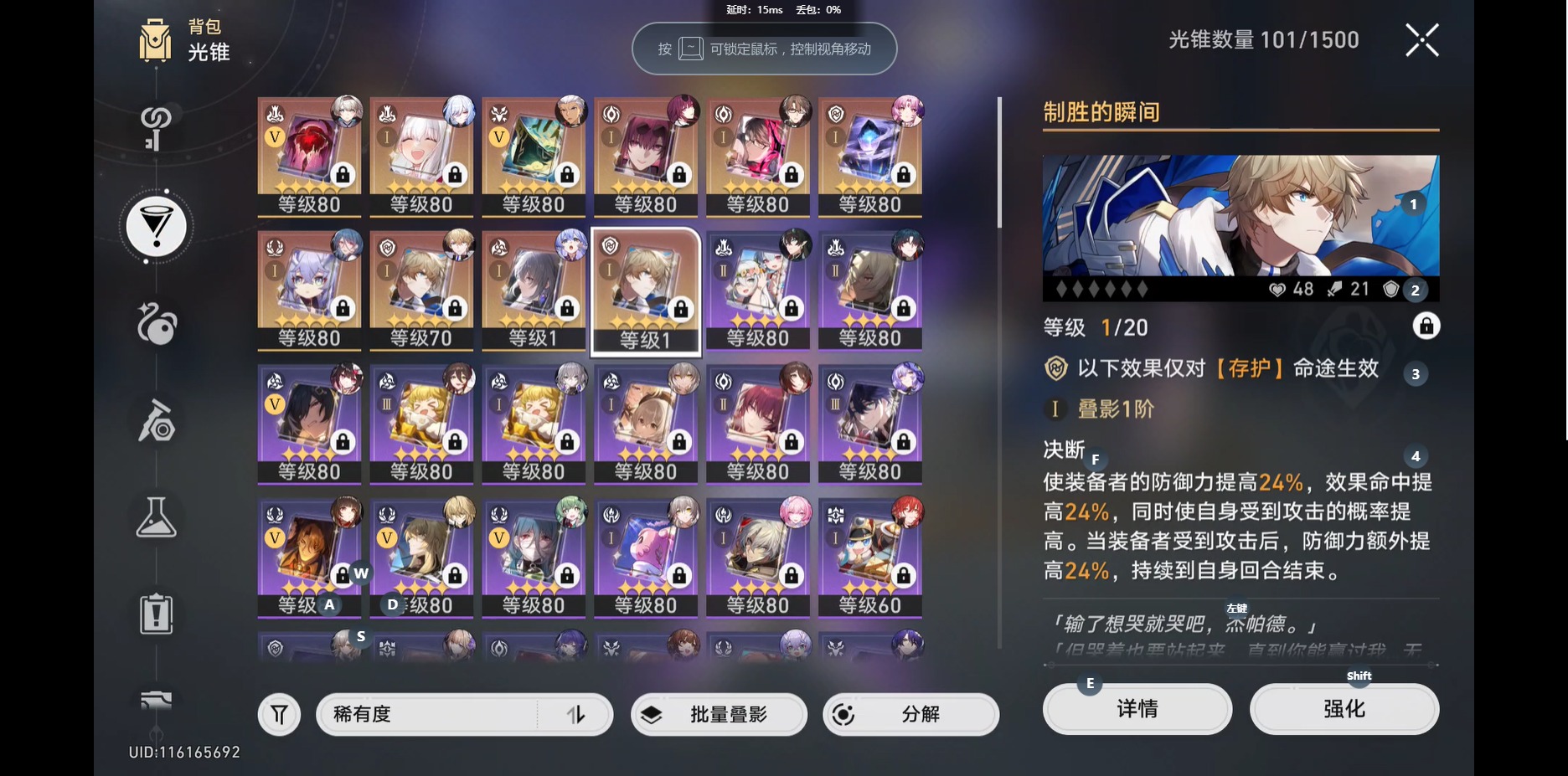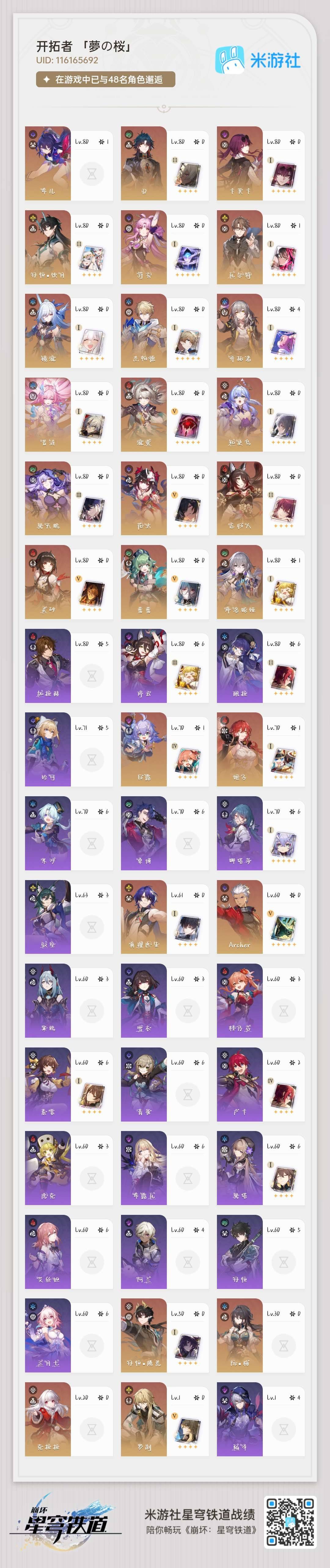[14319725]【总黄数】:36 【1命金色角色】:1命希儿1命白露1命姬子1命瓦尔特1命布洛妮娅 【0命金色角色】:0命灵砂0命忘归人0命流萤0命archer0命丹恒·腾荒0命卡芙卡0命克拉拉0命杰帕德0命罗刹0命刃0命丹恒•饮月0命知更鸟0命符玄0命镜流0命藿藿0命阮•梅0命真理医生0命黑天鹅0命花火0命昔涟 【精5武器】:精5记一位星神的陨落精5星海巡航 【精1武器】:精1时节不居精1制胜的瞬间精1以世界之名精1但战斗还未结束精1无可取代的东西精1只需等待精1记忆的质料