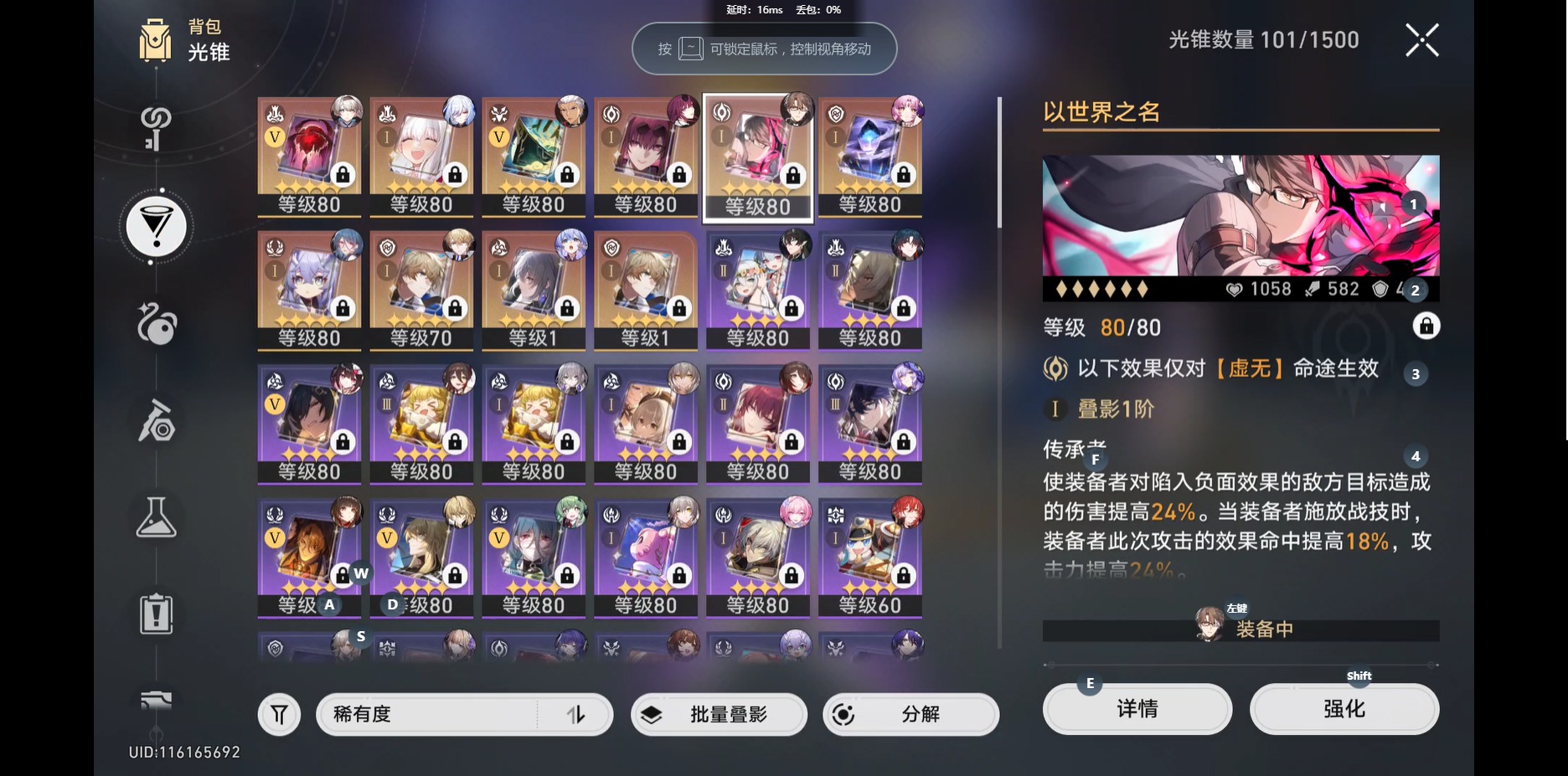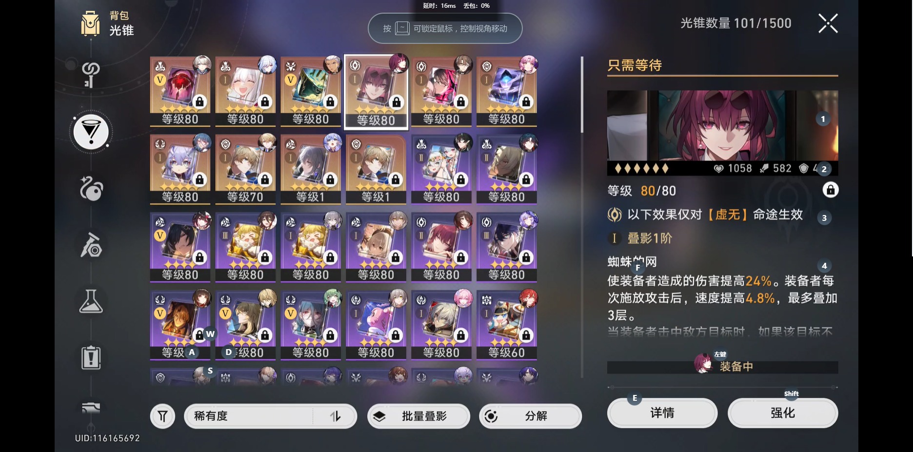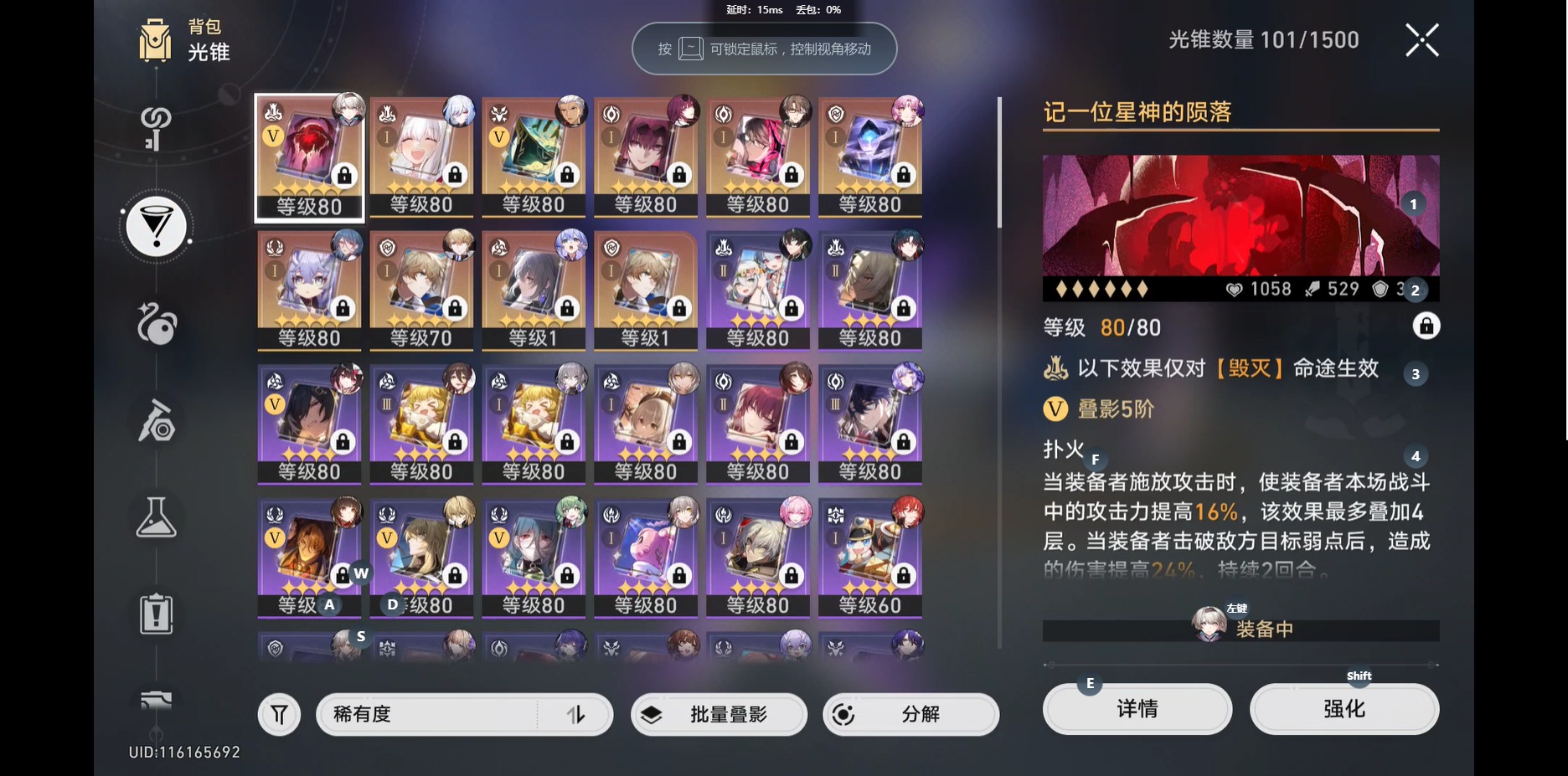 [14319725]【总黄数】:36 【1命金色角色】:1命希儿1命白露1命姬子1命瓦尔特1命布洛妮娅 【0命金色角色】:0命灵砂0命忘归人0命流萤0命archer0命丹恒·腾荒0命卡芙卡0命克拉拉0命杰帕德0命罗刹0命刃0命丹恒•饮月0命知更鸟0命符玄0命镜流0命藿藿0命阮•梅0命真理医生0命黑天鹅0命花火0命昔涟 【精5武器】:精5记一位星神的陨落精5星海巡航 【精1武器】:精1时节不居精1制胜的瞬间精1以世界之名精1但战斗还未结束精1无可取代的东西精1只需等待精1记忆的质料