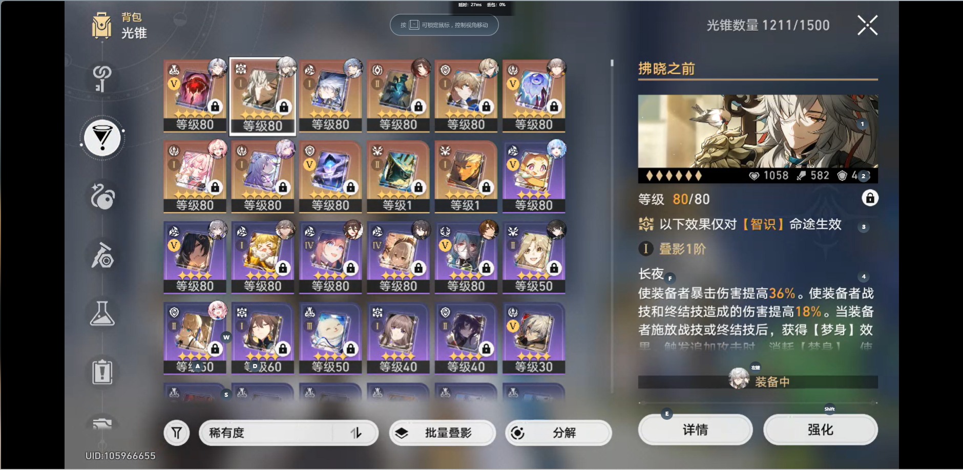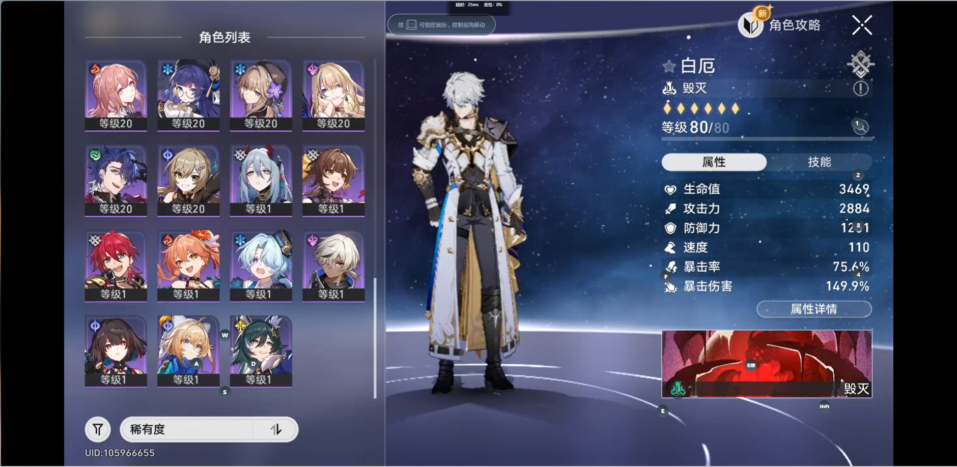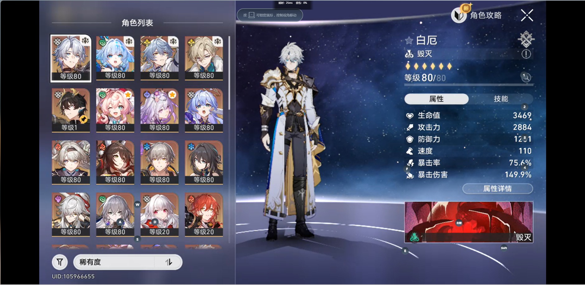 [14341203]【总黄数】:35 【2命金色角色】:2命白厄2命布洛妮娅 【1命金色角色】:1命姬子1命瓦尔特1命克拉拉1命阮•梅 【0命金色角色】:0命希儿0命星期日0命忘归人0命遐蝶0命流萤0命风堇0命archer0命刻律德菈0命丹恒·腾荒0命景元0命彦卿0命知更鸟0命符玄0命真理医生0命砂金 【精5武器】:精5记忆永不落幕精5记忆的质料精5记一位星神的陨落 【精2武器】:精2孤独的疗愈精2星海巡航 【精1武器】:精1拂晓之前精1回到大地的飞行精1让告别,更美一些精1愿虹光永驻天空精1理想燃烧的地狱精1制胜的瞬间