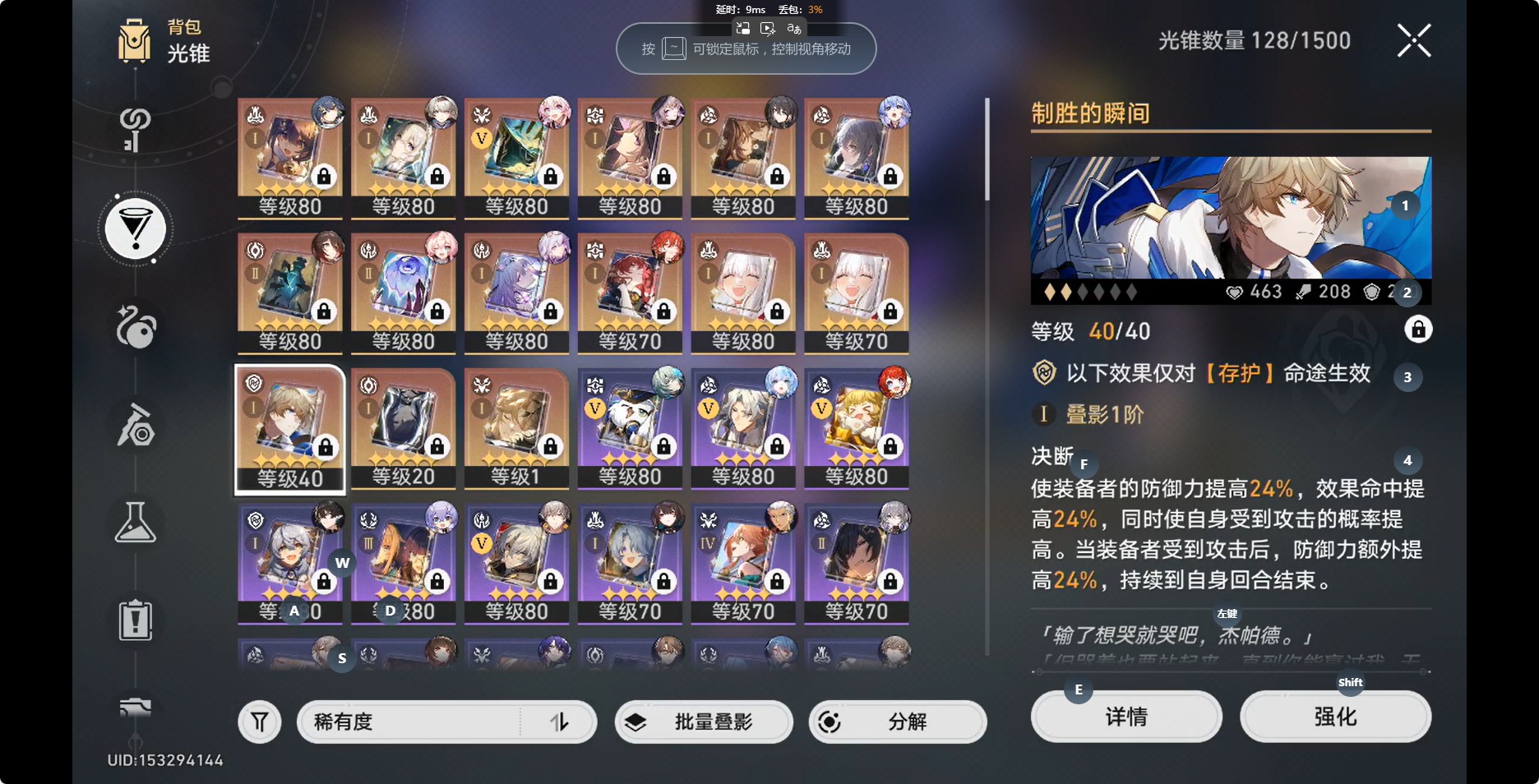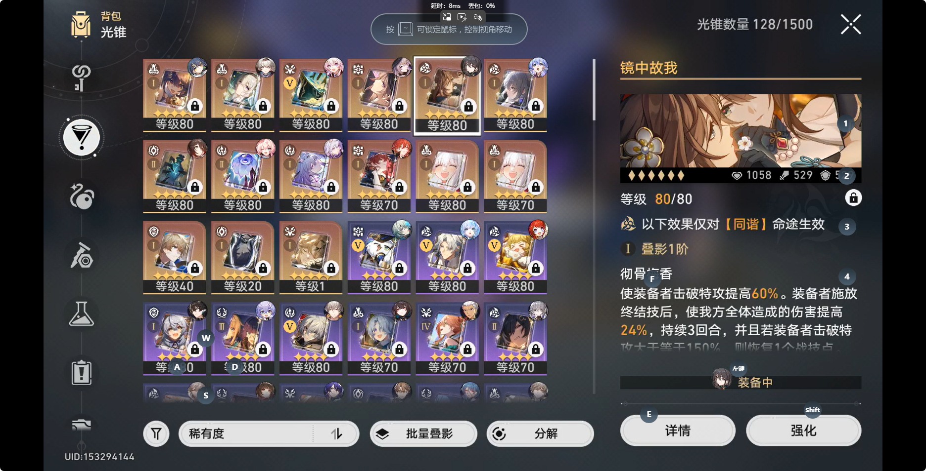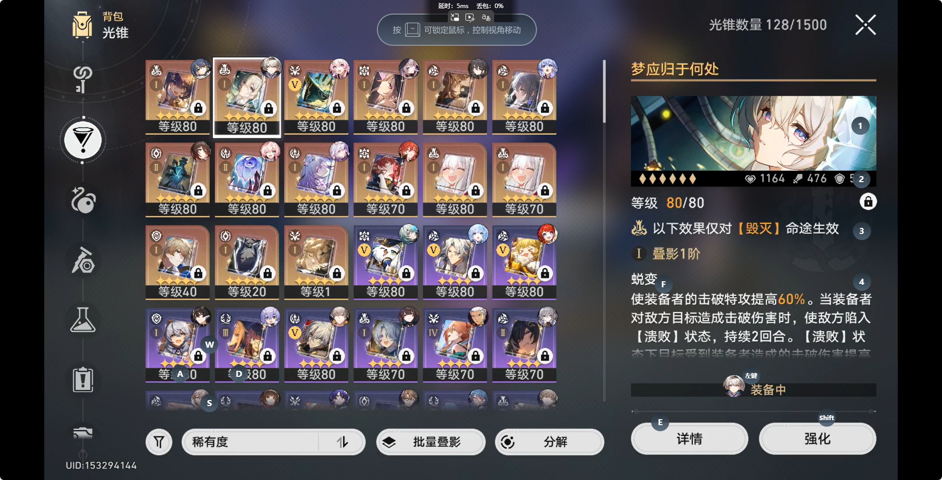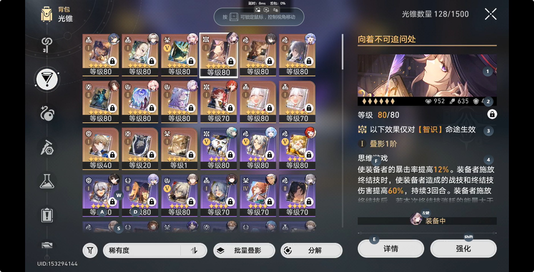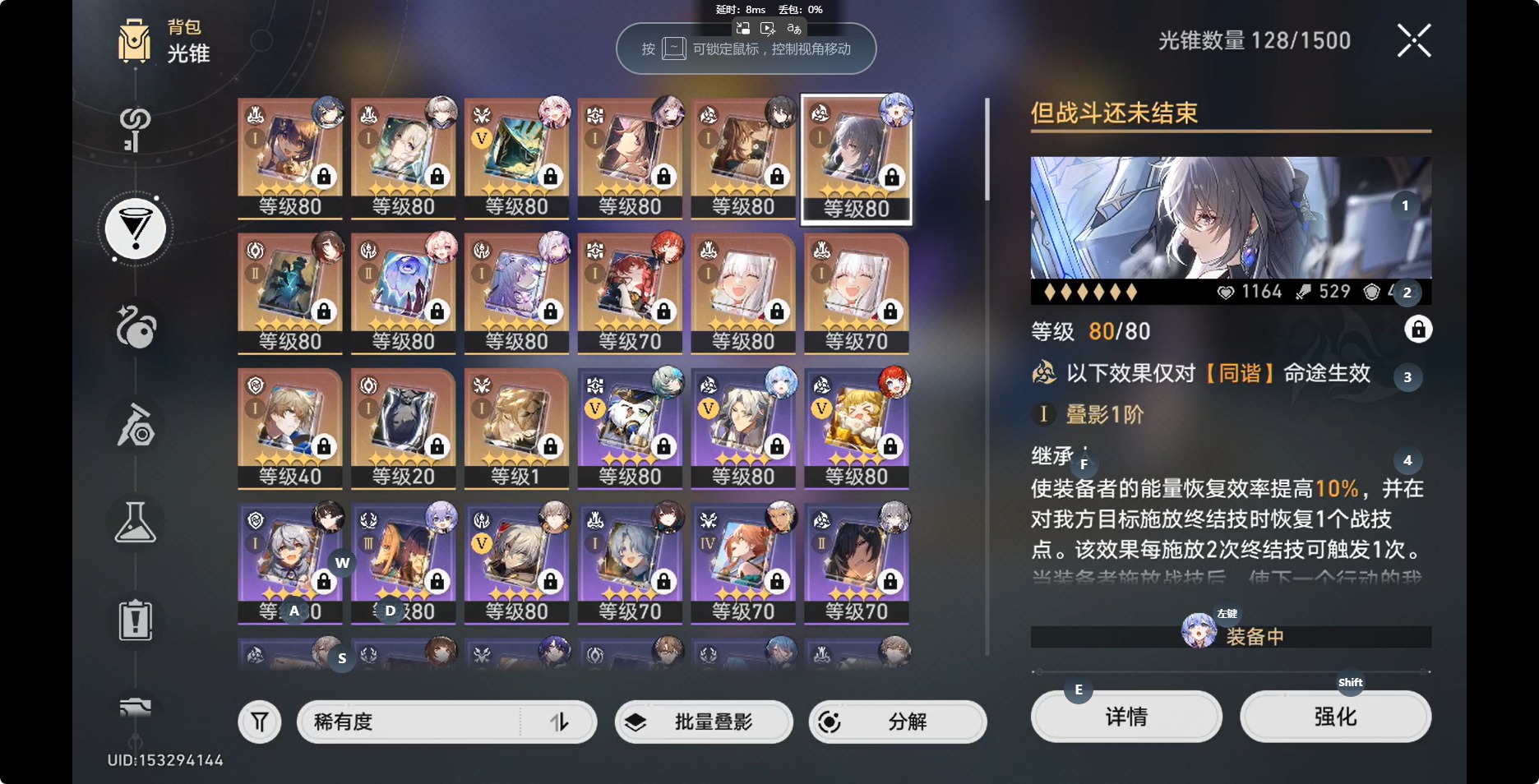 [14350191]【总黄数】:36 【3命金色角色】:3命白露 【2命金色角色】:2命布洛妮娅 【1命金色角色】:1命缇宝1命流萤1命瓦尔特1命阮•梅 【0命金色角色】:0命灵砂0命云璃0命忘归人0命大黑塔0命遐蝶0命那刻夏0命风堇0命archer0命刻律德菈0命丹恒·腾荒0命彦卿0命姬子0命克拉拉0命杰帕德0命知更鸟0命真理医生0命花火 【精5武器】:精5星海巡航 【精2武器】:精2孤独的疗愈 【精1武器】:精1落日时起舞精1向着不可追问处精1让告别,更美一些精1梦应归于何处精1如泥酣眠精1制胜的瞬间精1但战斗还未结束精1无可取代的东西精1银河铁道之夜精1镜中故我精1行于流逝的岸