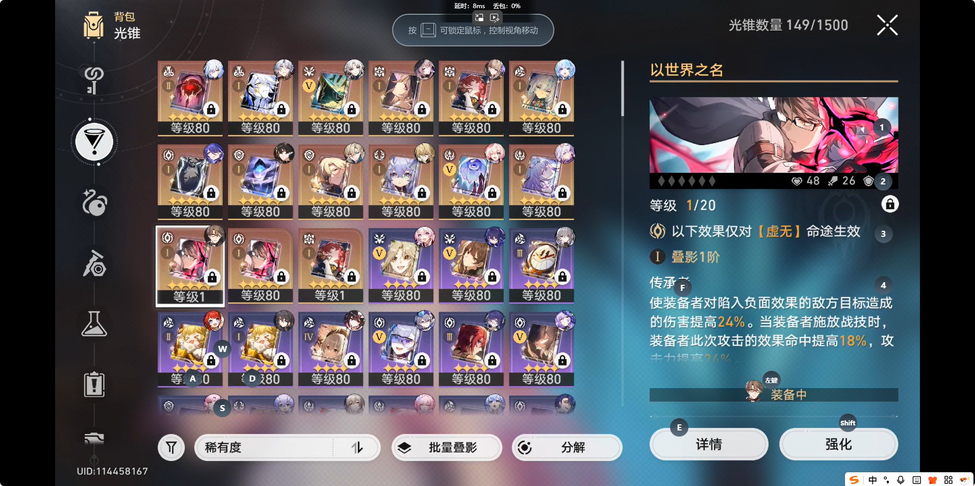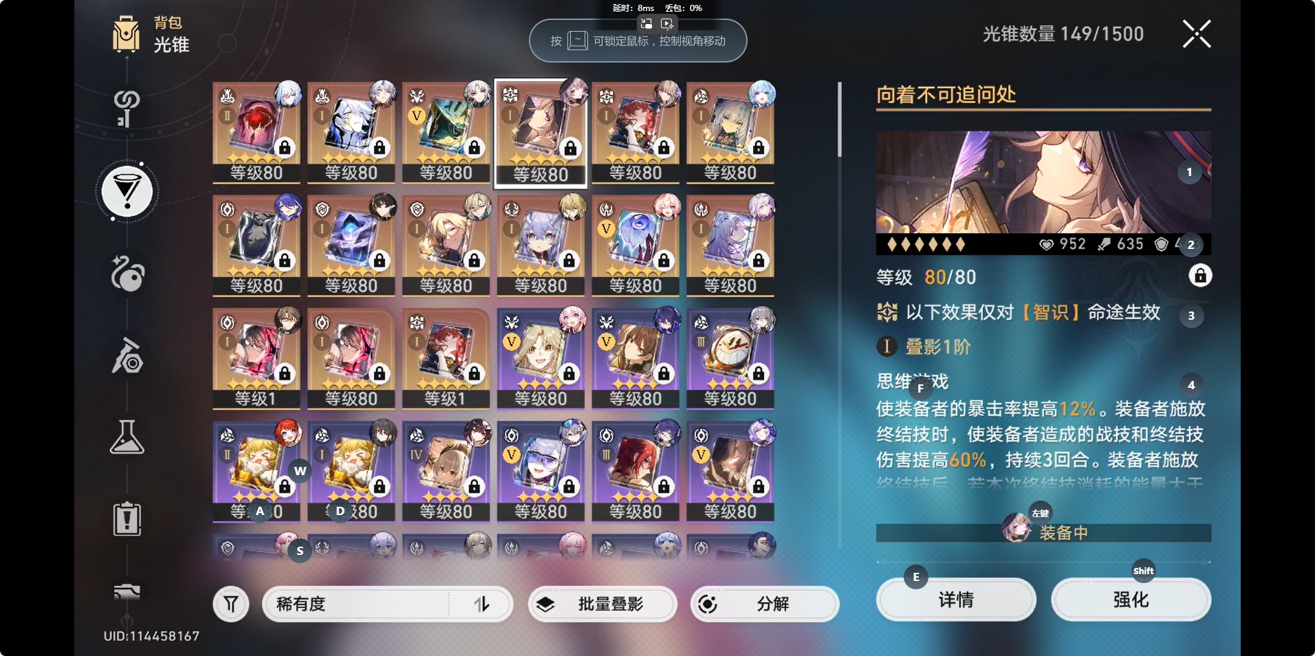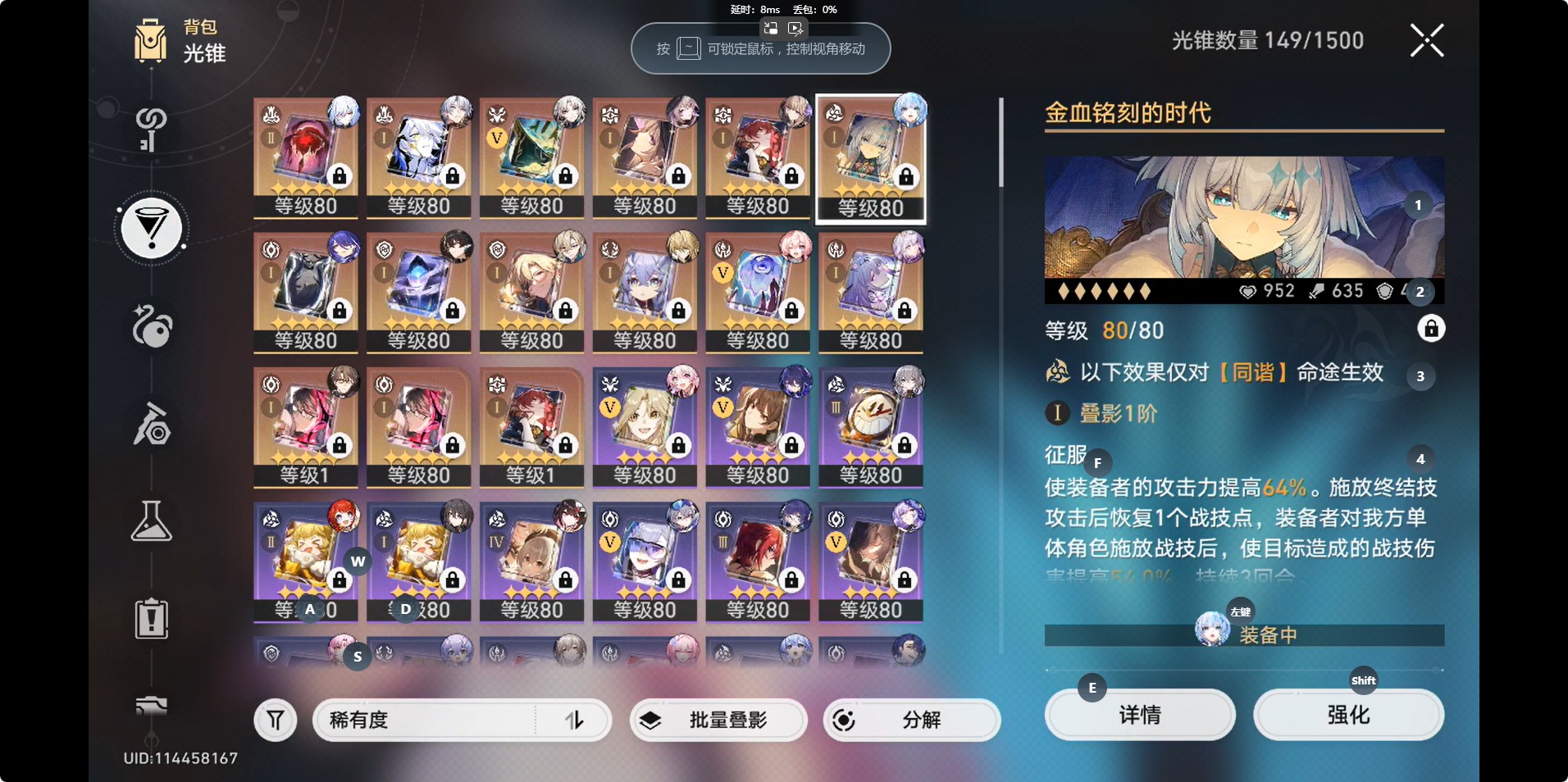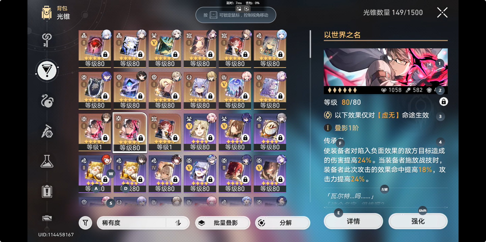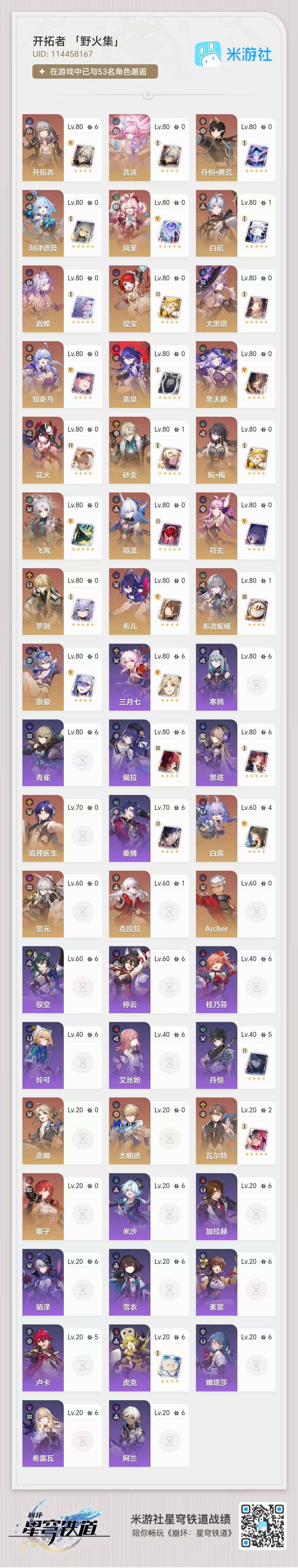 [14350241]【总黄数】:46 【4命金色角色】:4命白露 【2命金色角色】:2命瓦尔特 【1命金色角色】:1命白厄1命布洛妮娅1命克拉拉 【0命金色角色】:0命希儿0命飞霄0命大黑塔0命缇宝0命遐蝶0命风堇0命archer0命刻律德菈0命丹恒·腾荒0命景元0命彦卿0命姬子0命杰帕德0命银狼0命罗刹0命知更鸟0命符玄0命镜流0命阮•梅0命真理医生0命黑天鹅0命花火0命黄泉0命砂金0命昔涟 【精5武器】:精5记忆永不落幕精5星海巡航 【精2武器】:精2记一位星神的陨落 【精1武器】:精1向着不可追问处精1让告别,更美一些精1黎明恰如此燃烧精1金血铭刻的时代精1时节不居精1以世界之名精1银河铁道之夜精1命运从未公平精1记忆的质料精1行于流逝的岸