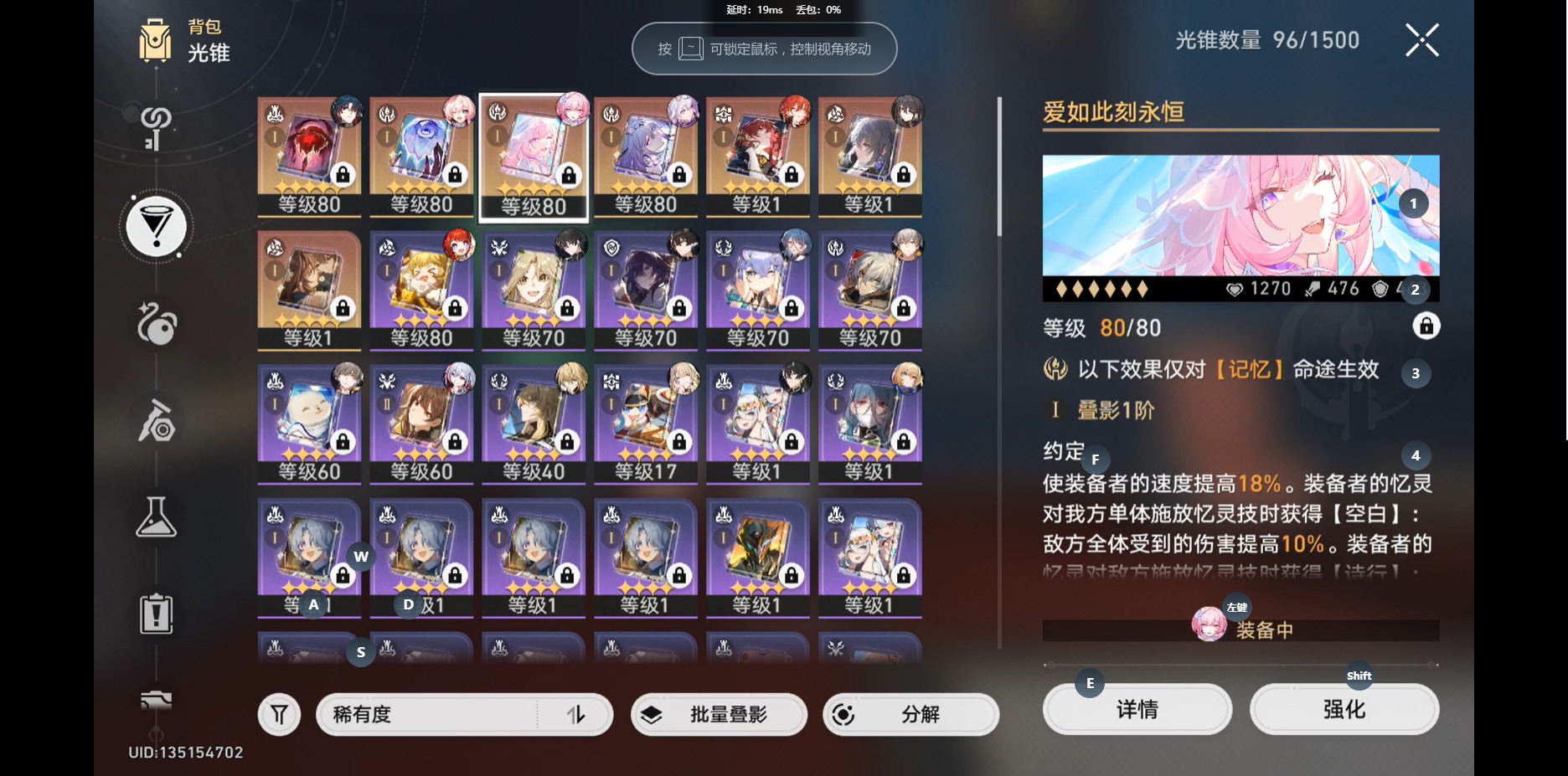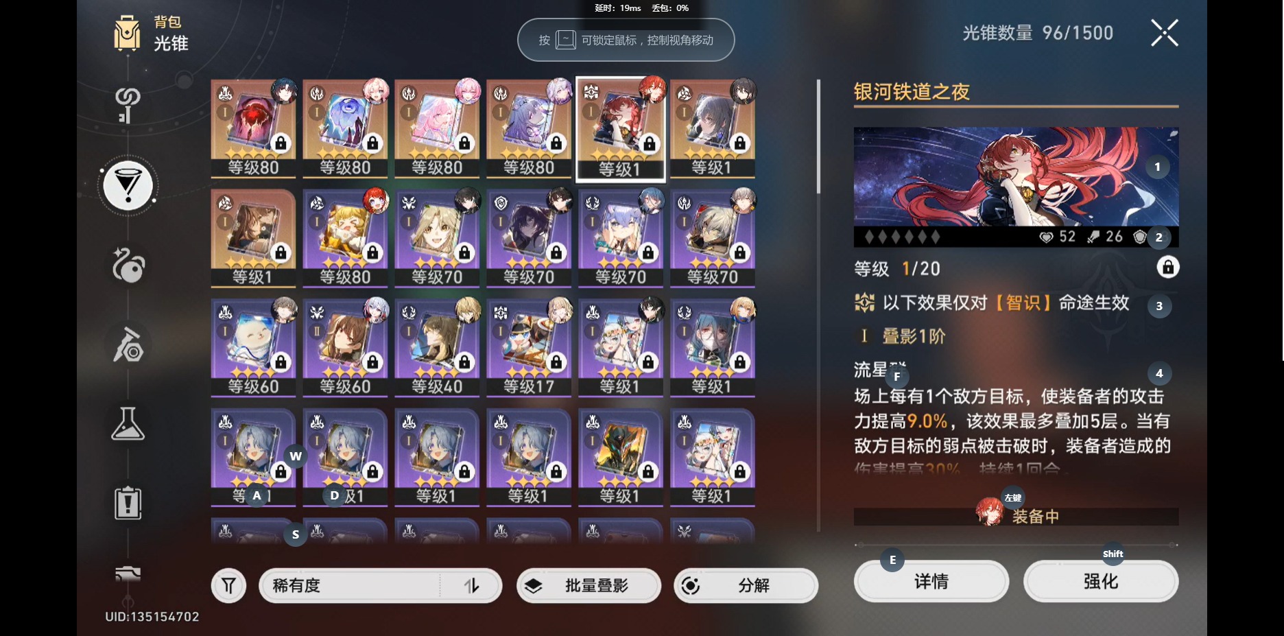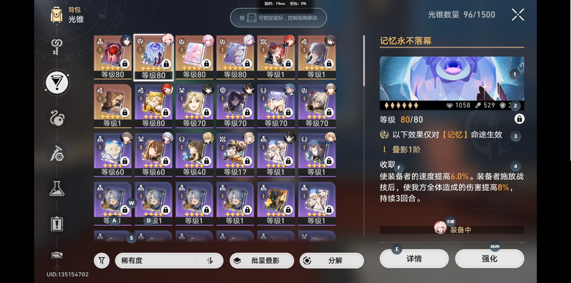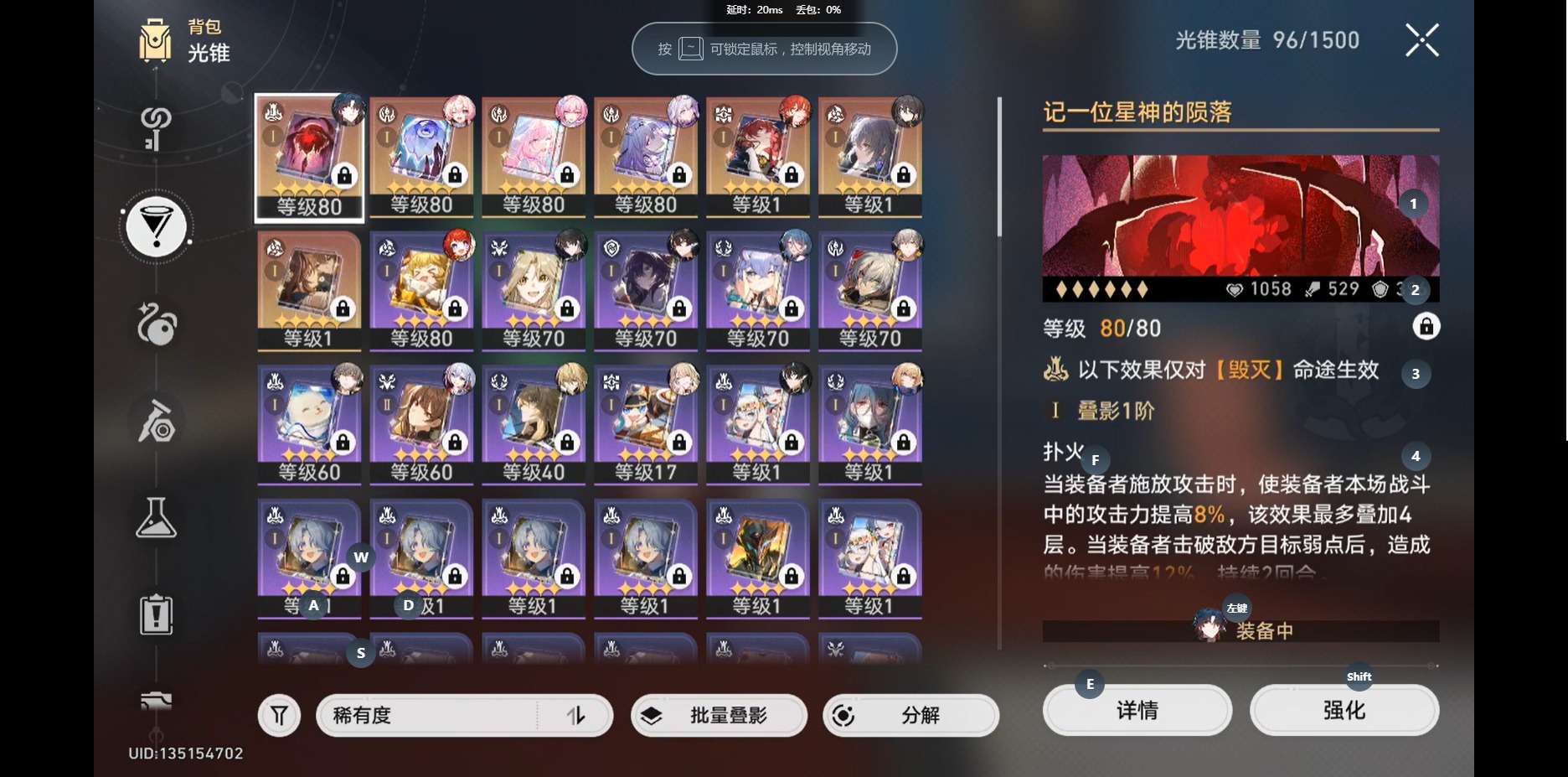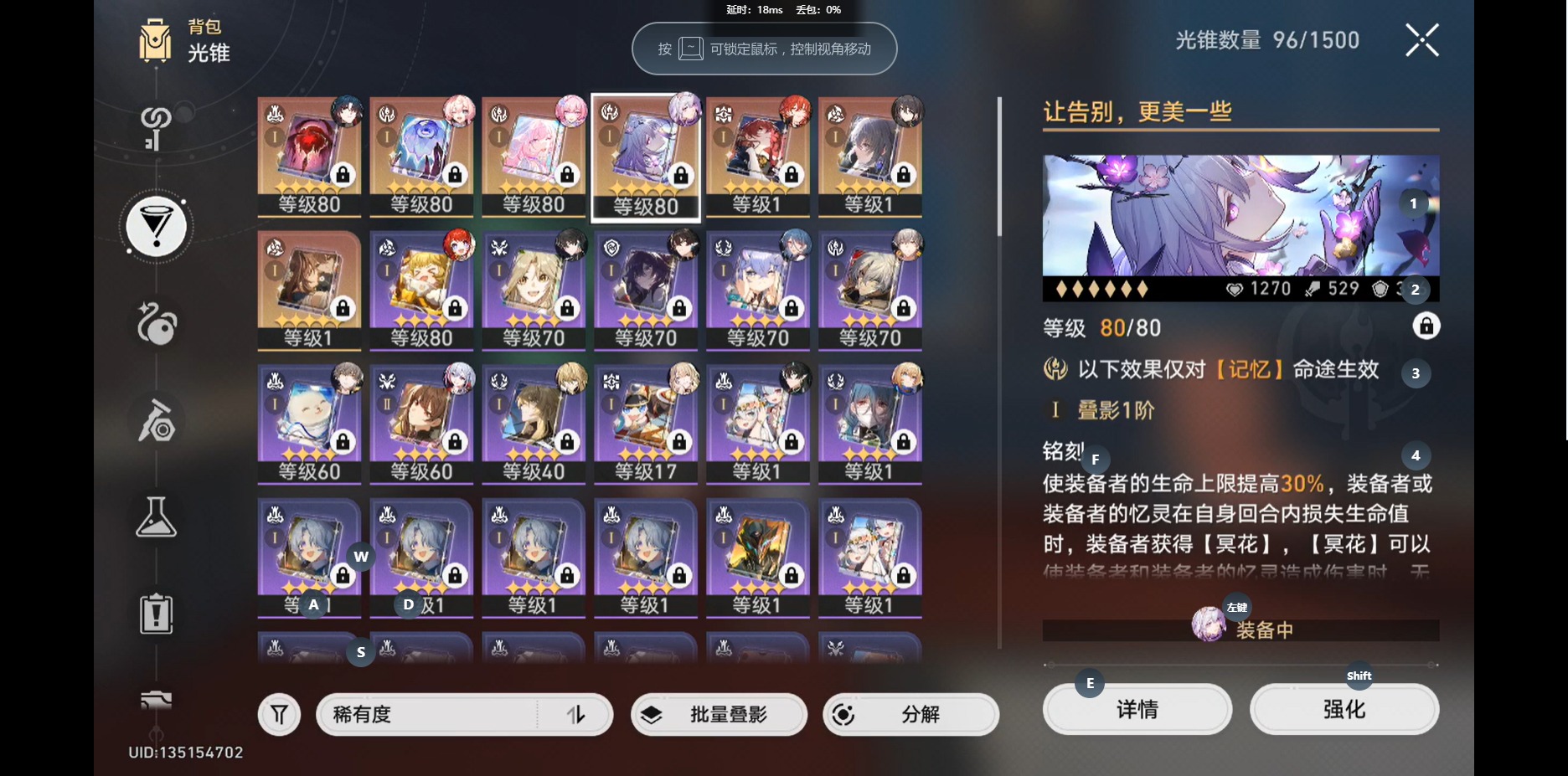 [14359133]【总黄数】:24 【2命金色角色】:2命遐蝶 【0命金色角色】:0命希儿0命缇宝0命风堇0命archer0命丹恒·腾荒0命白露0命姬子0命罗刹0命刃0命丹恒•饮月0命符玄0命托帕账账0命阮•梅0命真理医生0命昔涟 【精1武器】:精1记忆永不落幕精1让告别,更美一些精1但战斗还未结束精1银河铁道之夜精1记一位星神的陨落精1镜中故我精1爱如此刻永恒